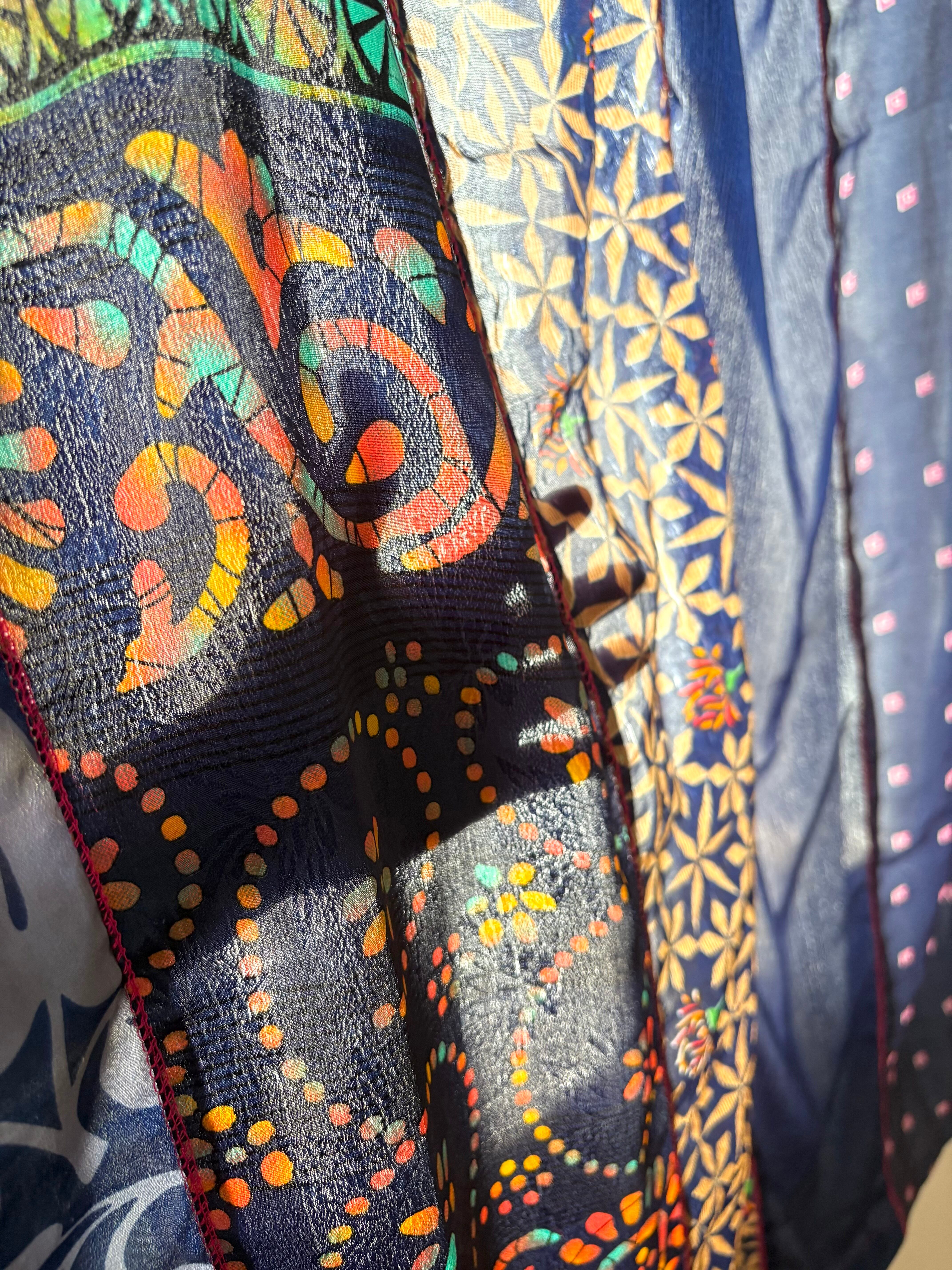 ヴィンテージサリーで出来たパッチワークシルクカーテン