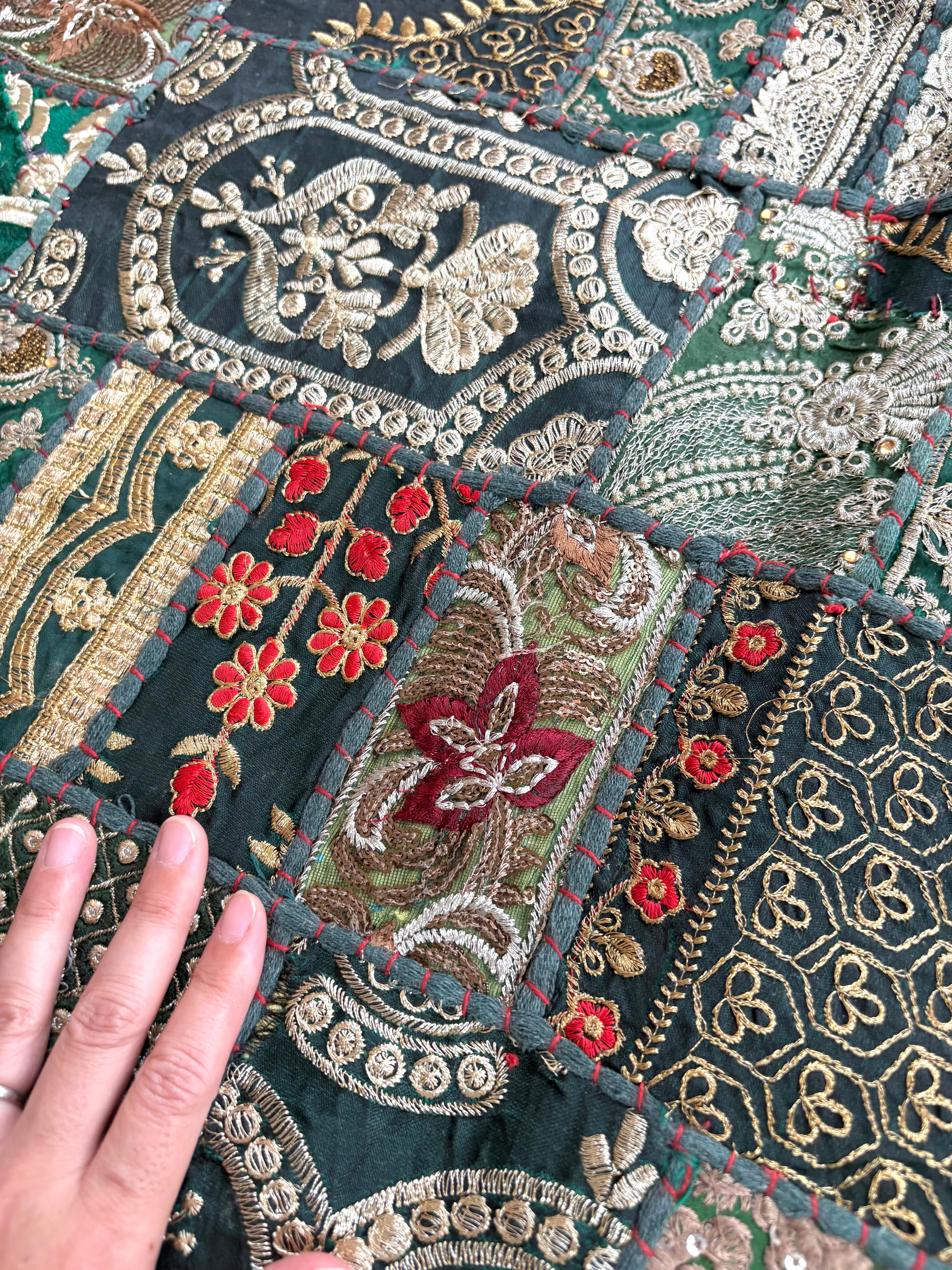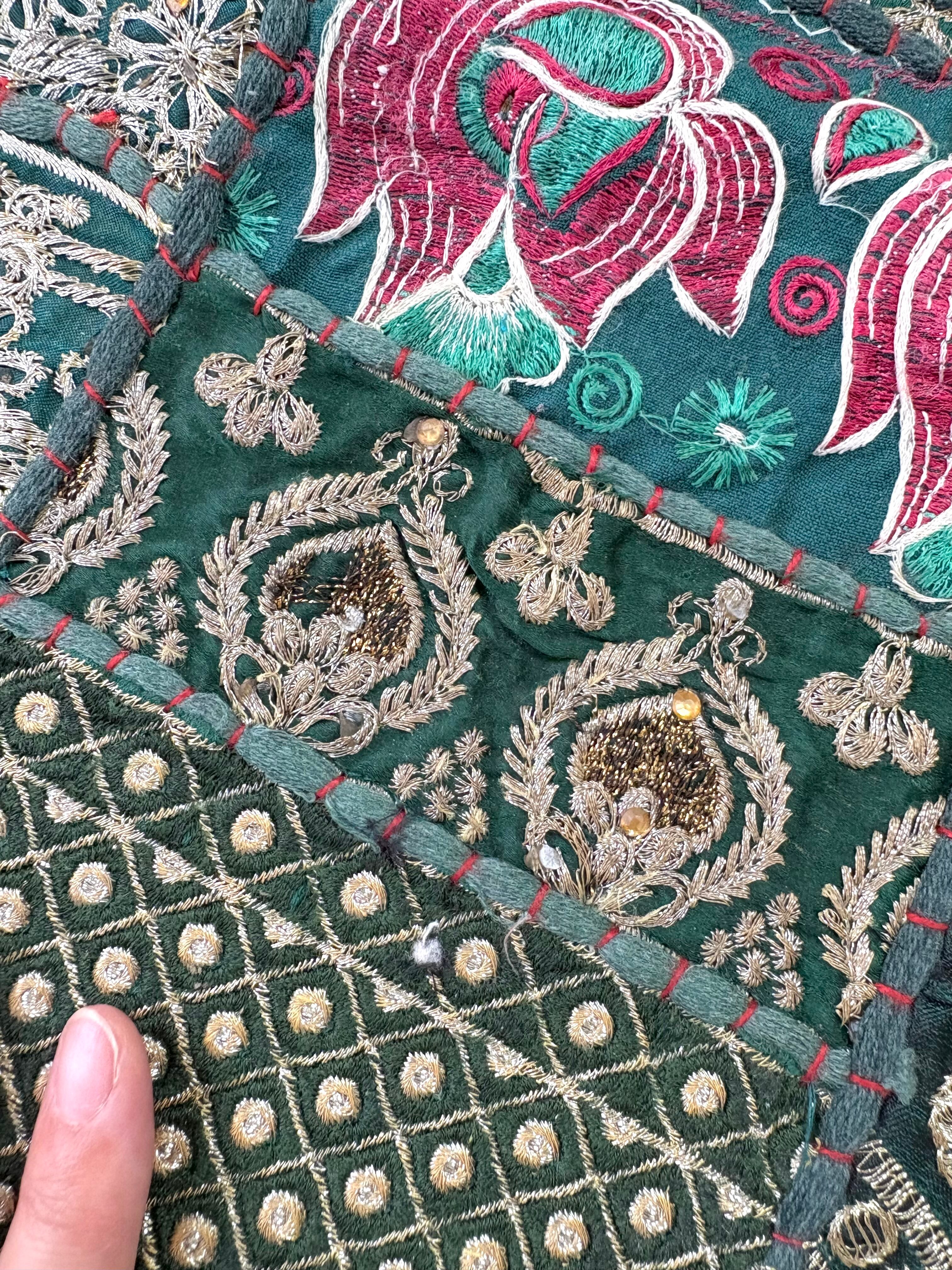 濃いめグリーンのフレームに煌びやかなゴールドの刺繍が映えます!!