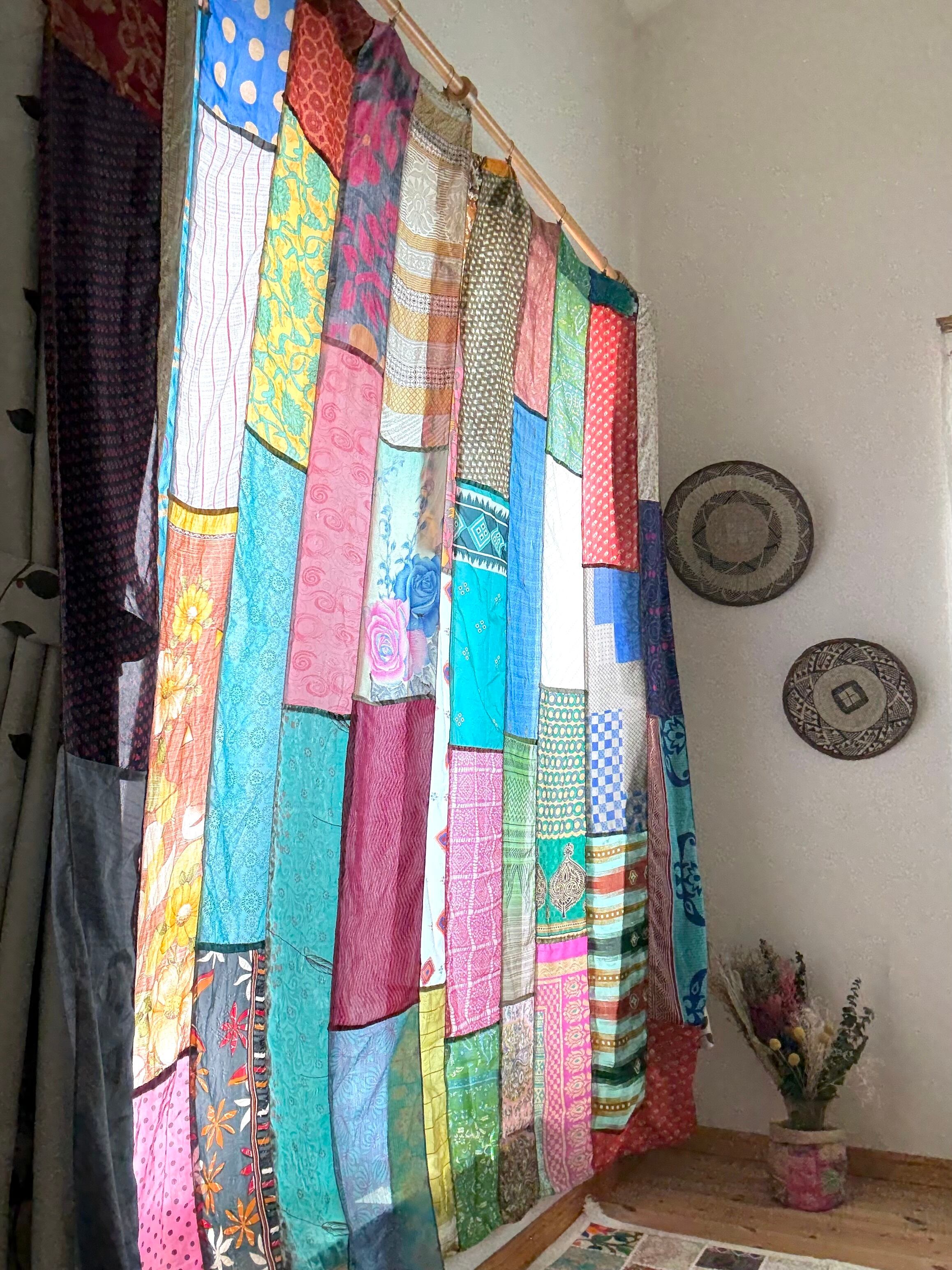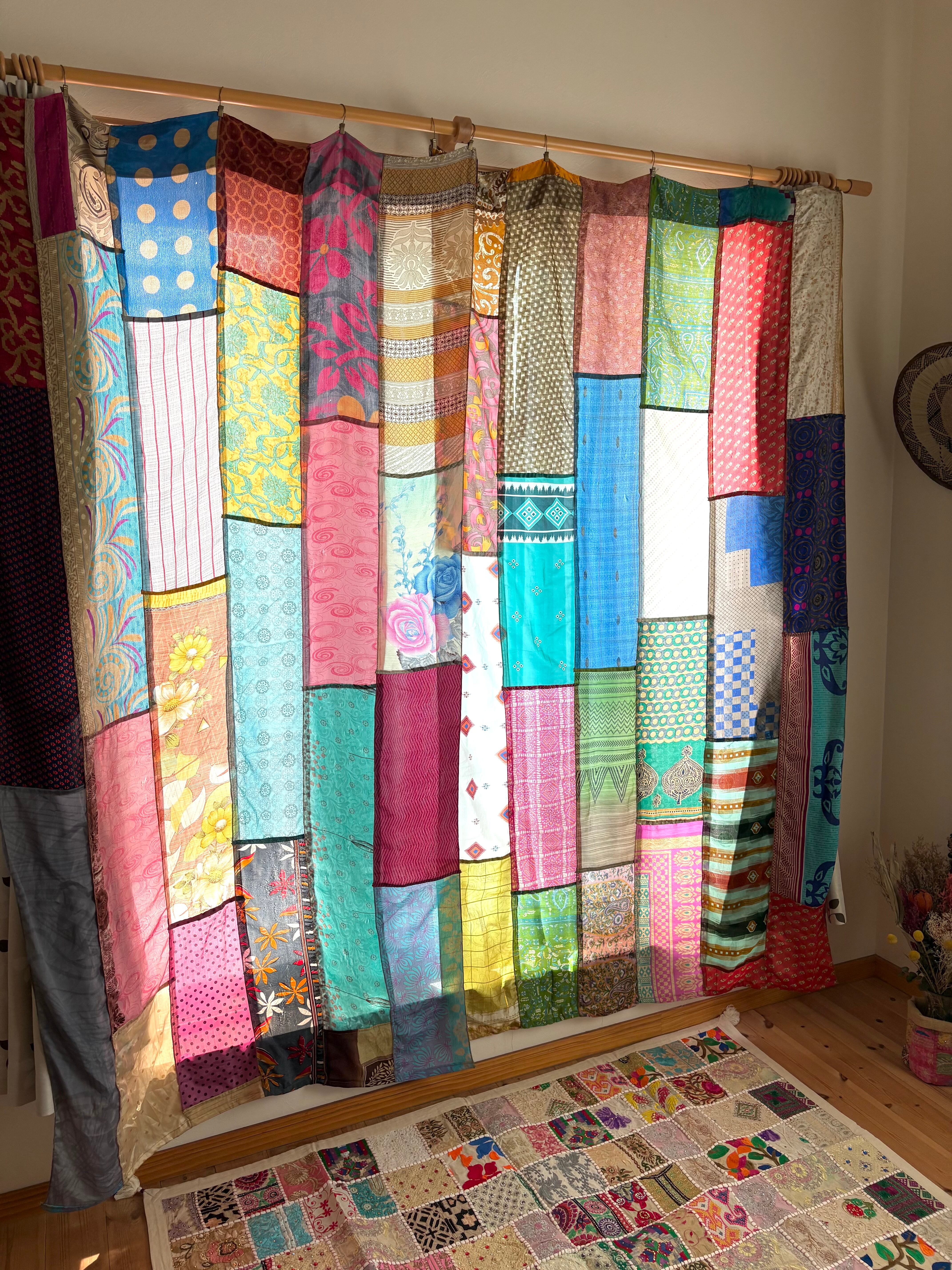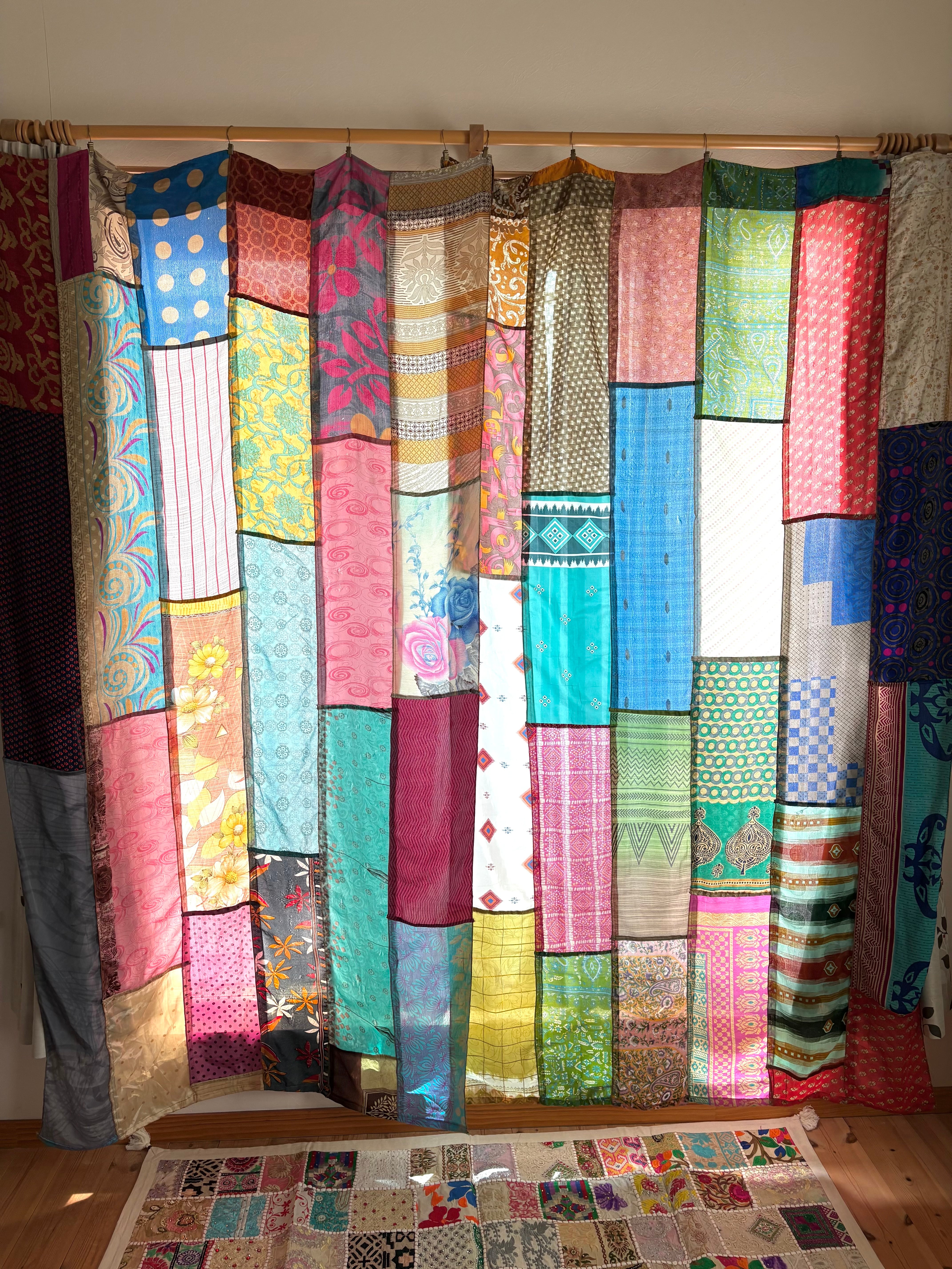 ヴィンテージサリーで出来たパッチワークシルクカーテン