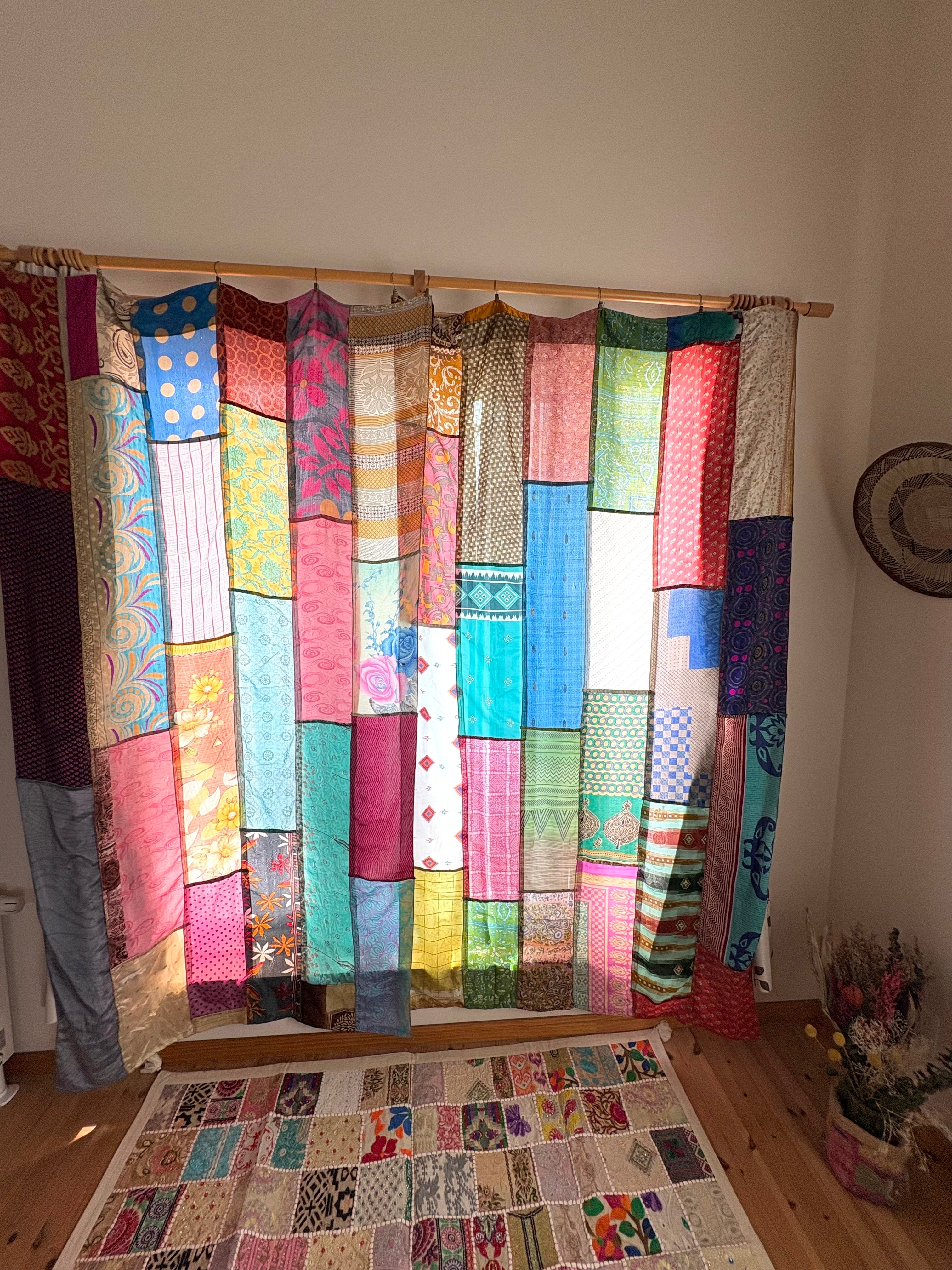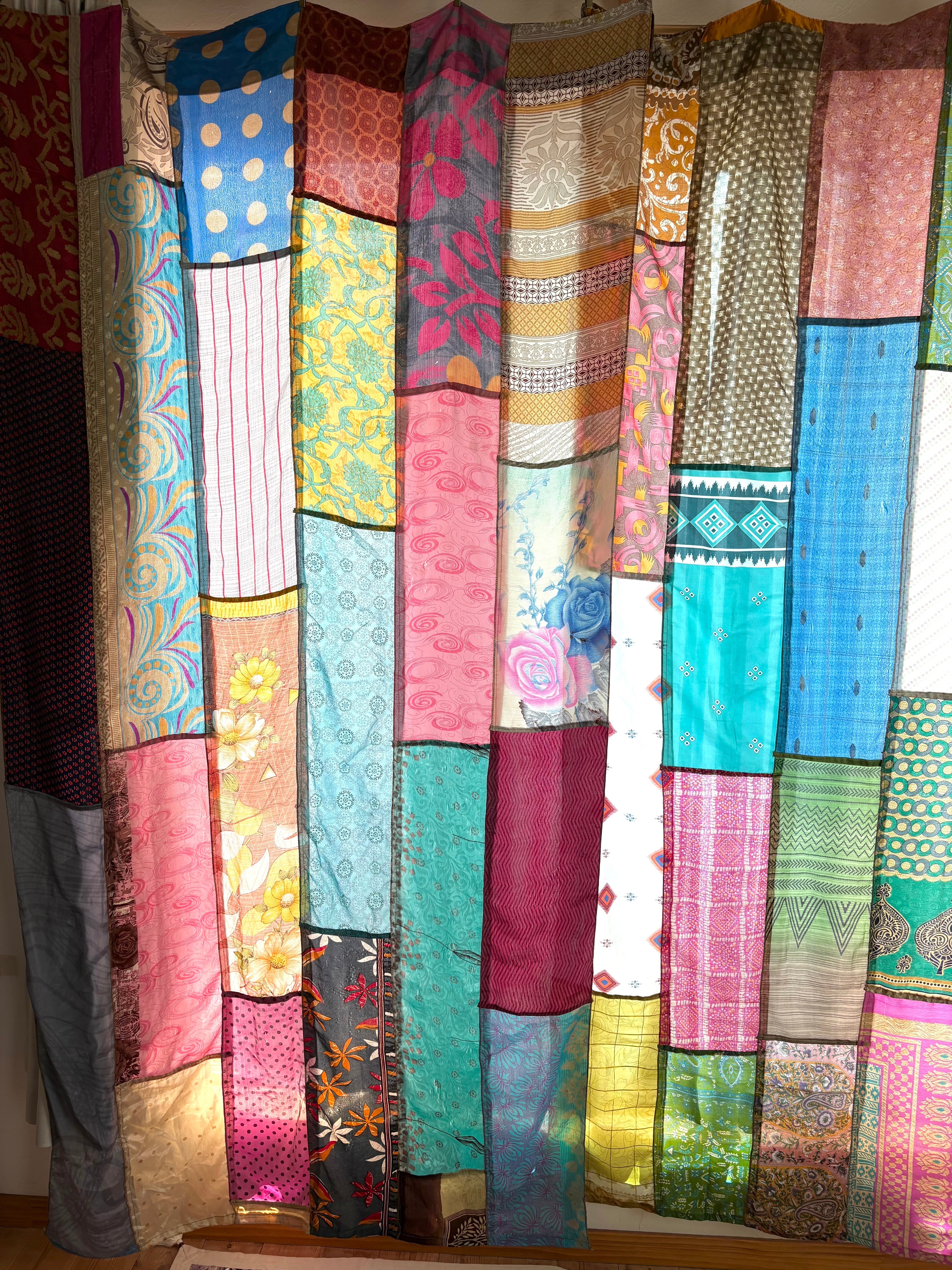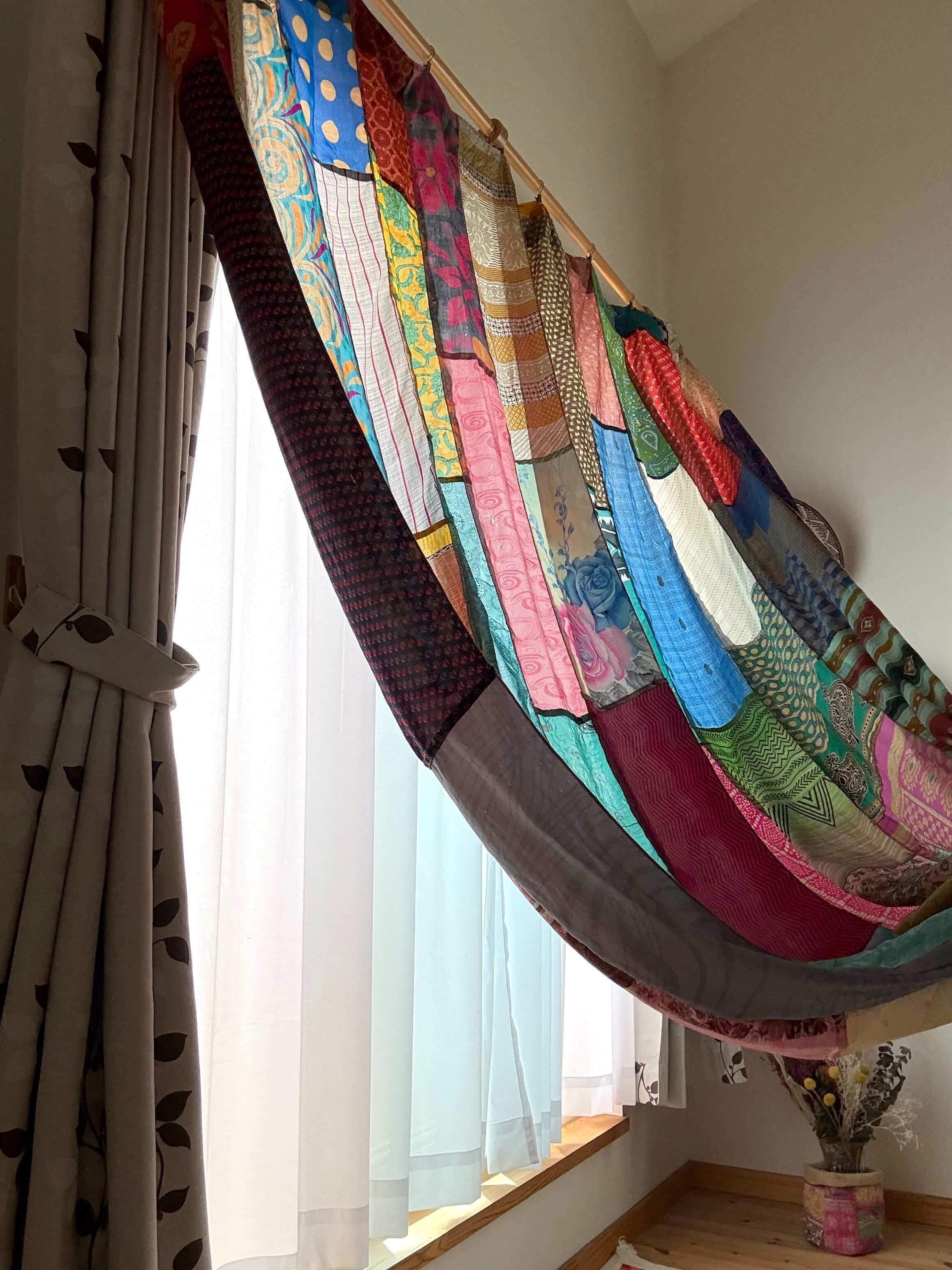 ヴィンテージサリーで出来たパッチワークシルクカーテン