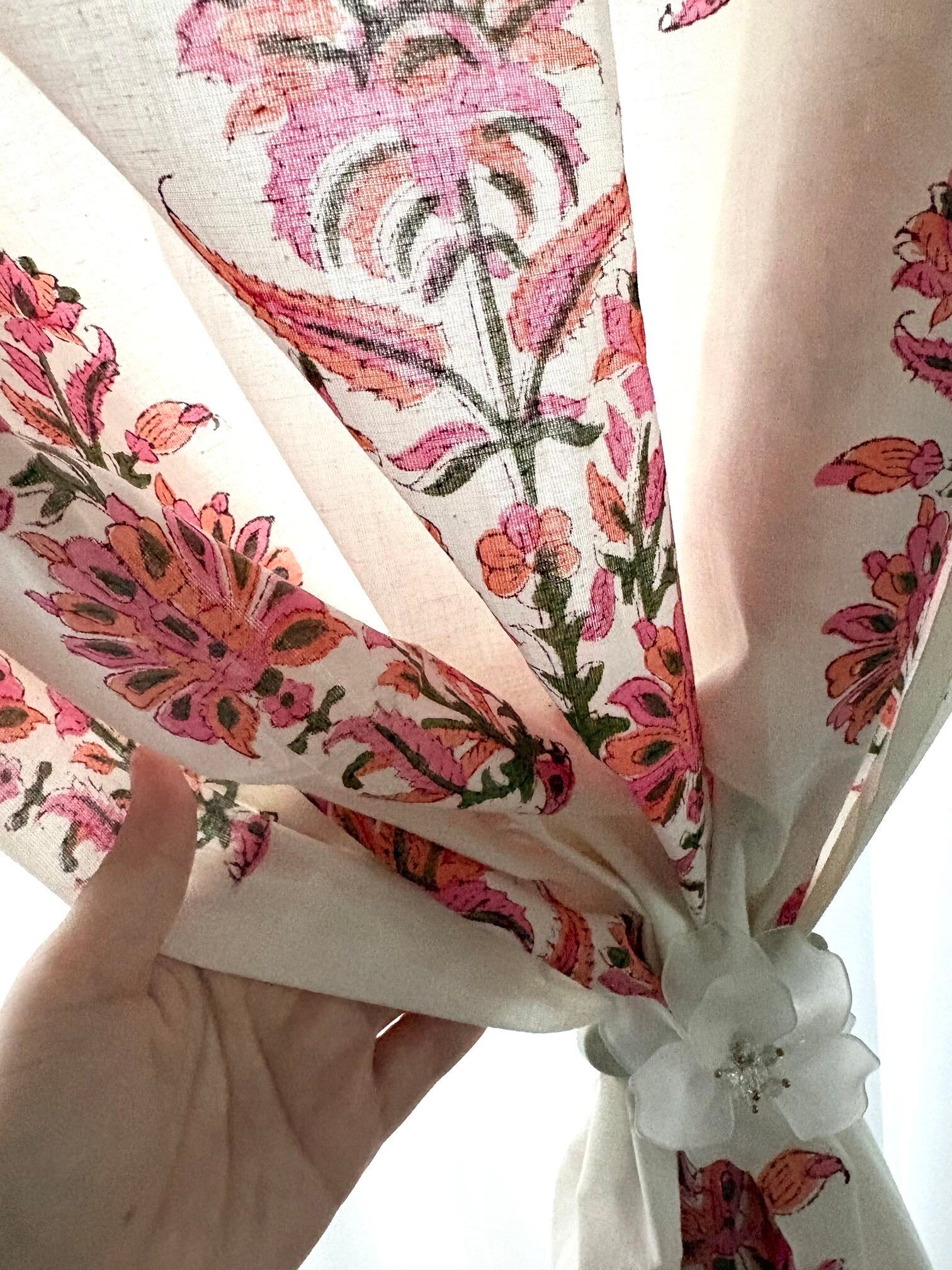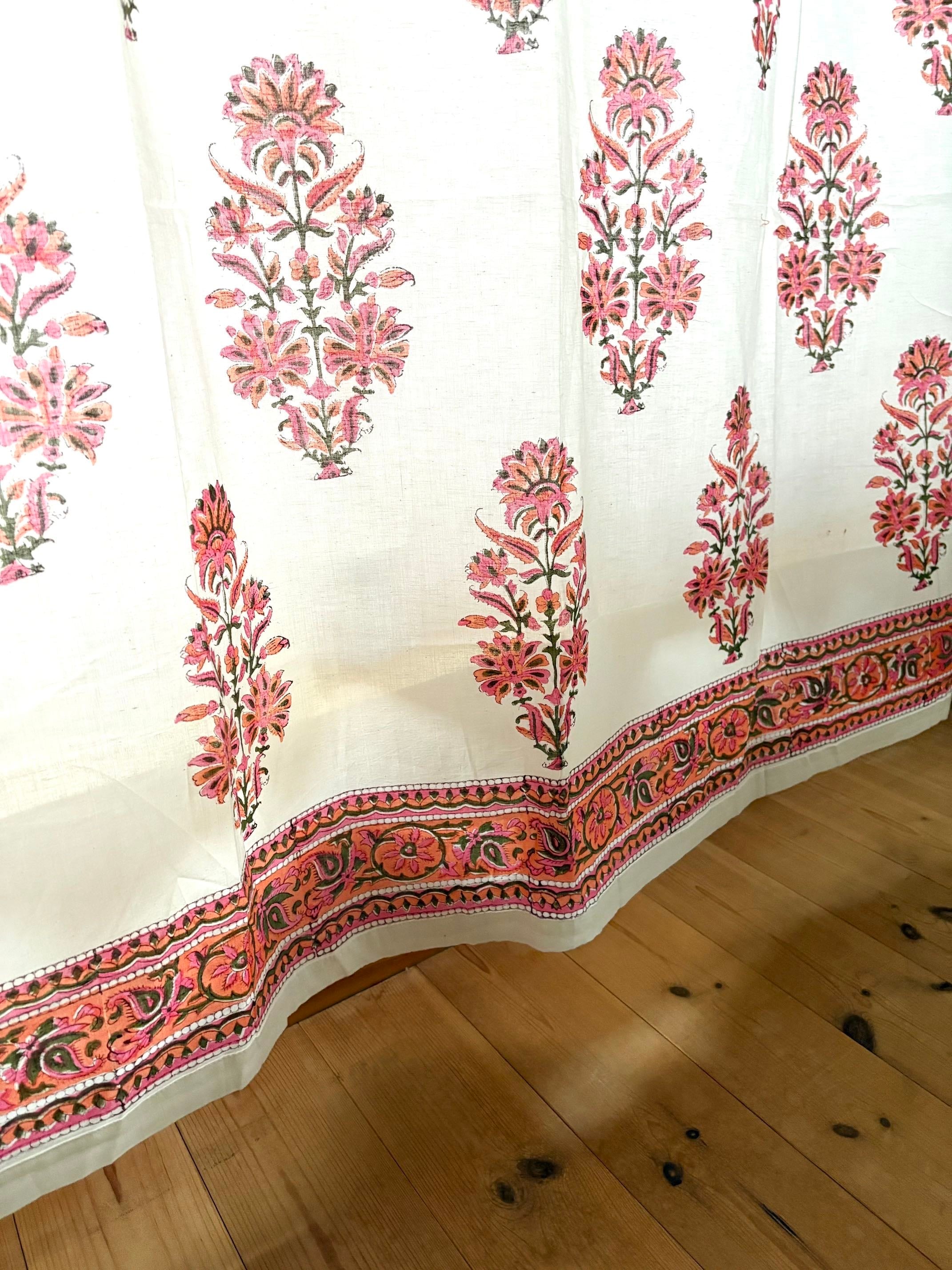 インドの職人さんによる伝統的な「ブロックプリント(木版染め)」で、ひとつひとつ丁寧に手刷りされた布を使ったカーテンです。