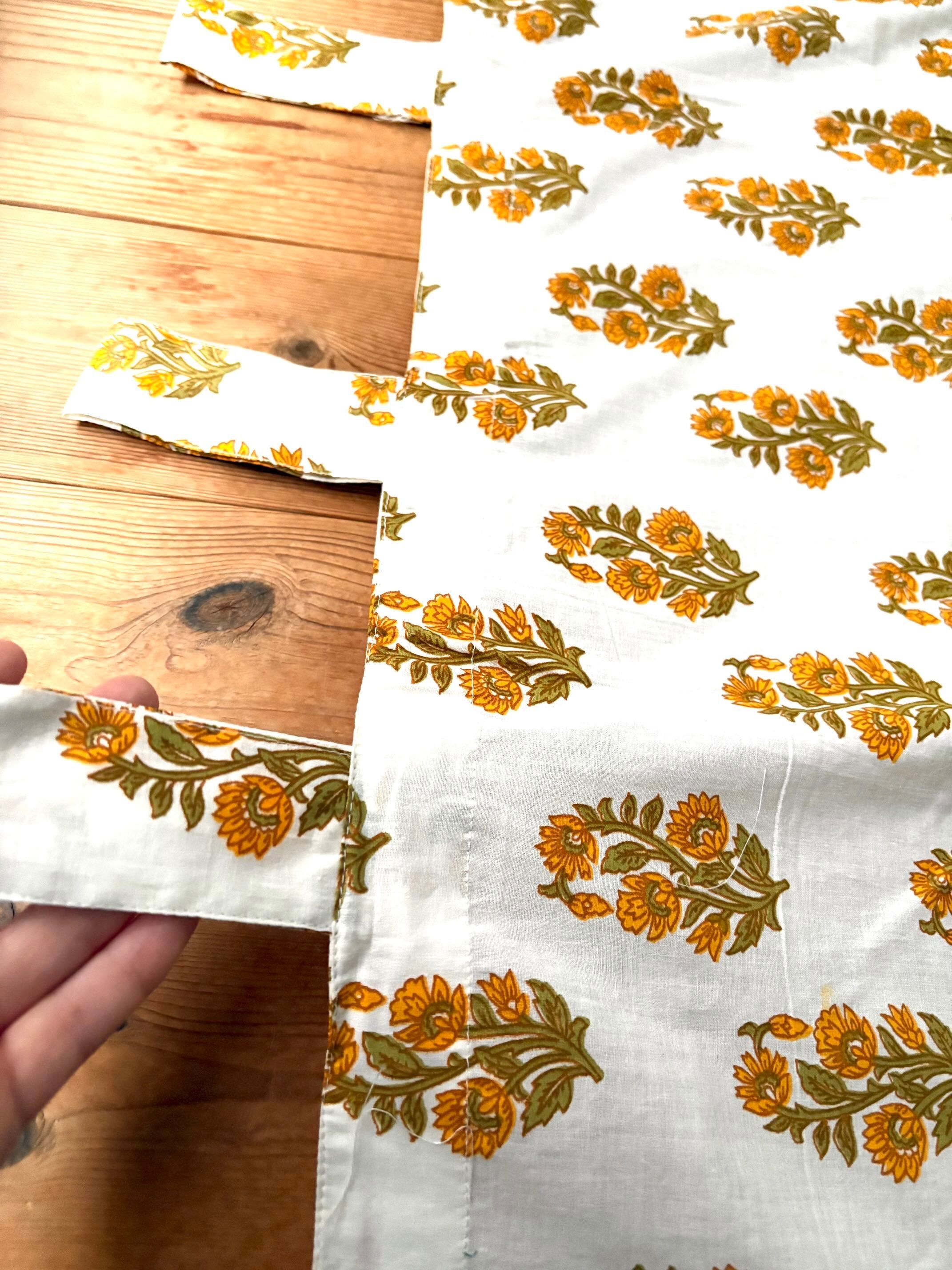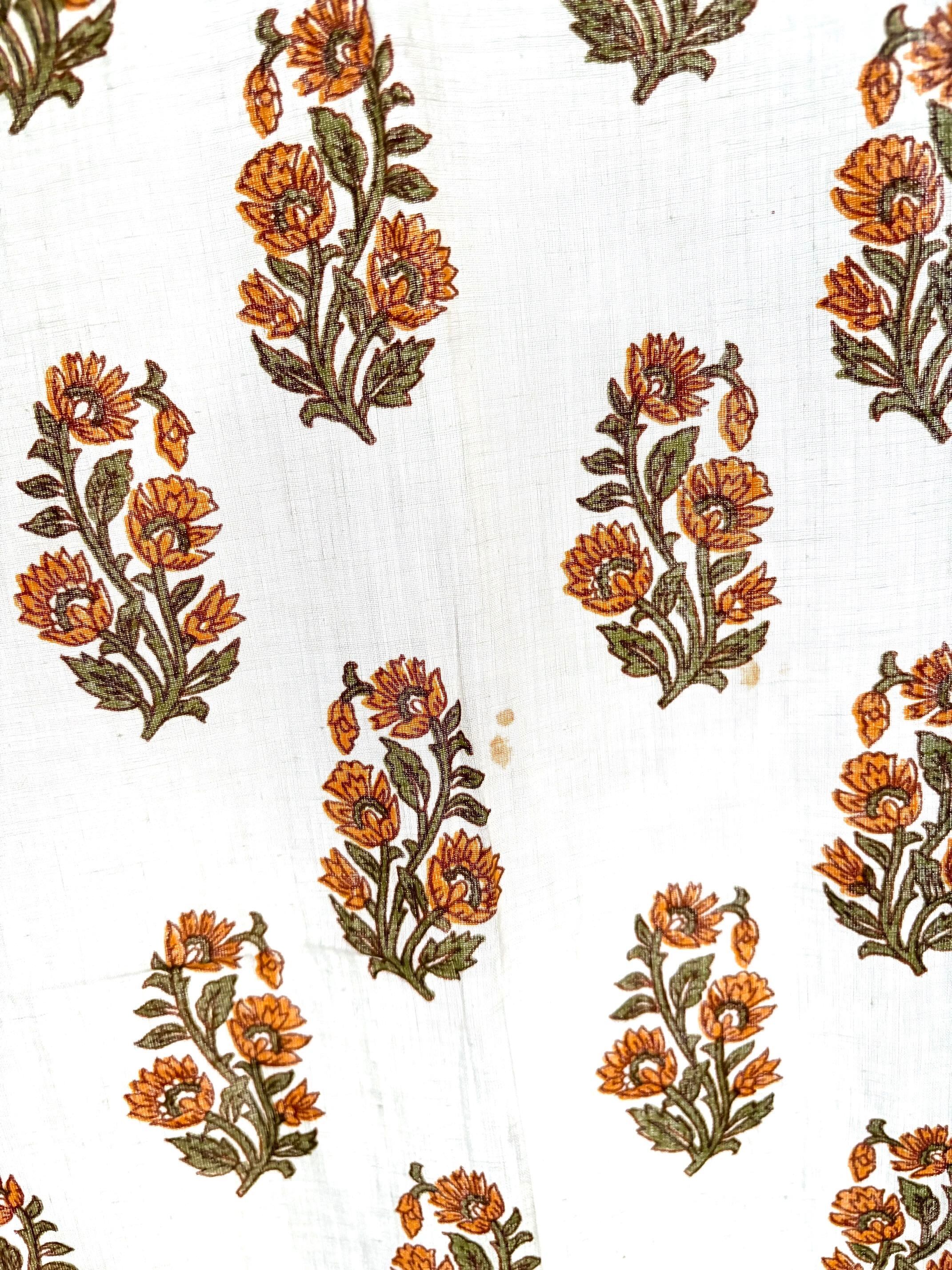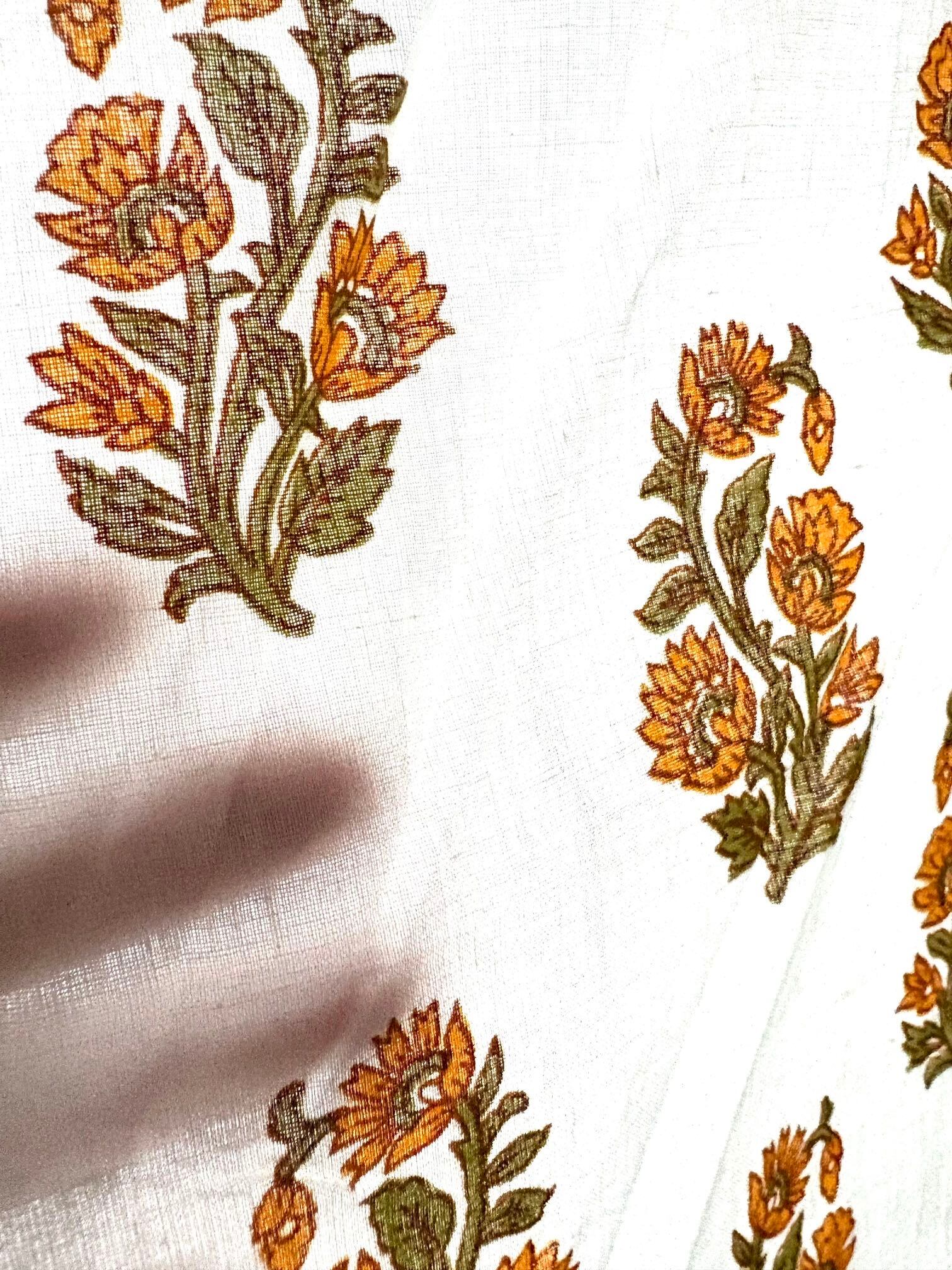 イエローフラワーシングル/ブロックプリントカーテン