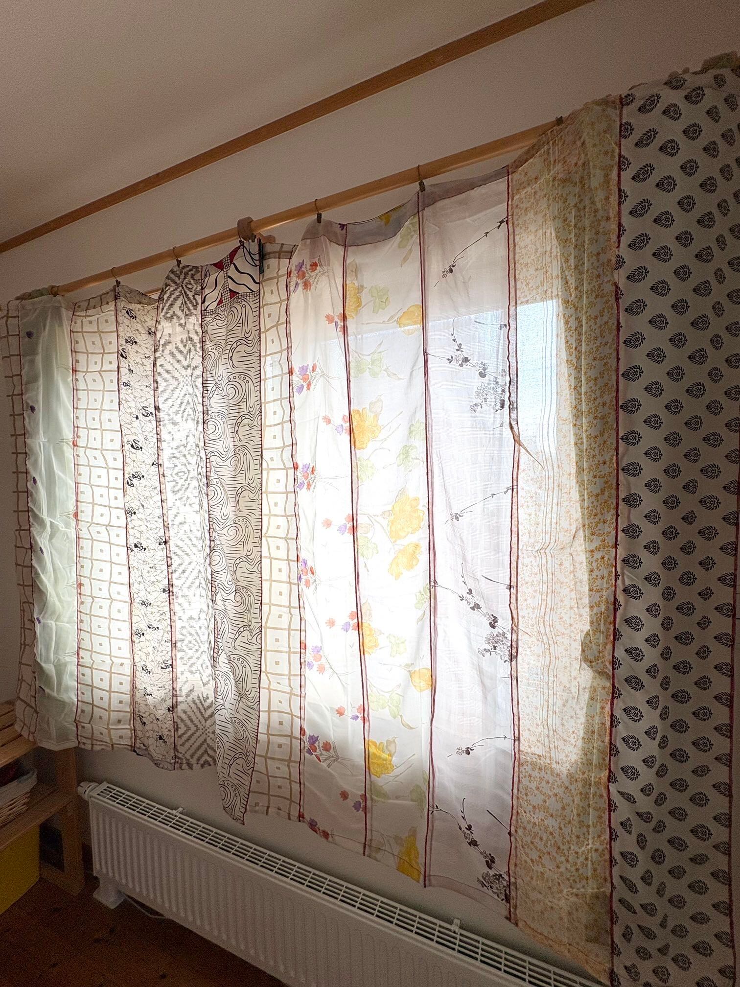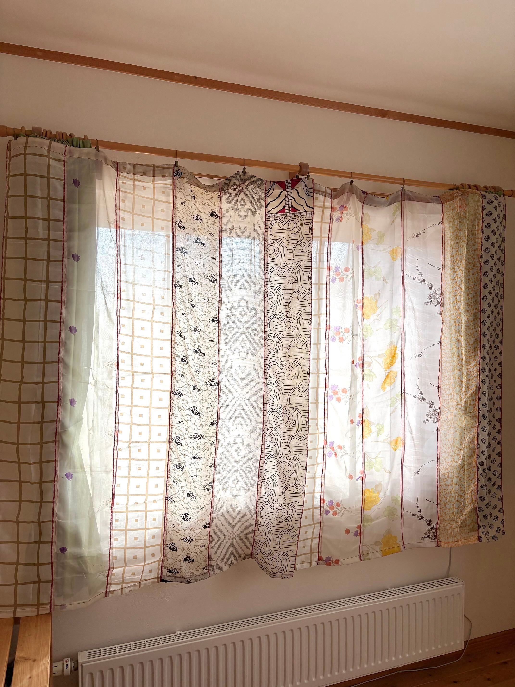 ヴィンテージサリーで出来たパッチワークシルクカーテン