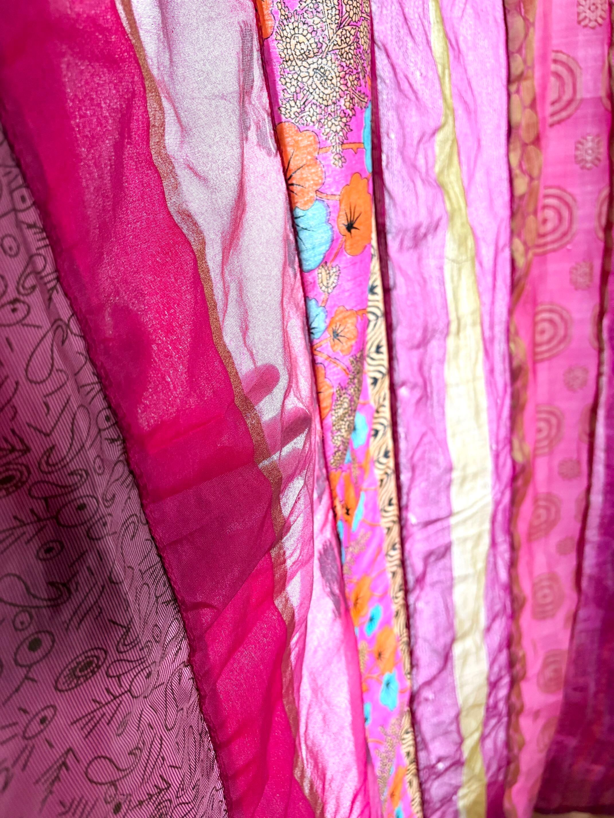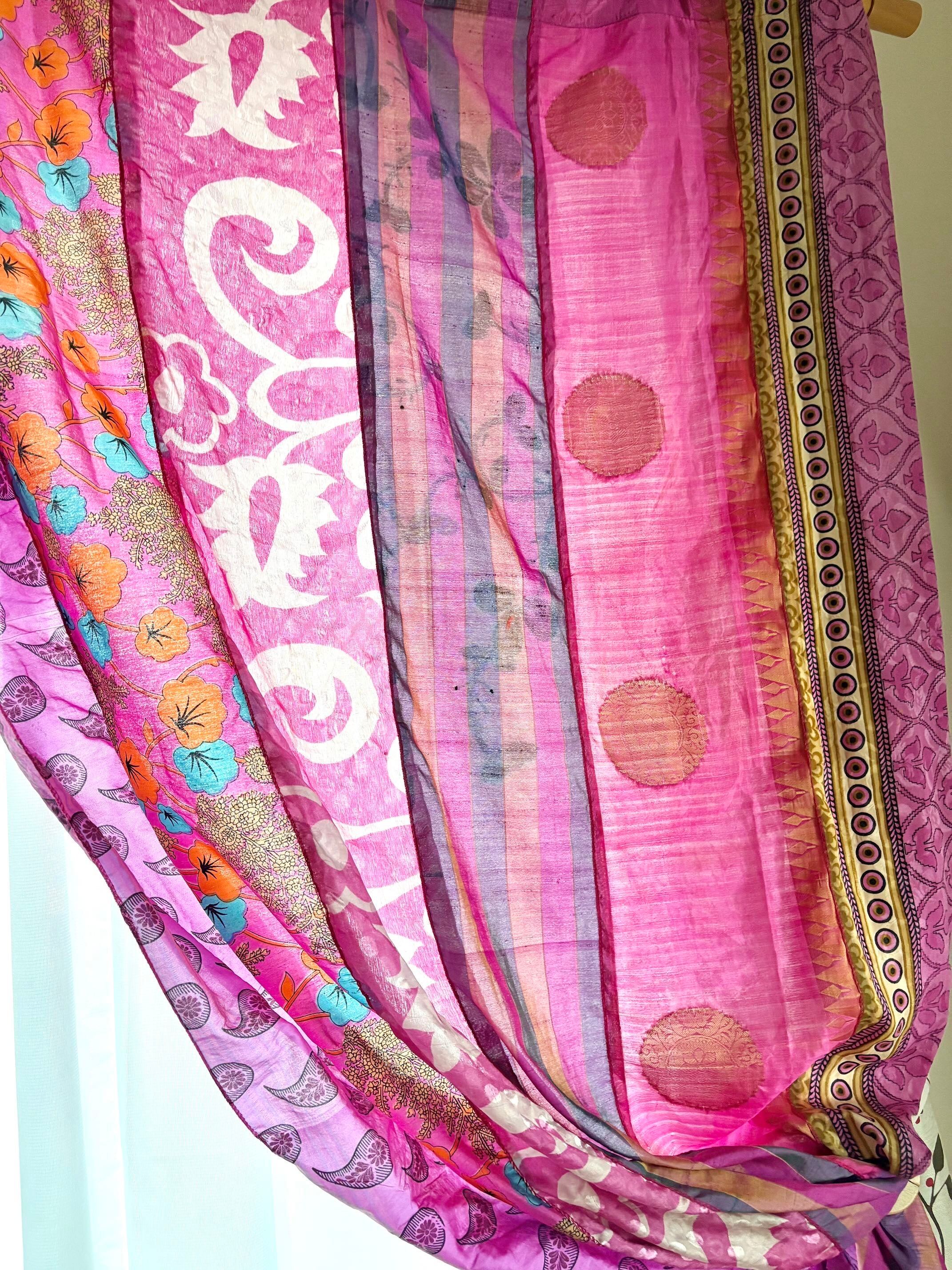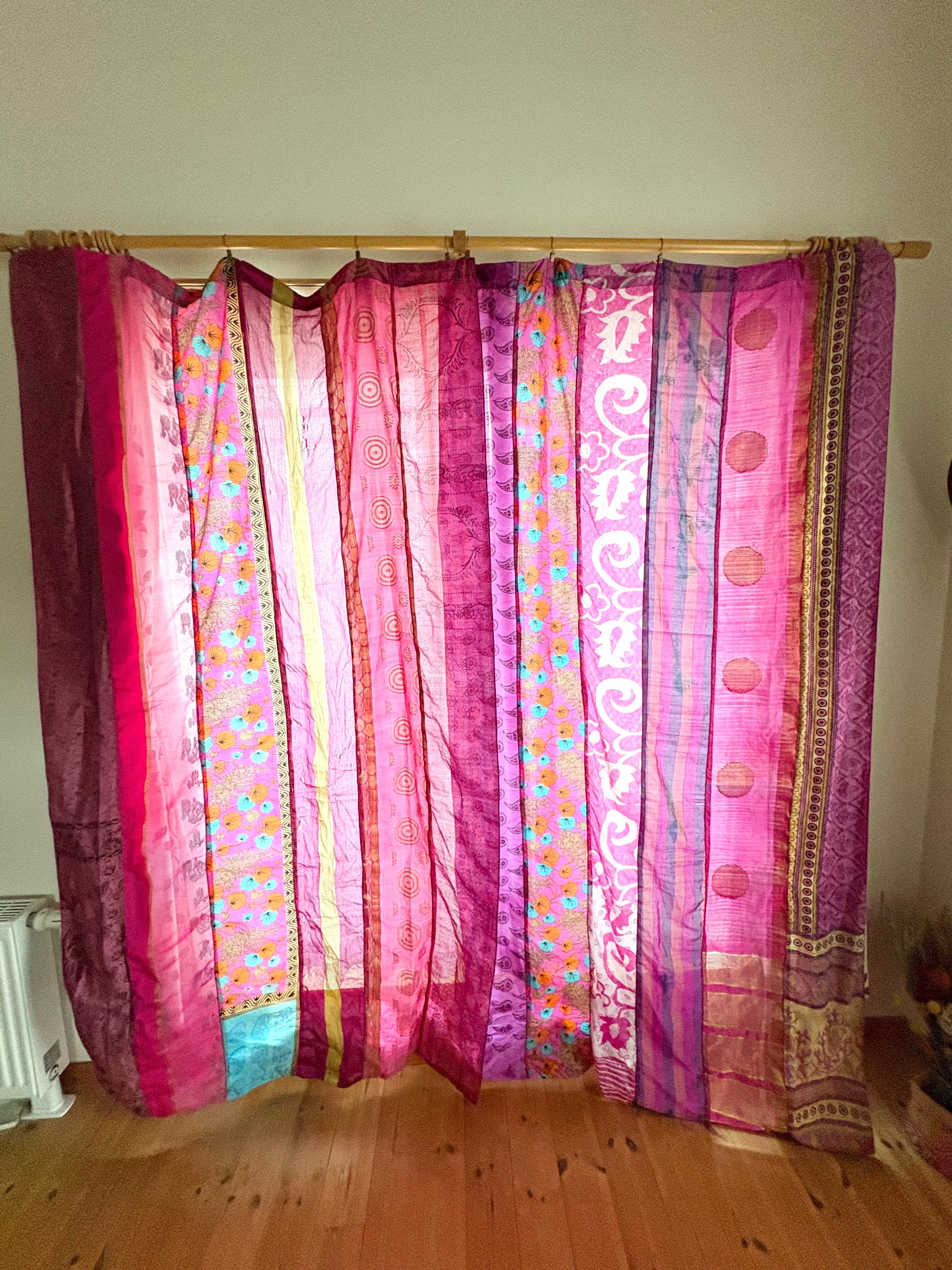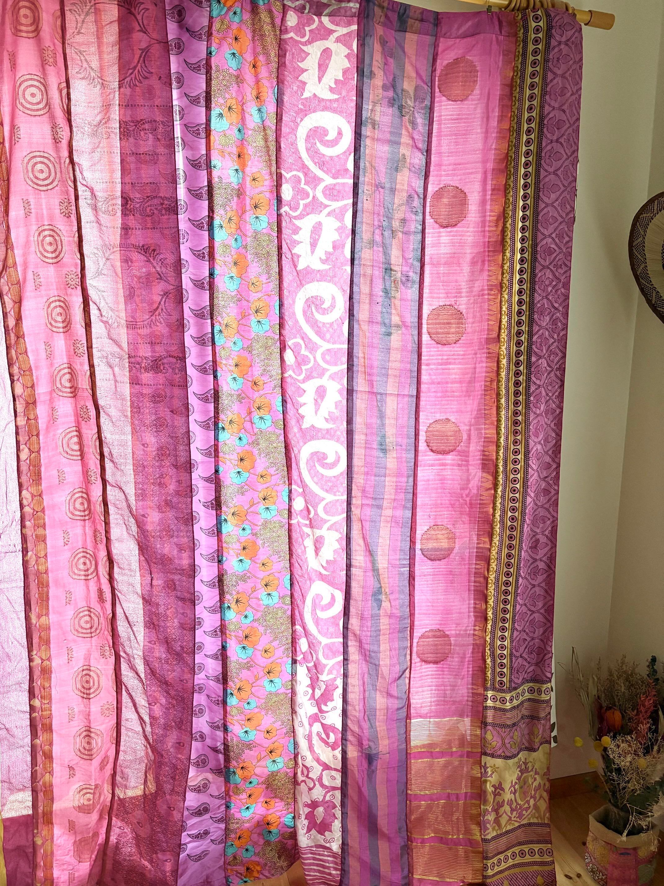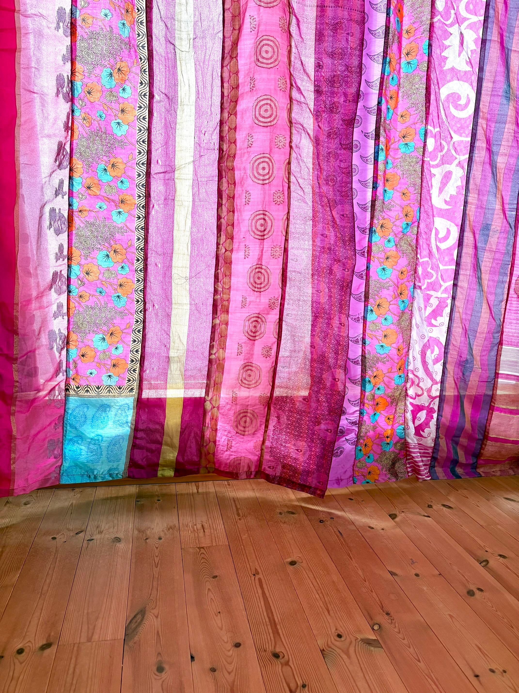 ヴィンテージサリーで出来たパッチワークシルクカーテン
