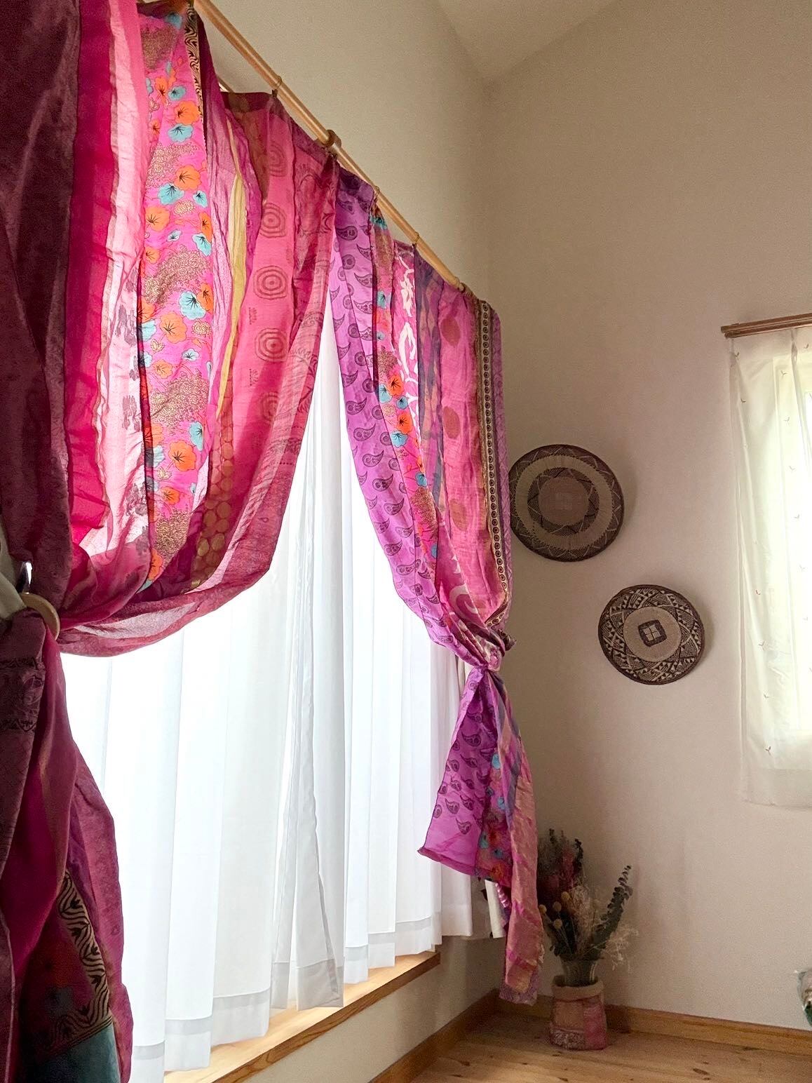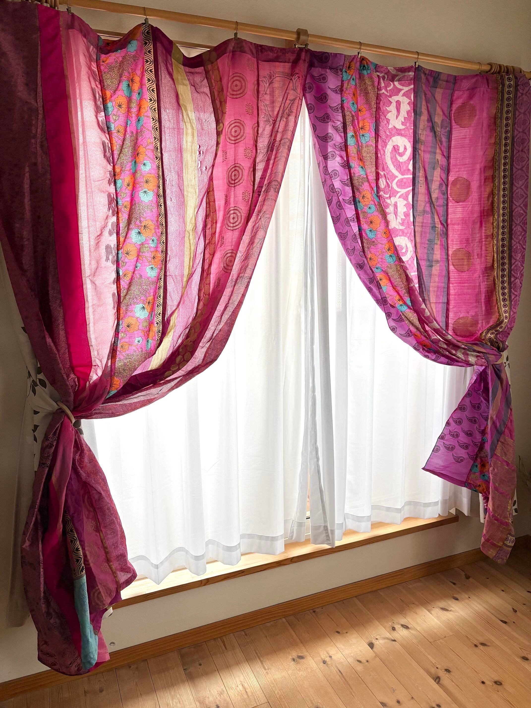 ※カーテンとしては新品未使用ですが、布はヴィンテージサリーを使っております。