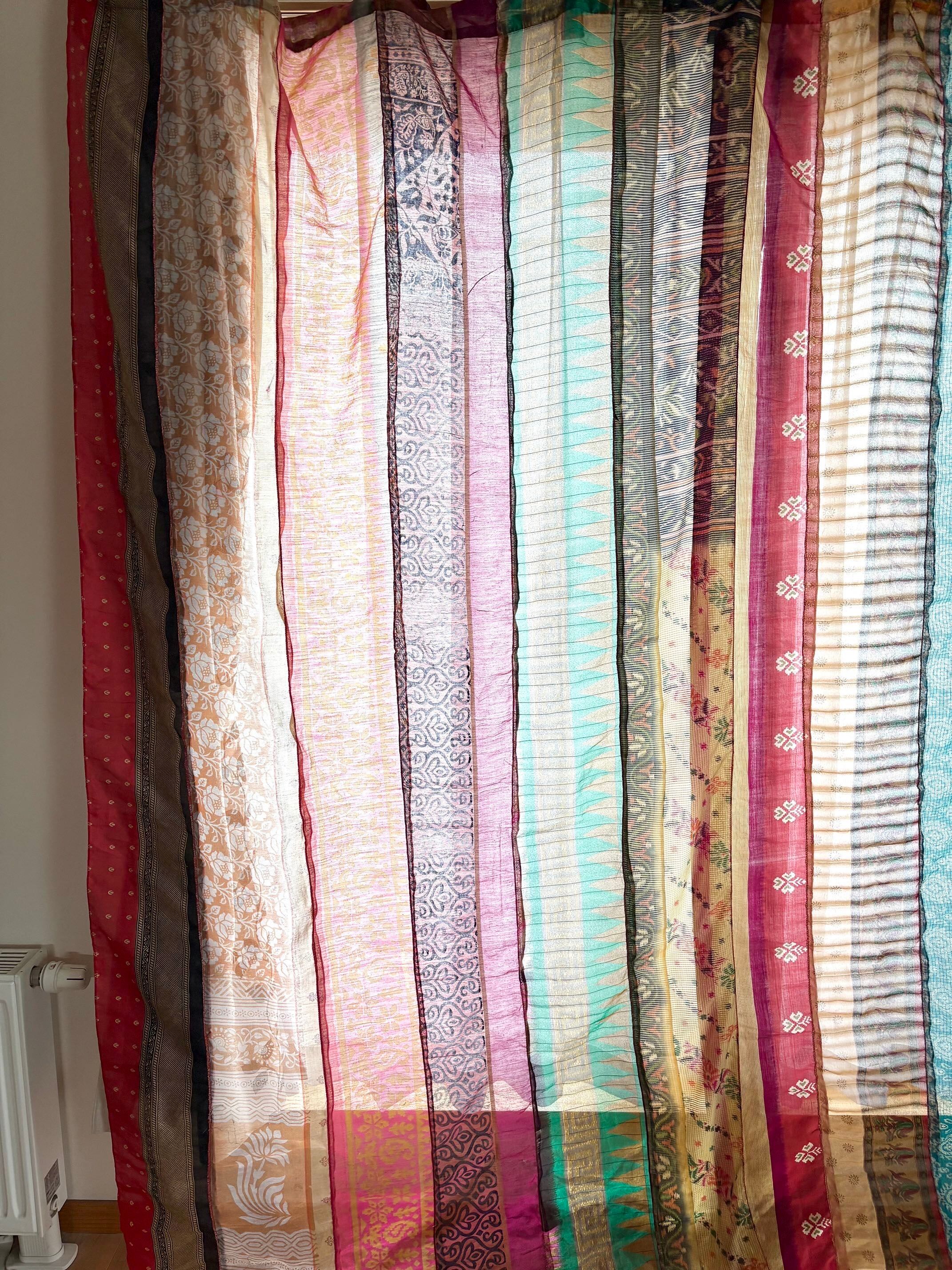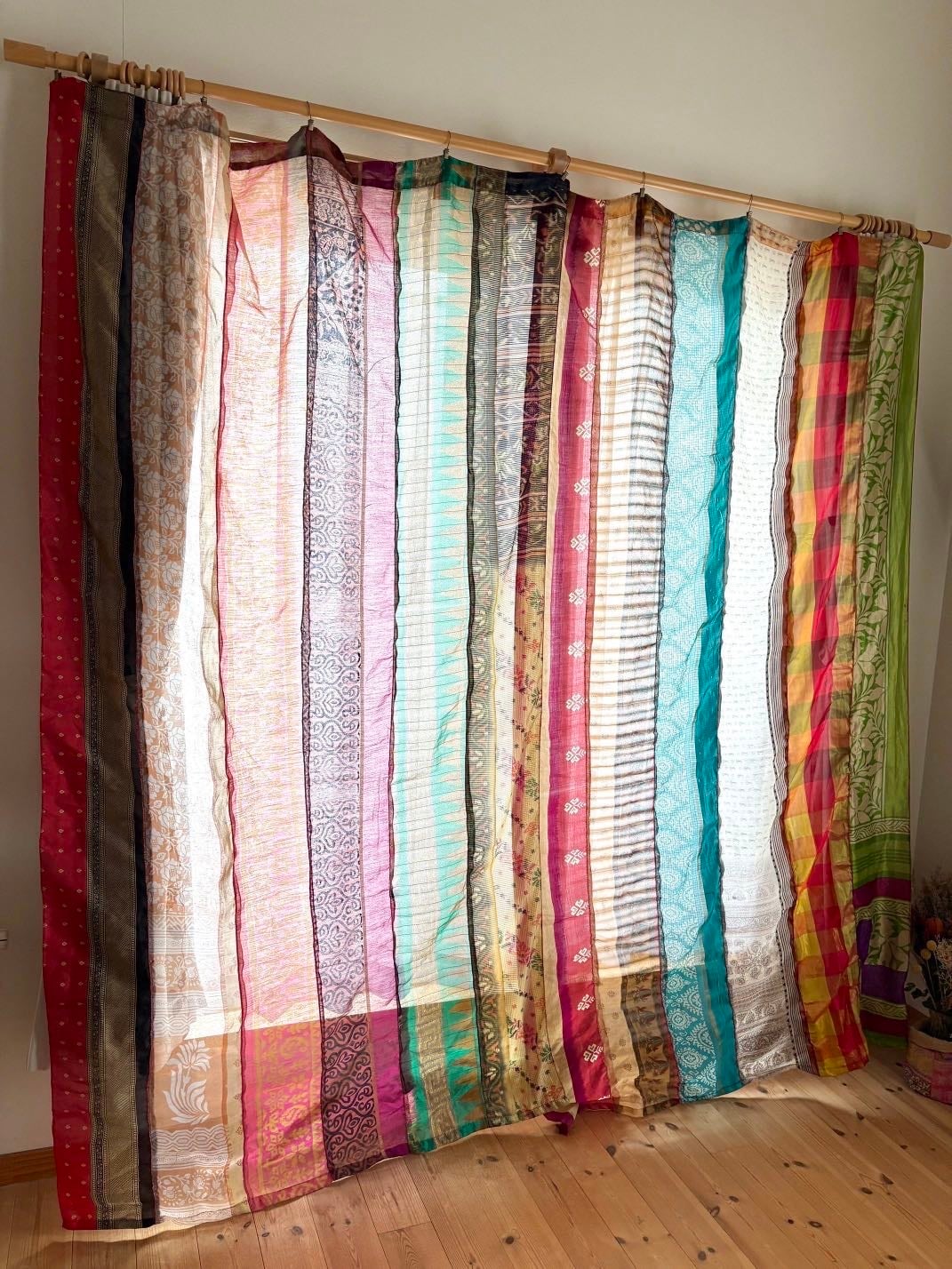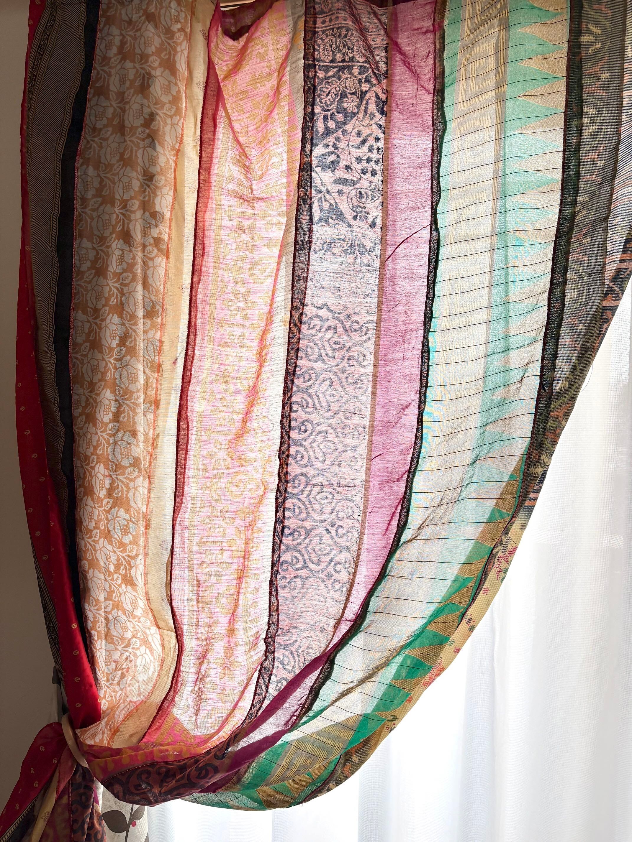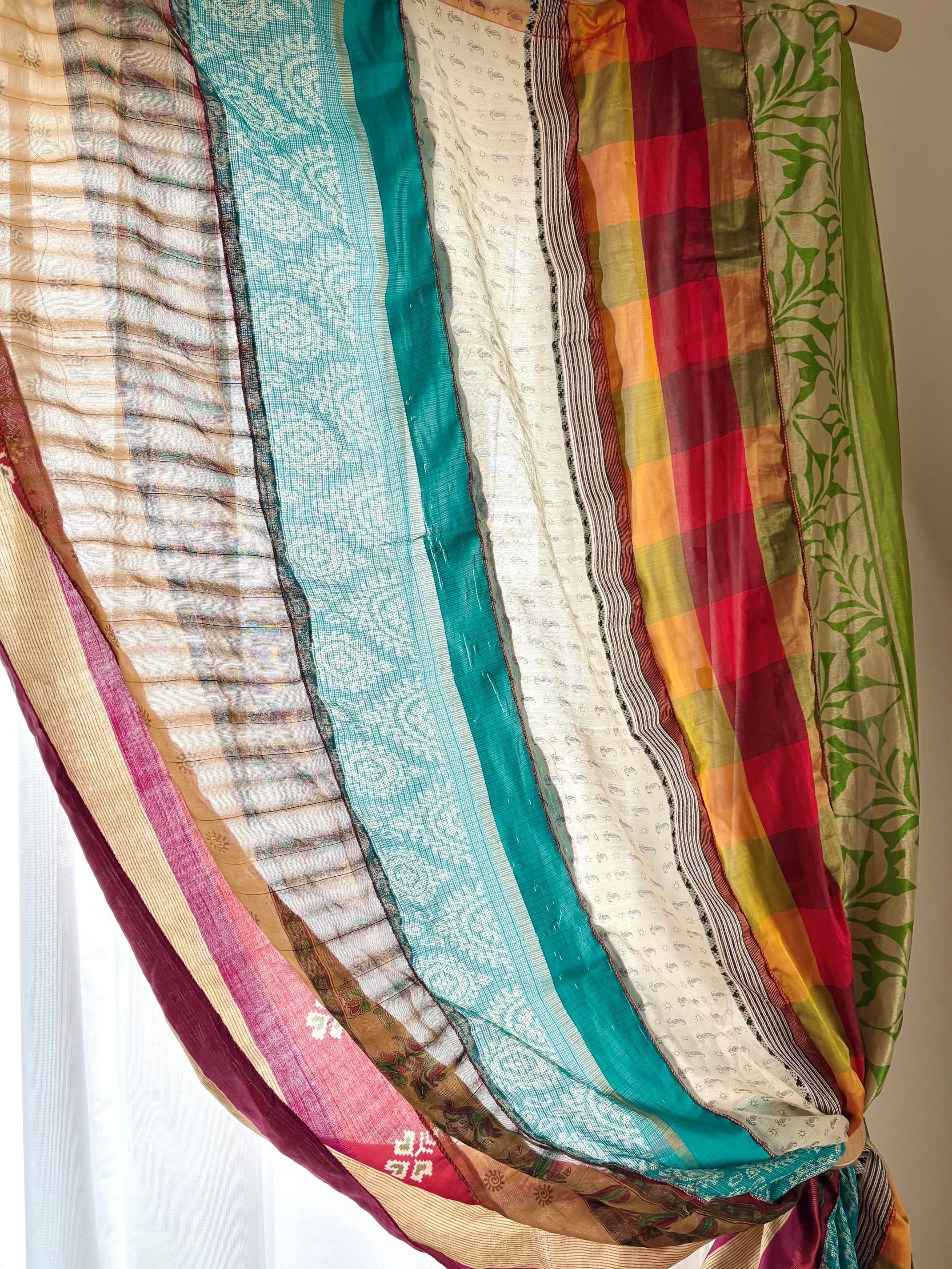 ヴィンテージサリーで出来たパッチワークシルクカーテン