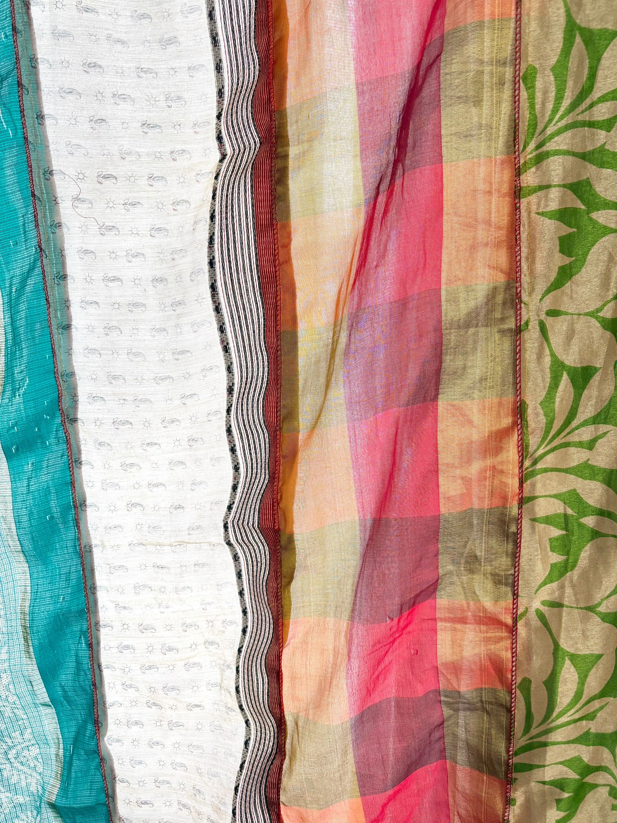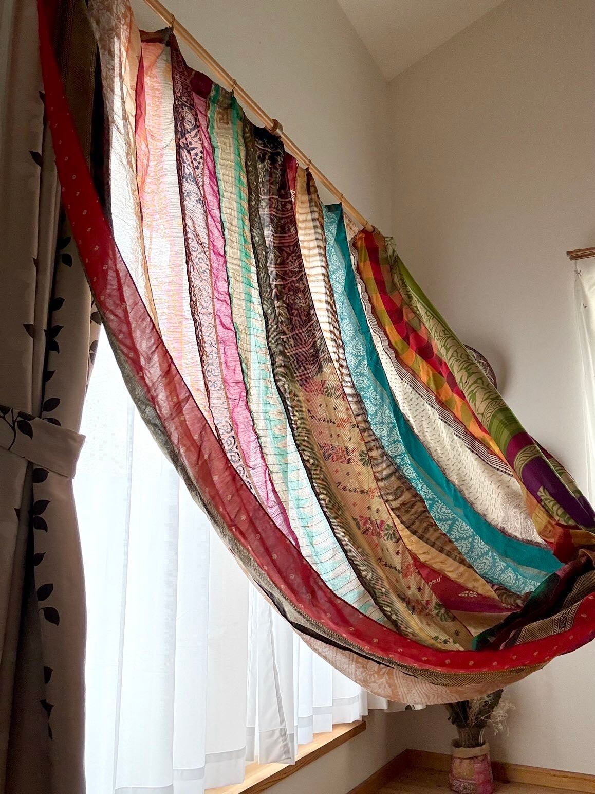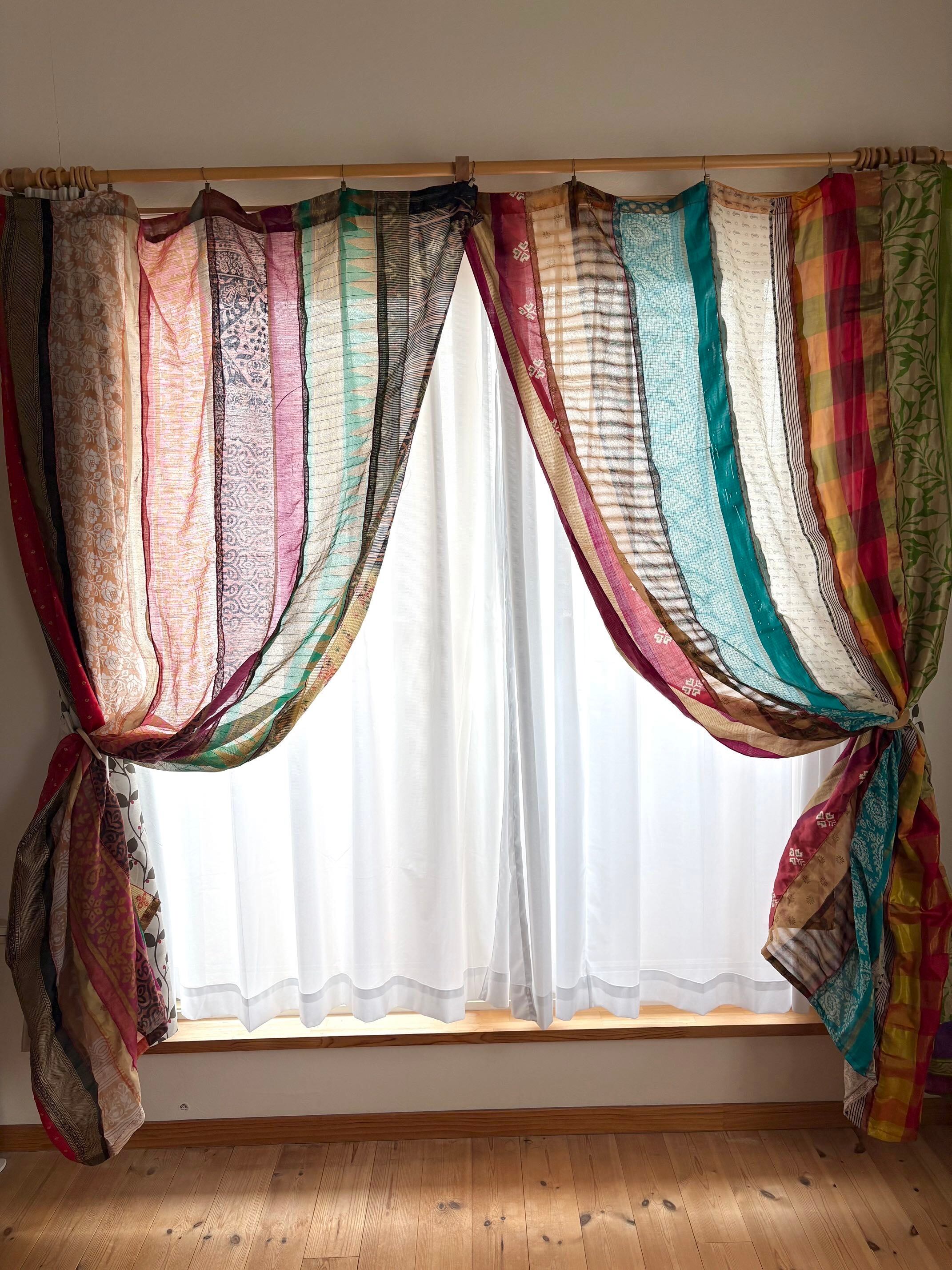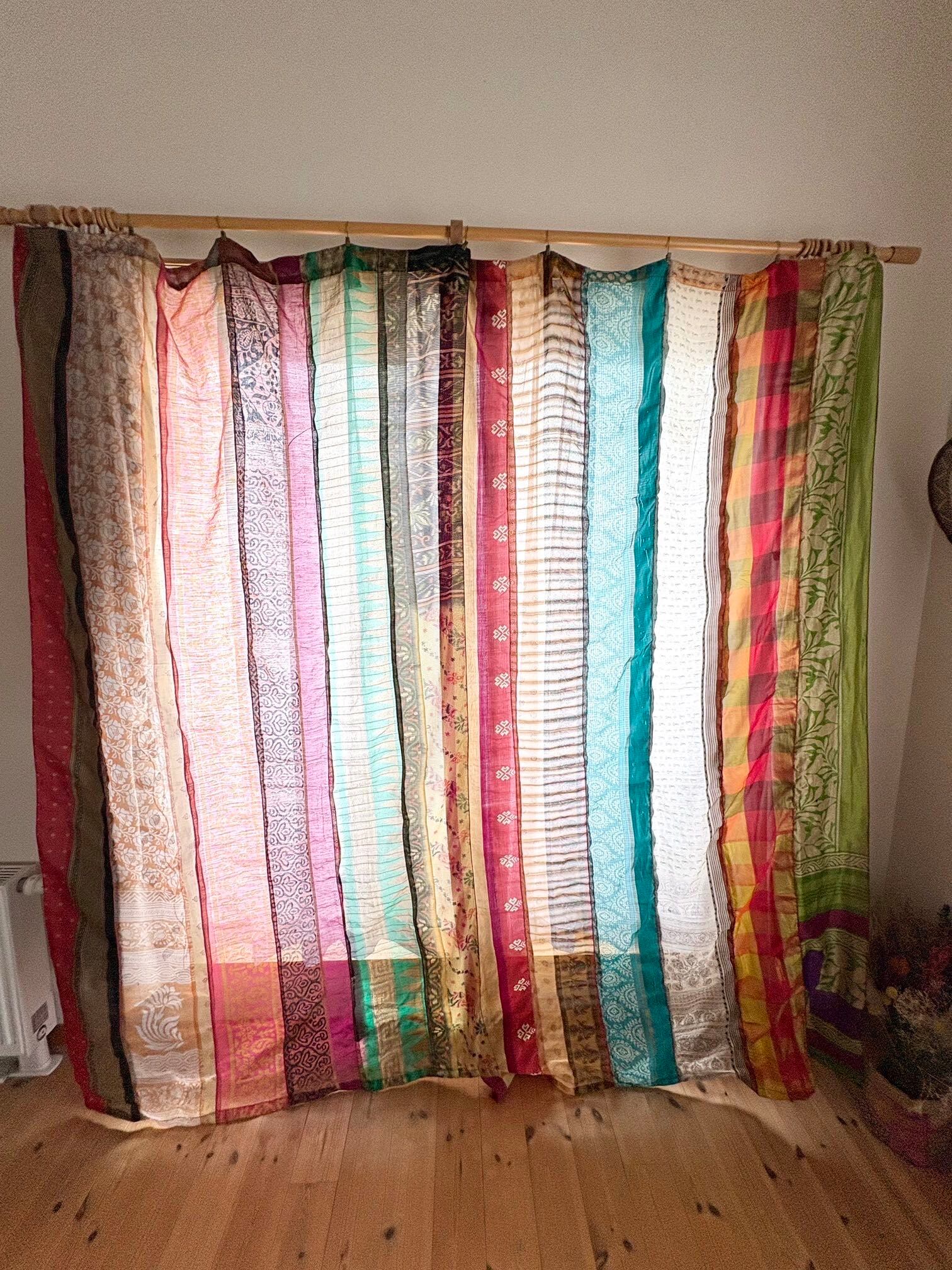 ヴィンテージサリーで出来たパッチワークシルクカーテン