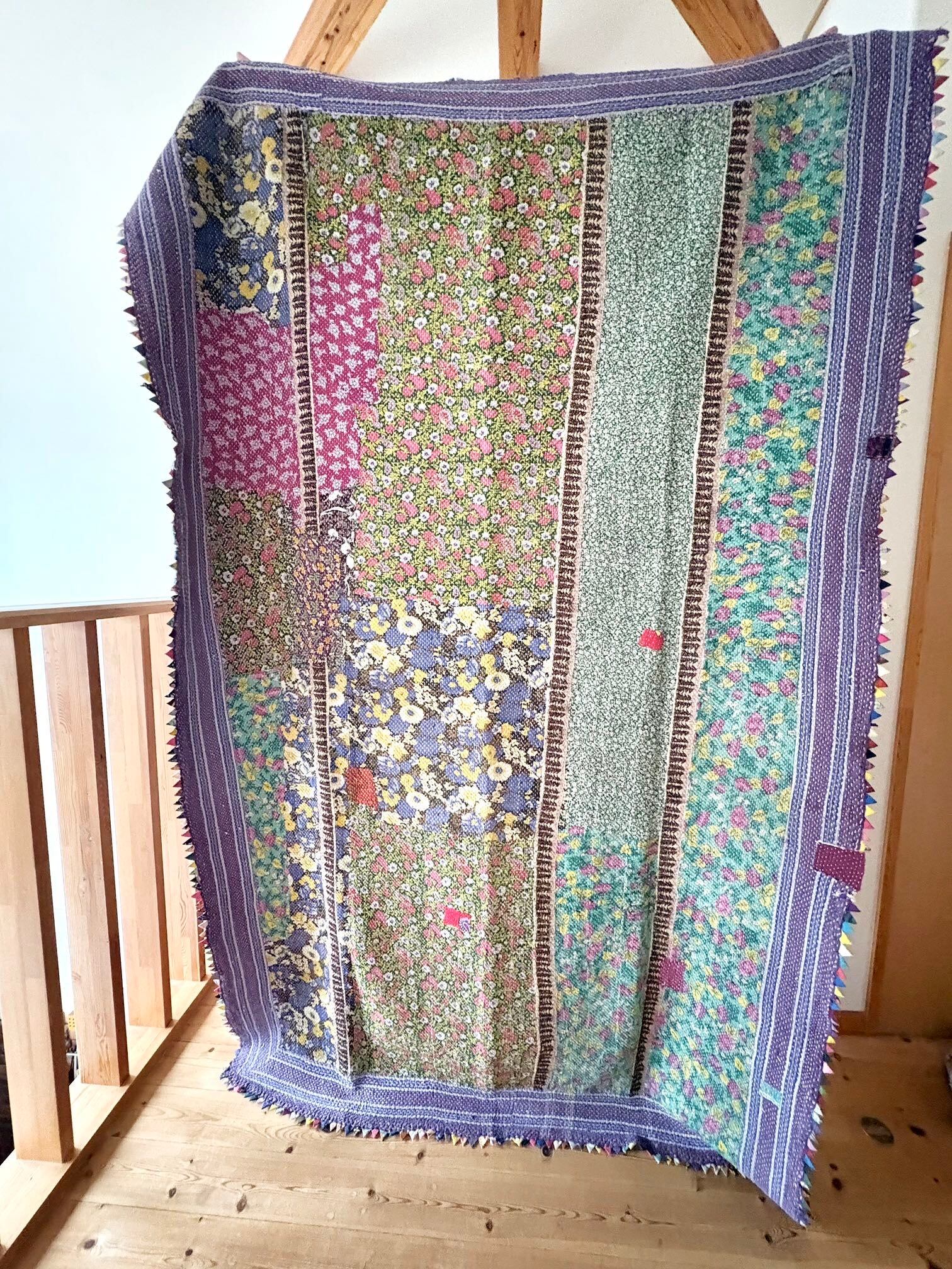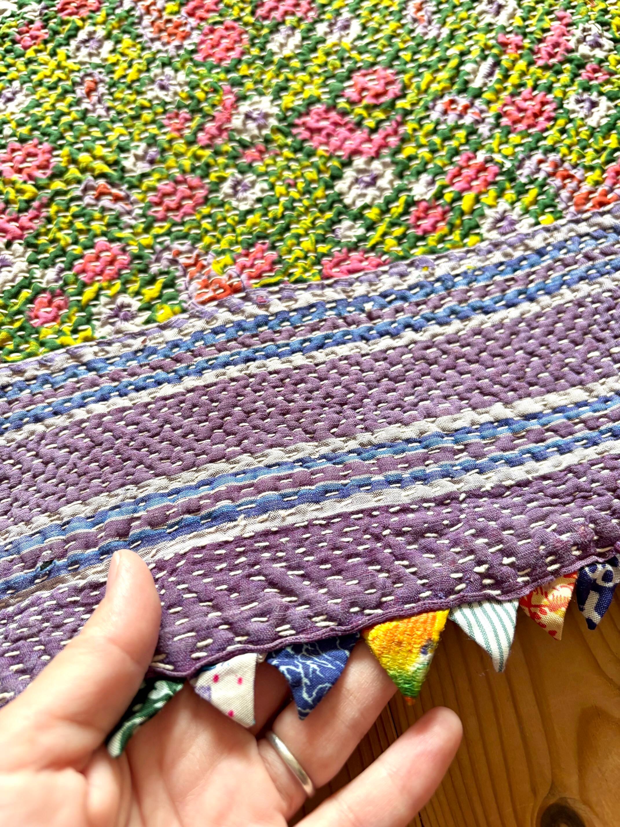 ・こちらは、インドの女性たちによる手刺繍の一点ものキルトです。