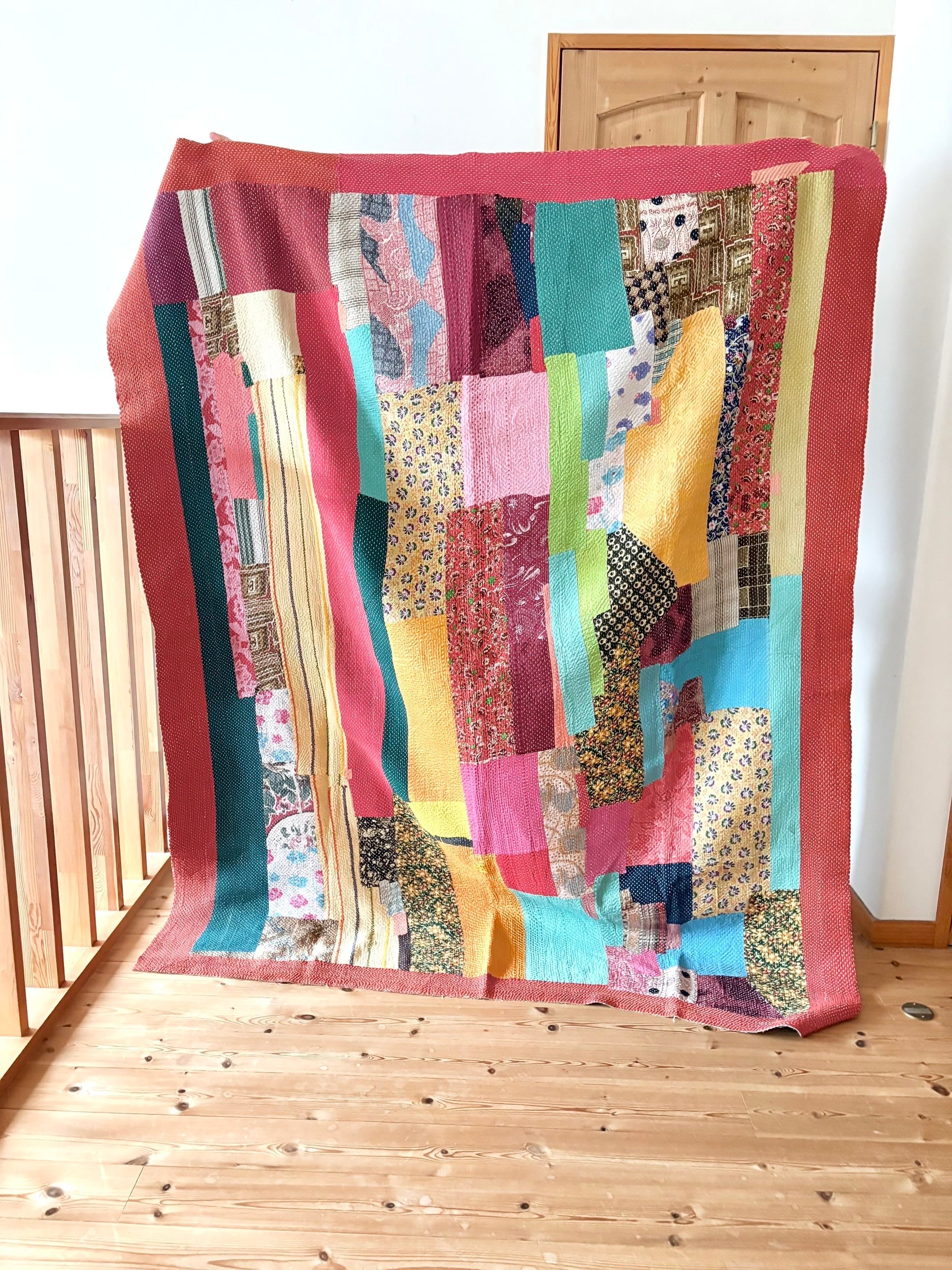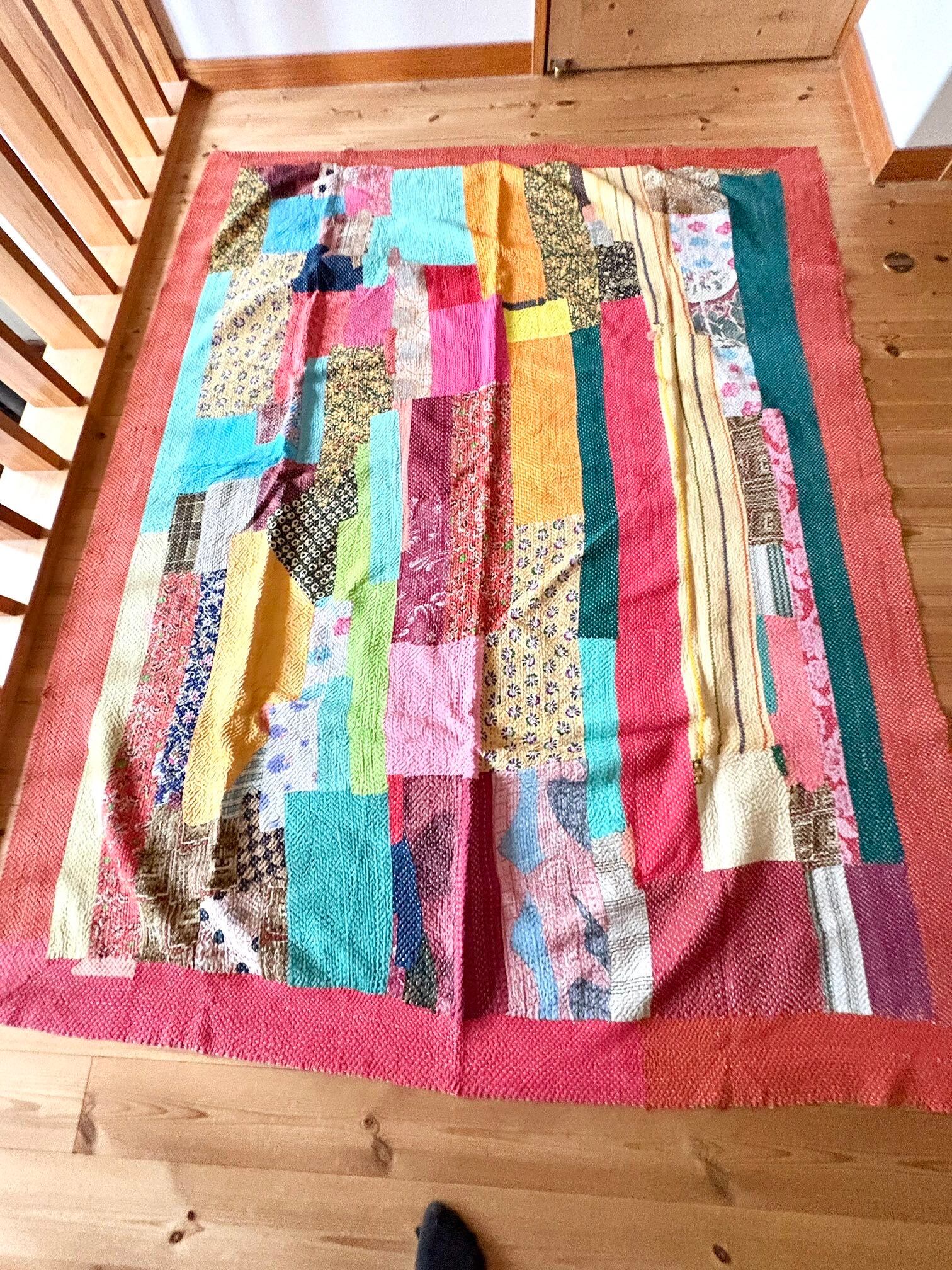 ・こちらは、インドの女性たちによる手刺繍の一点ものキルトです。