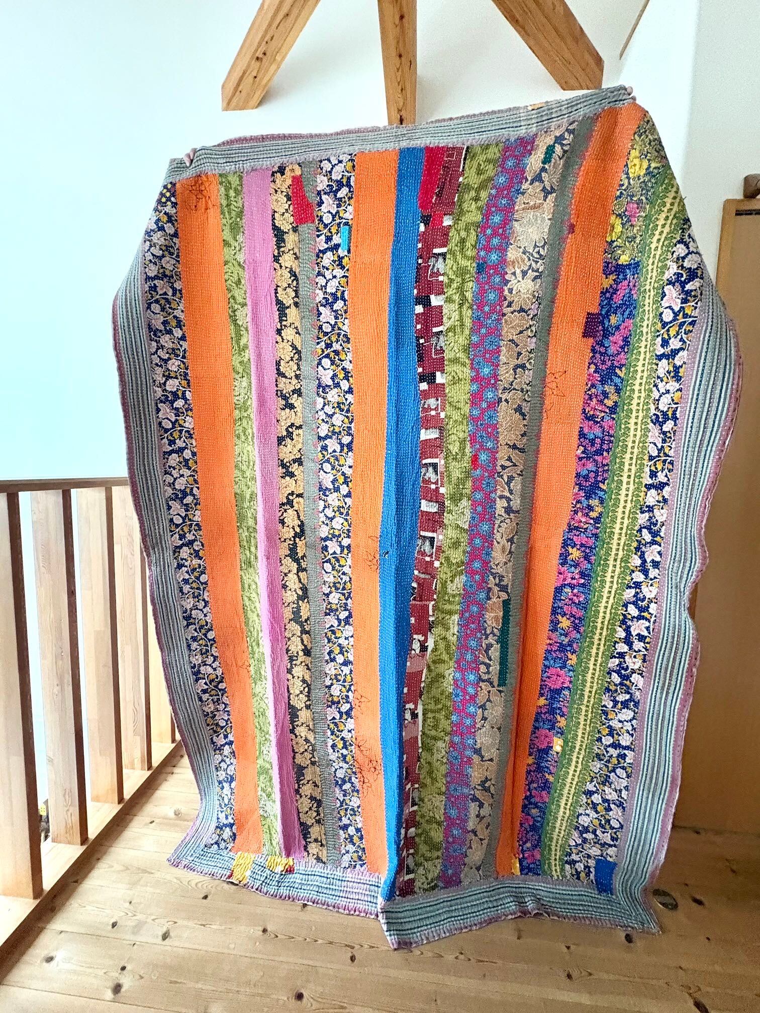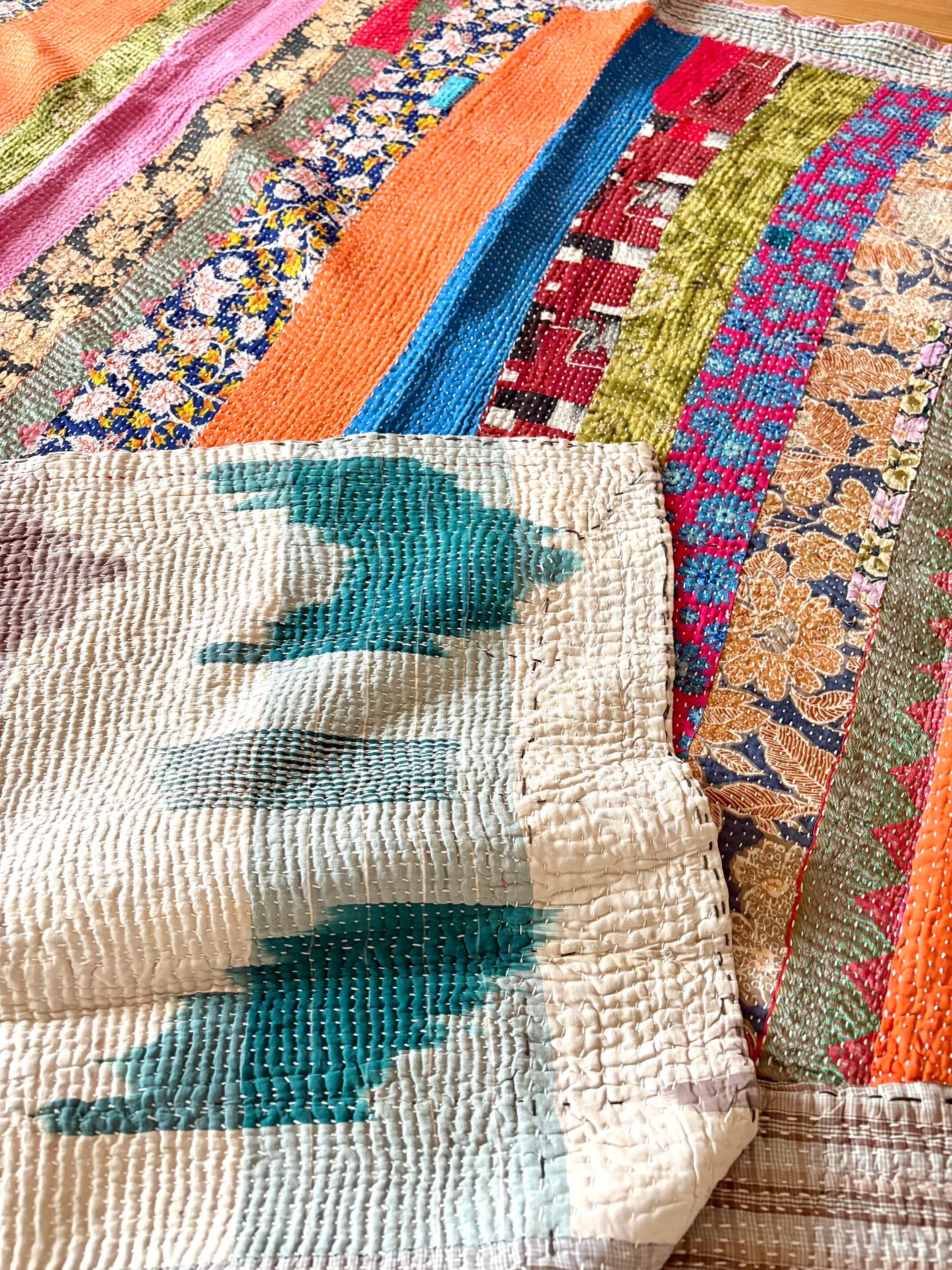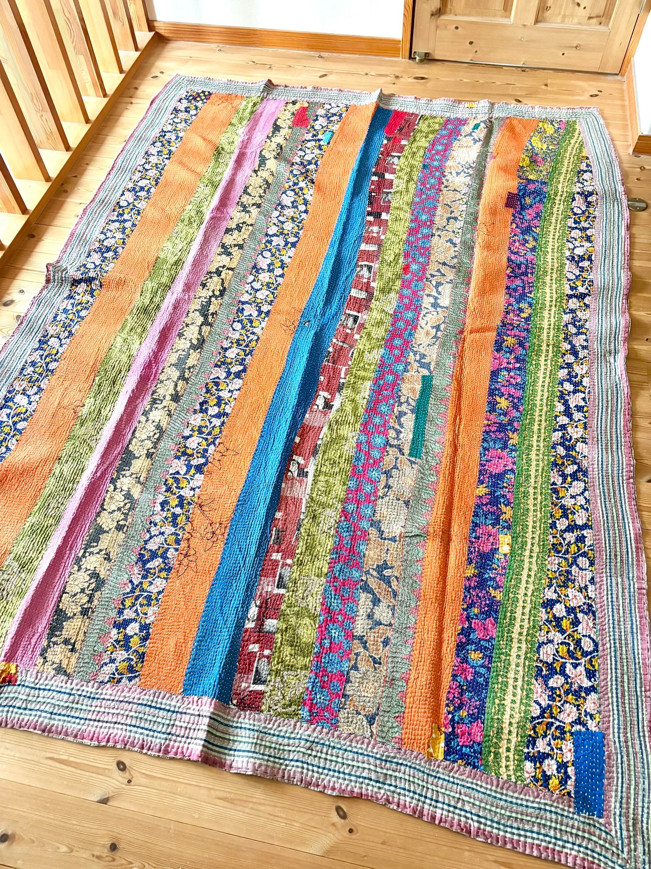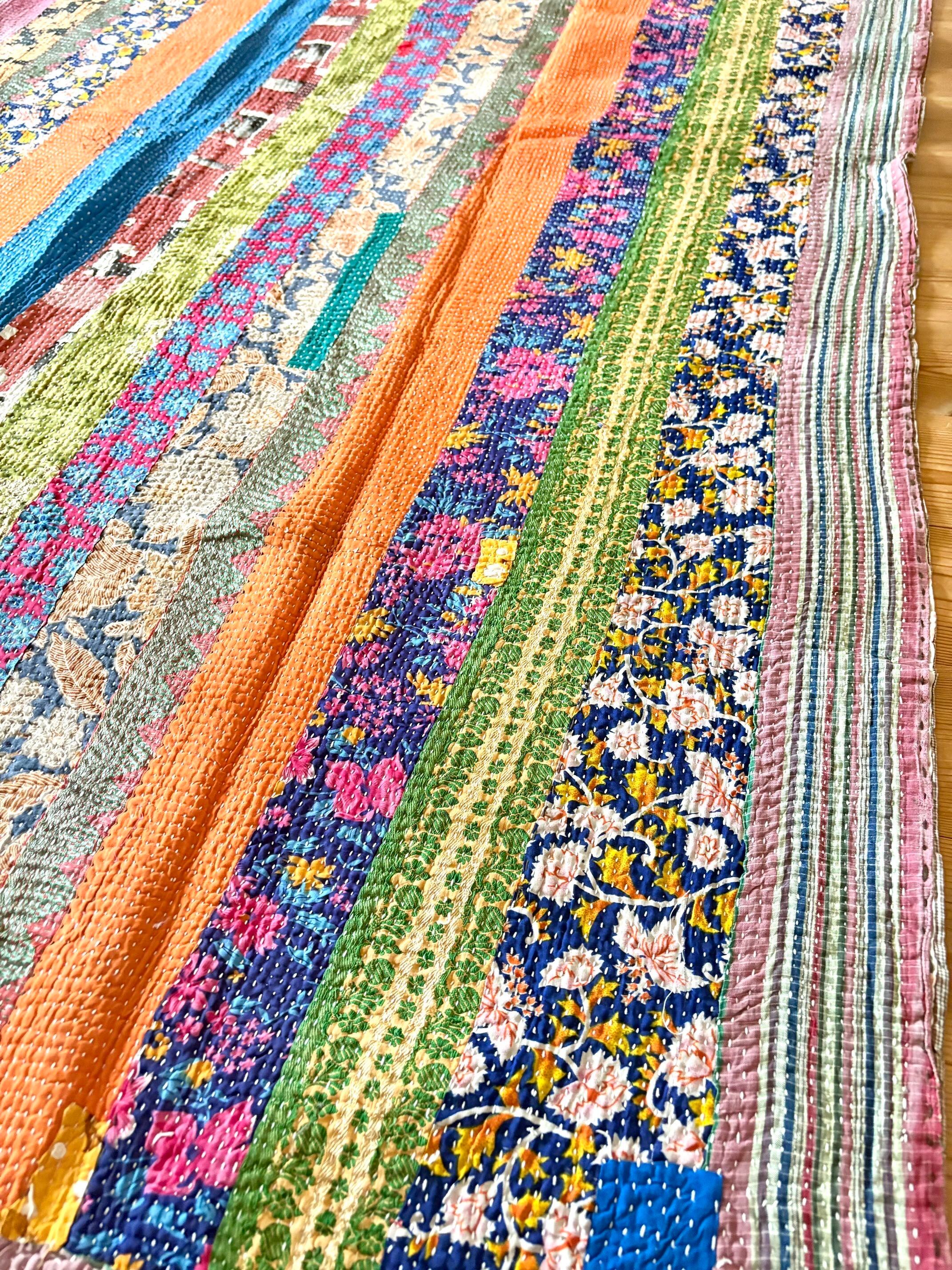 ◯フラワーストライプ/カンタ刺繍パッチワークキルト