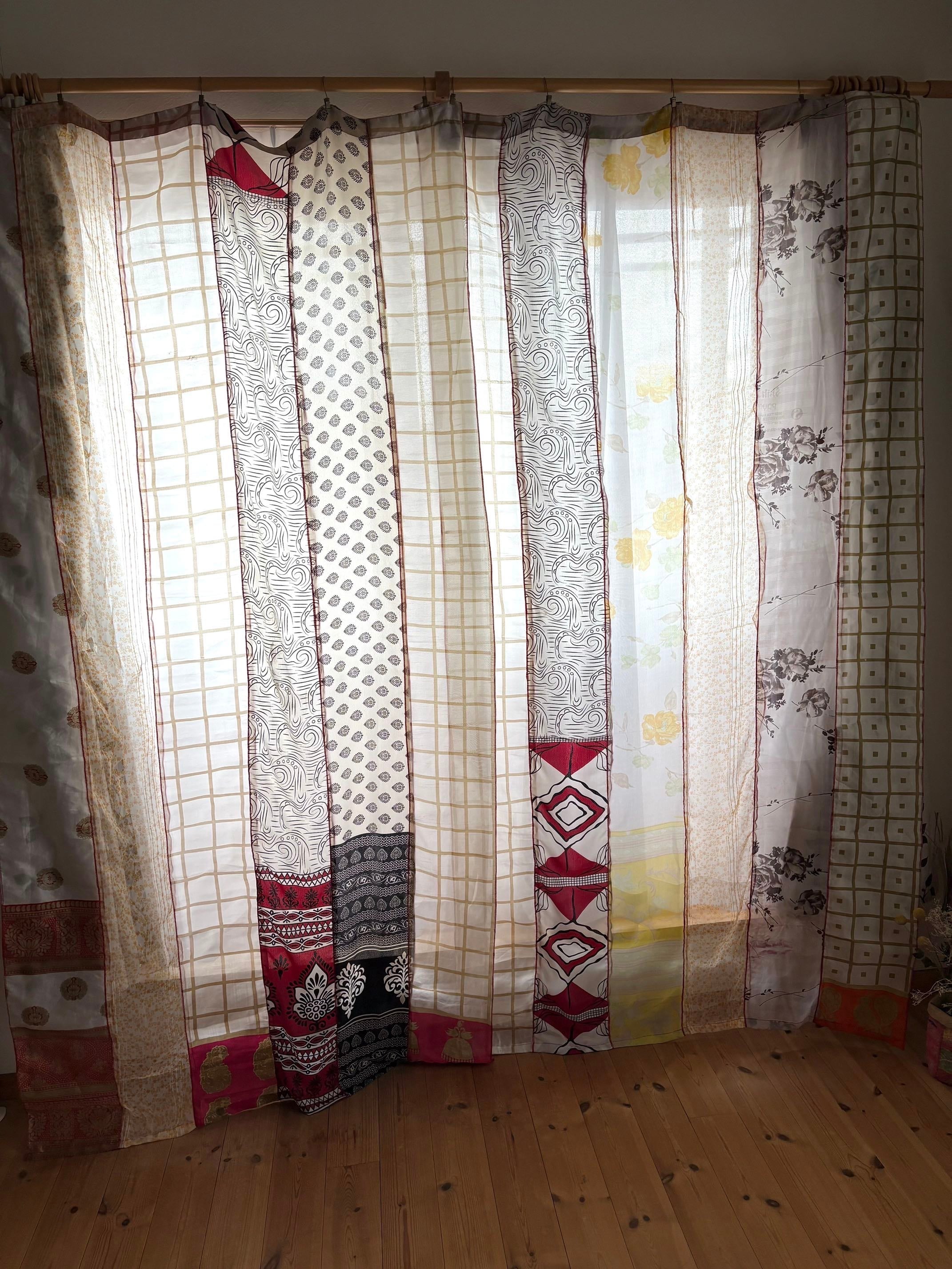 ヴィンテージサリーで出来たパッチワークシルクカーテン