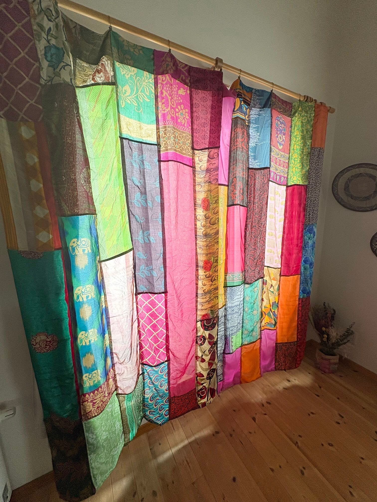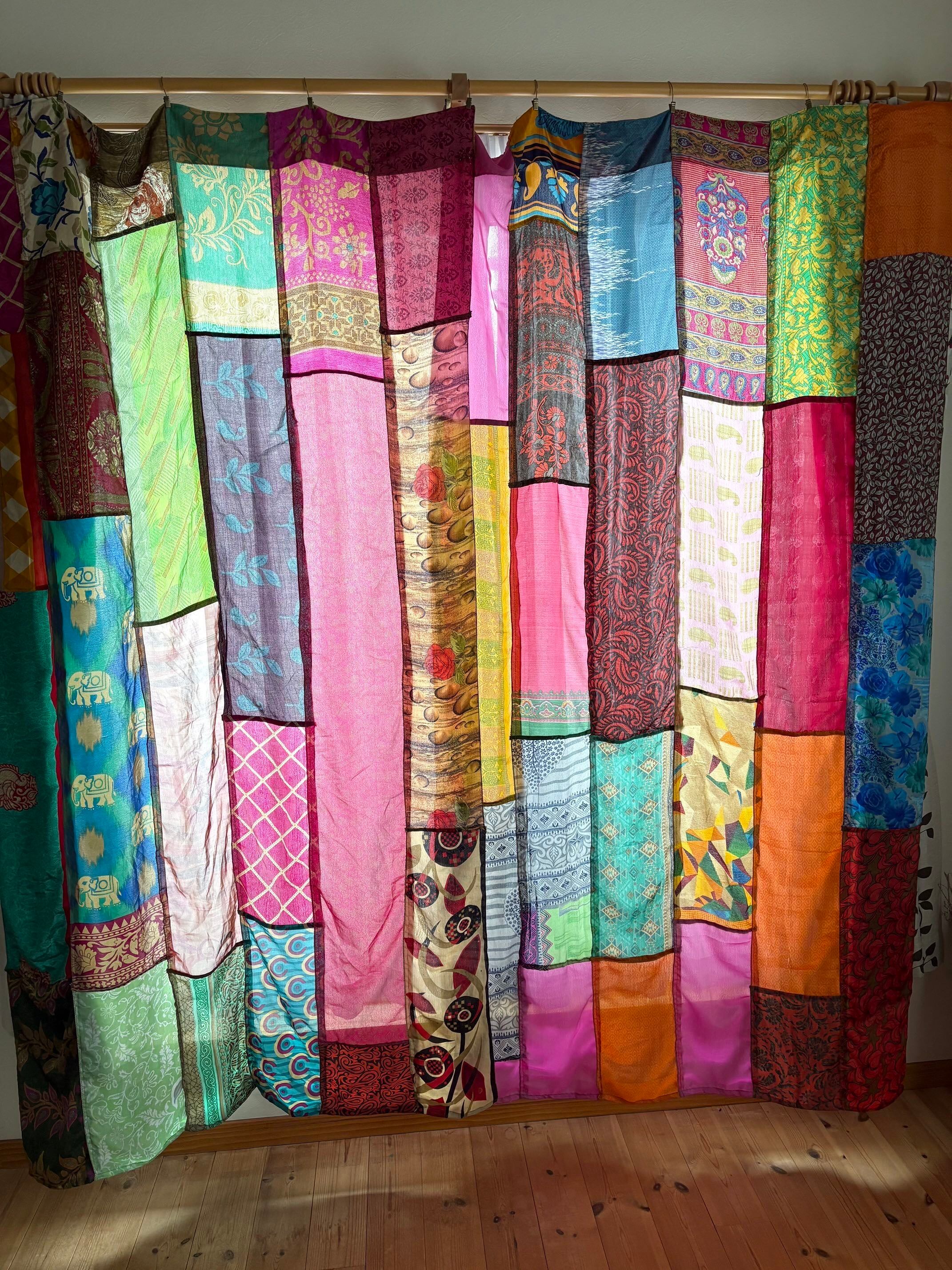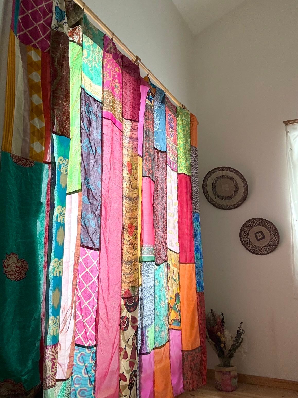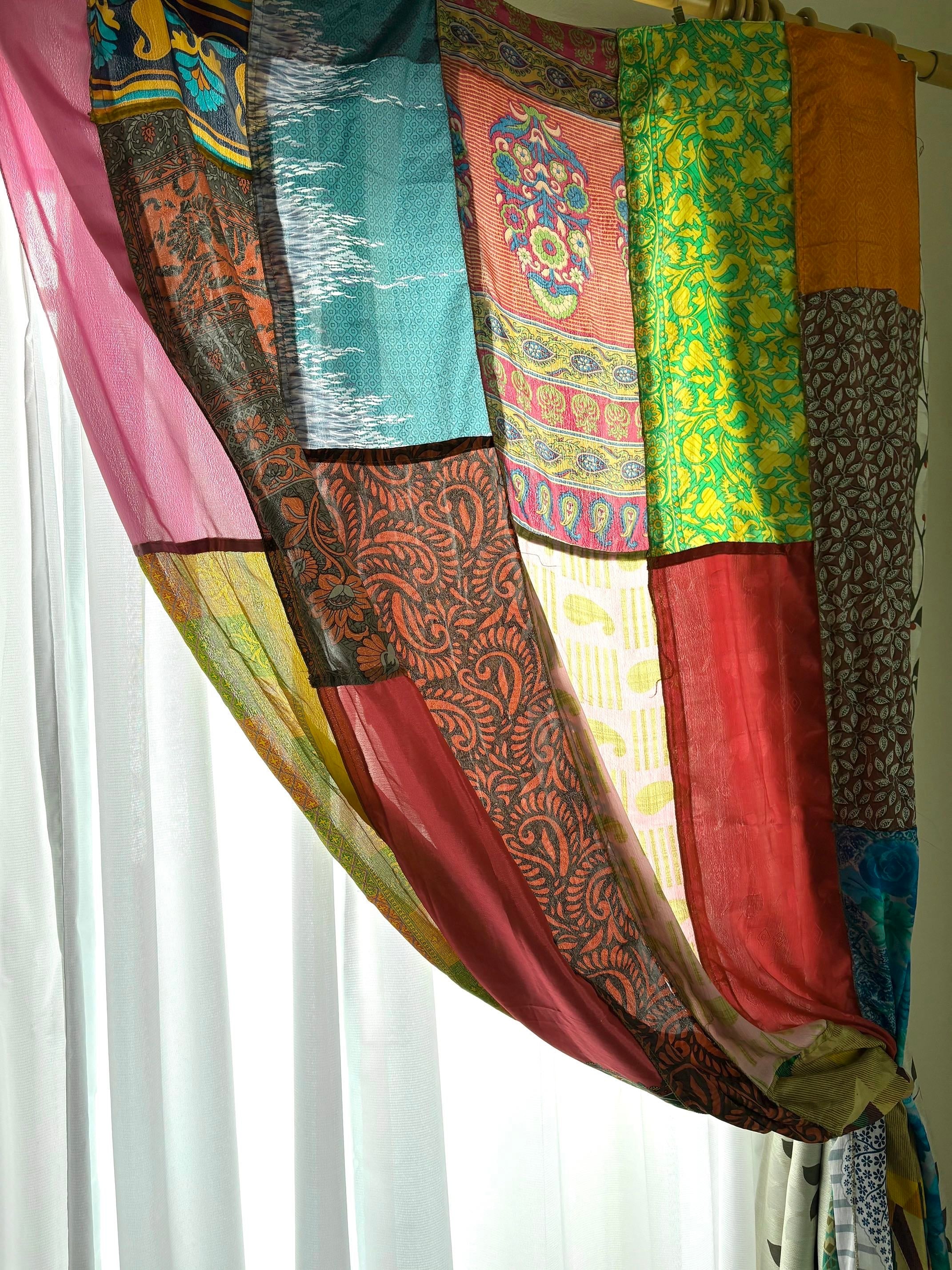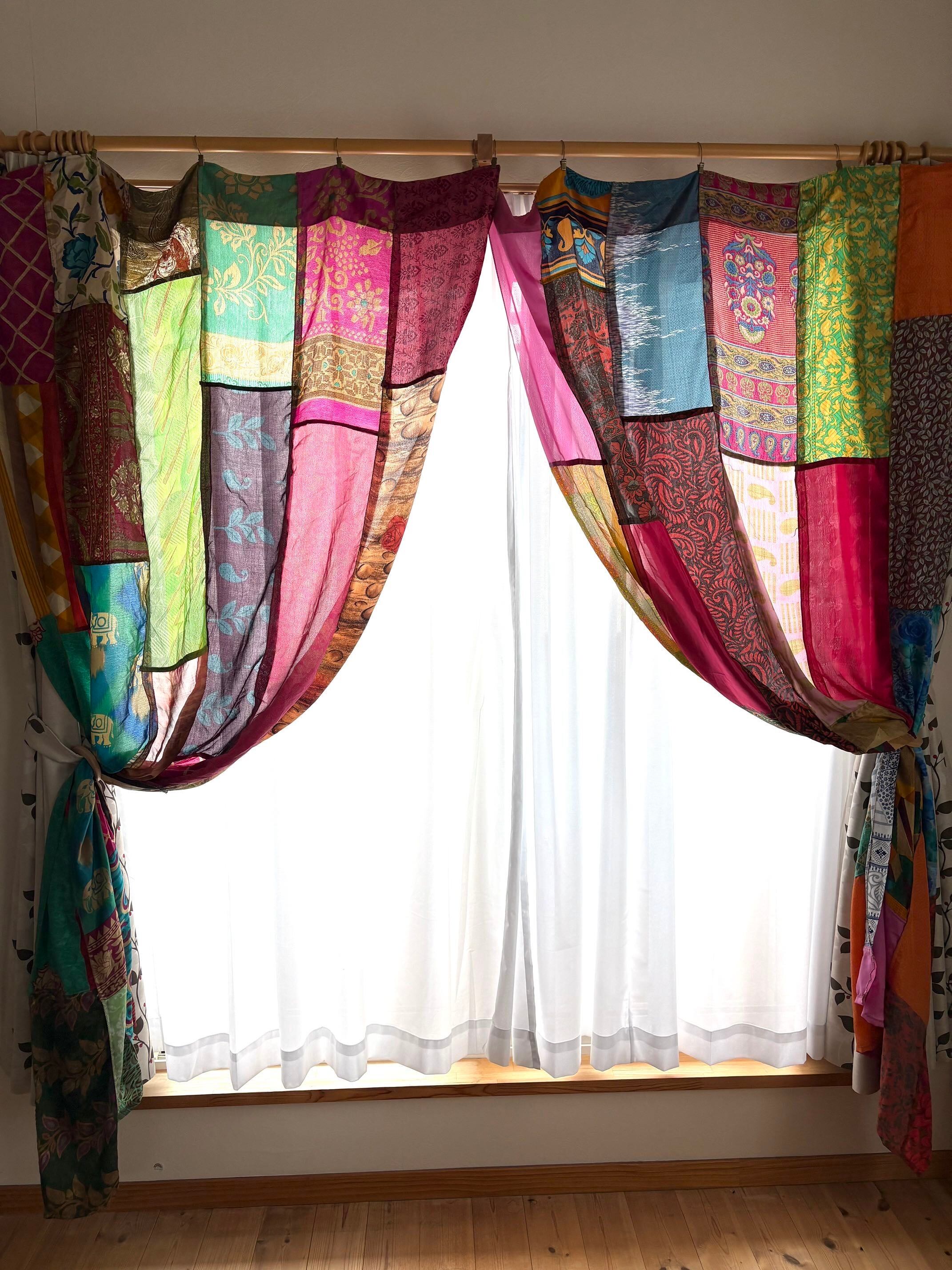 ヴィンテージサリーで出来たパッチワークシルクカーテン