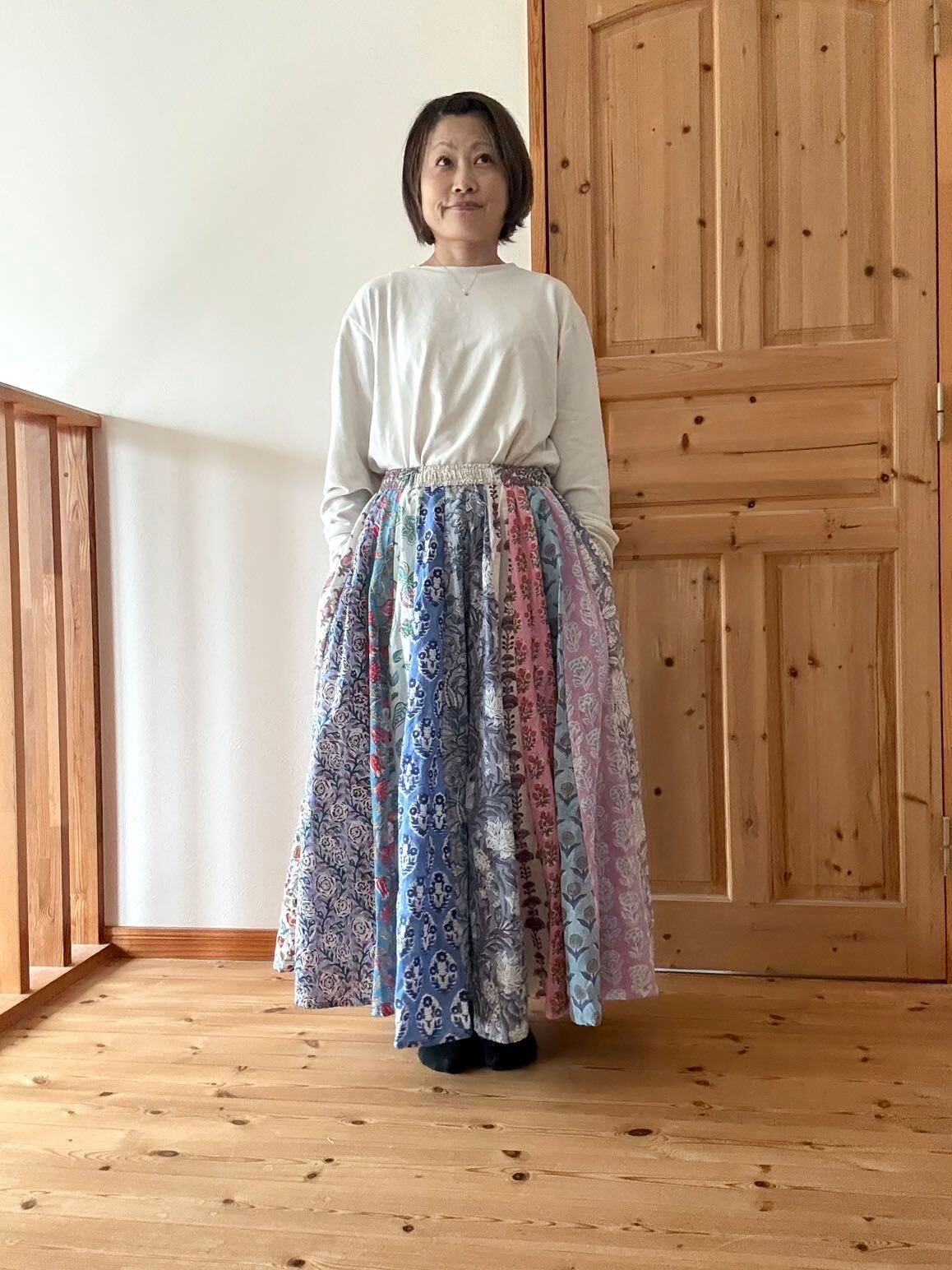 ブロックプリントパッチワークスカート