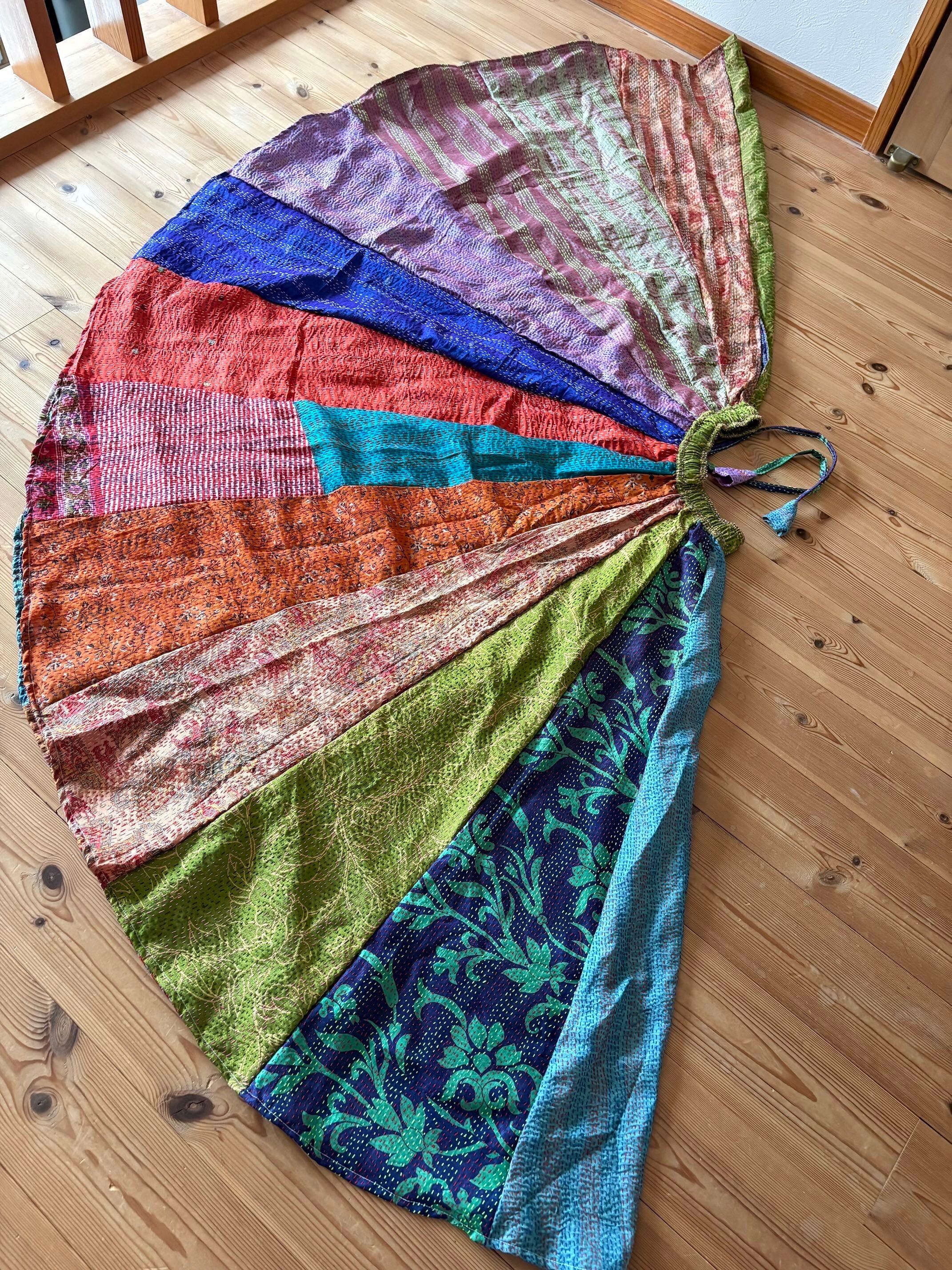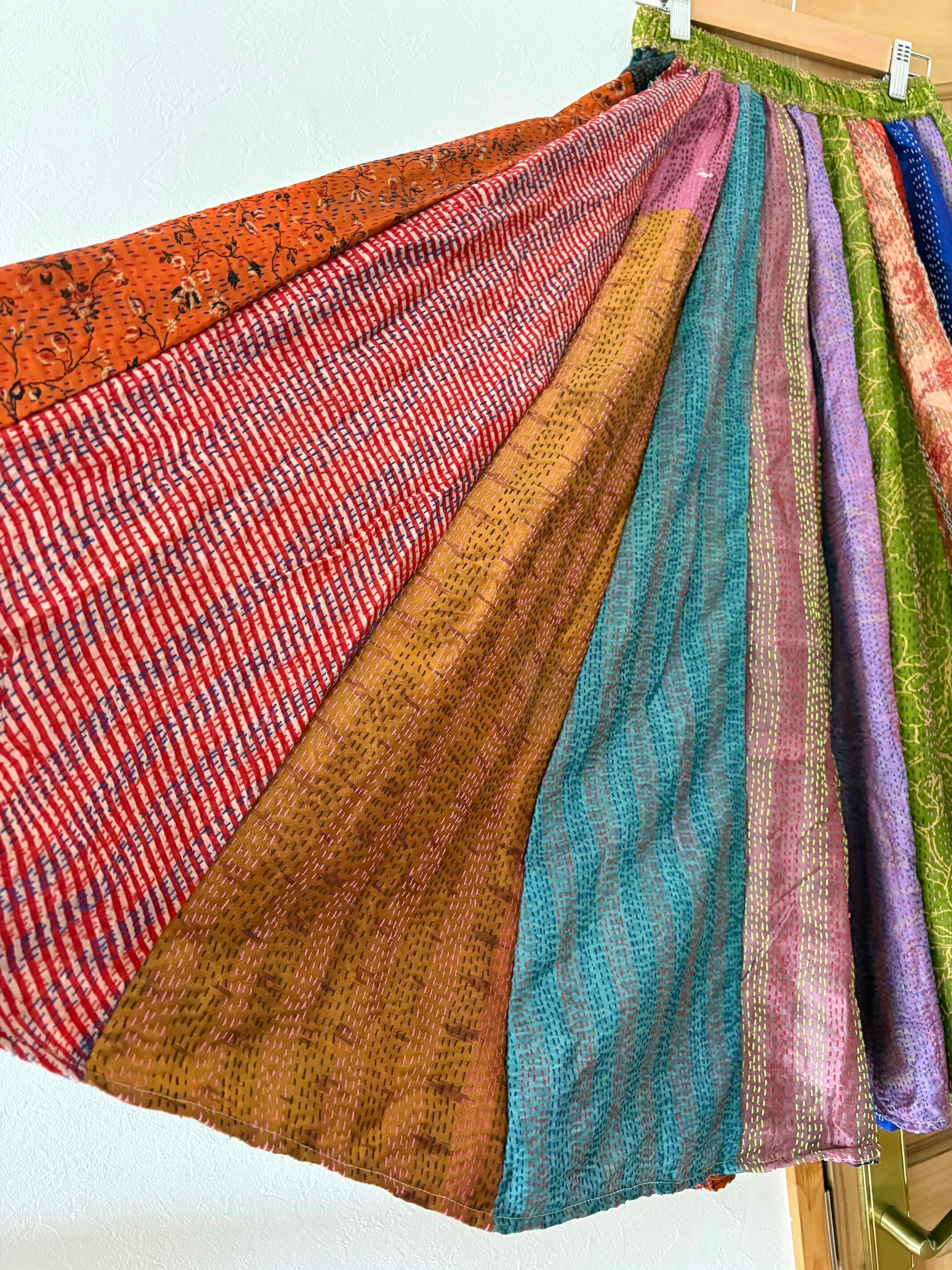 村の女性たちが一針一針カンタ刺繍をしたシルク生地をパッチワークで繋ぎ合わせた唯一無二のスカートです!!