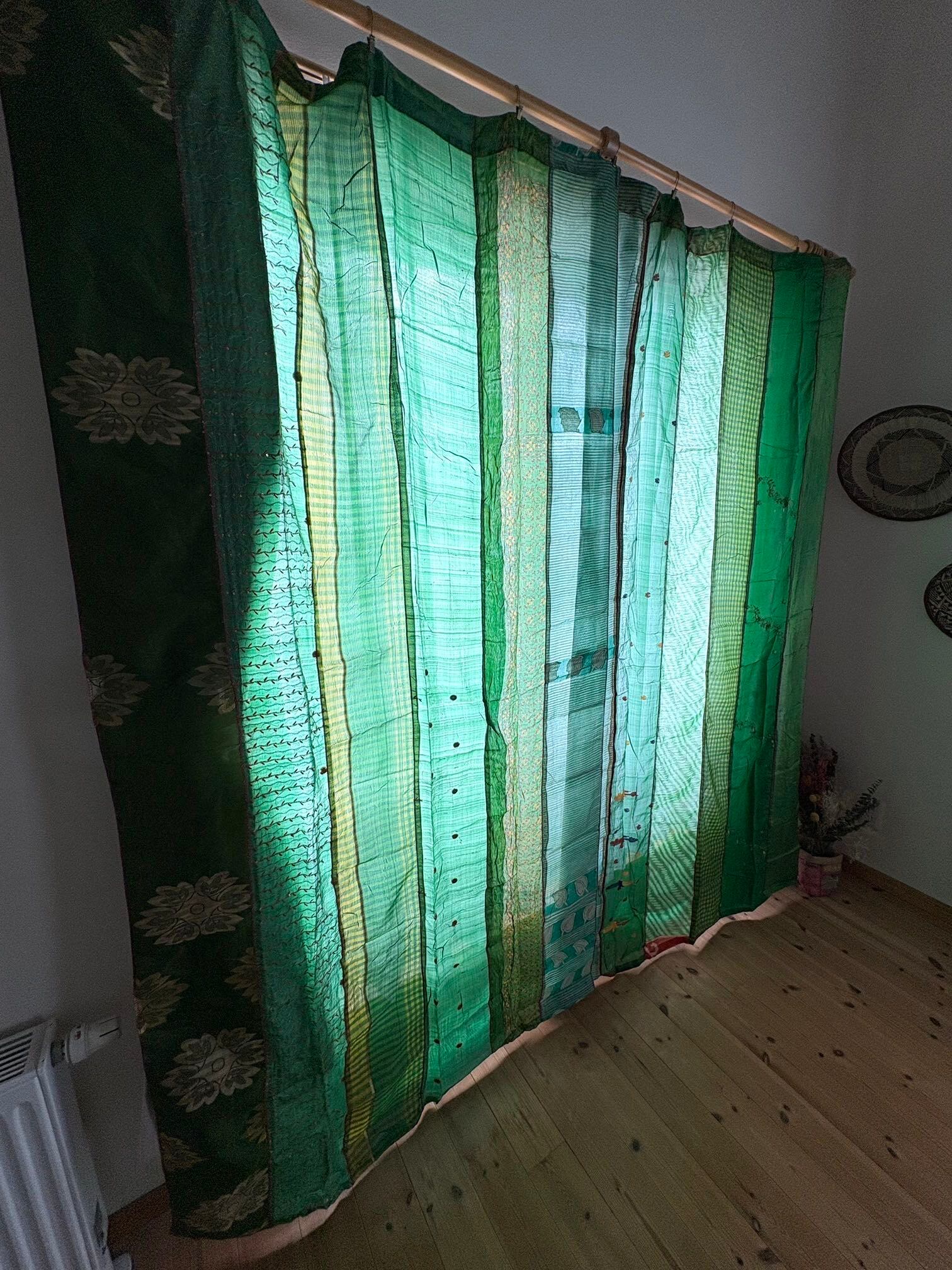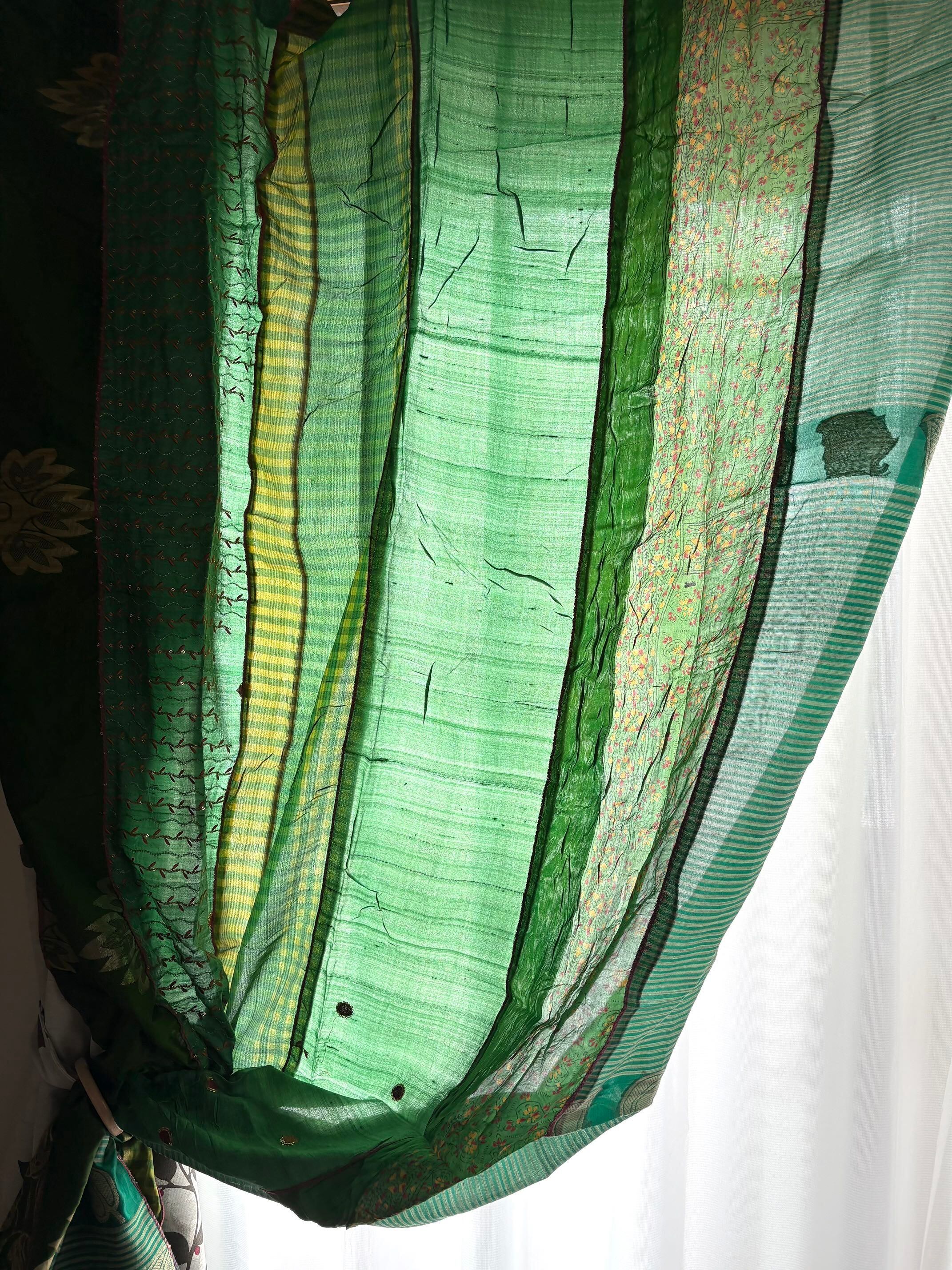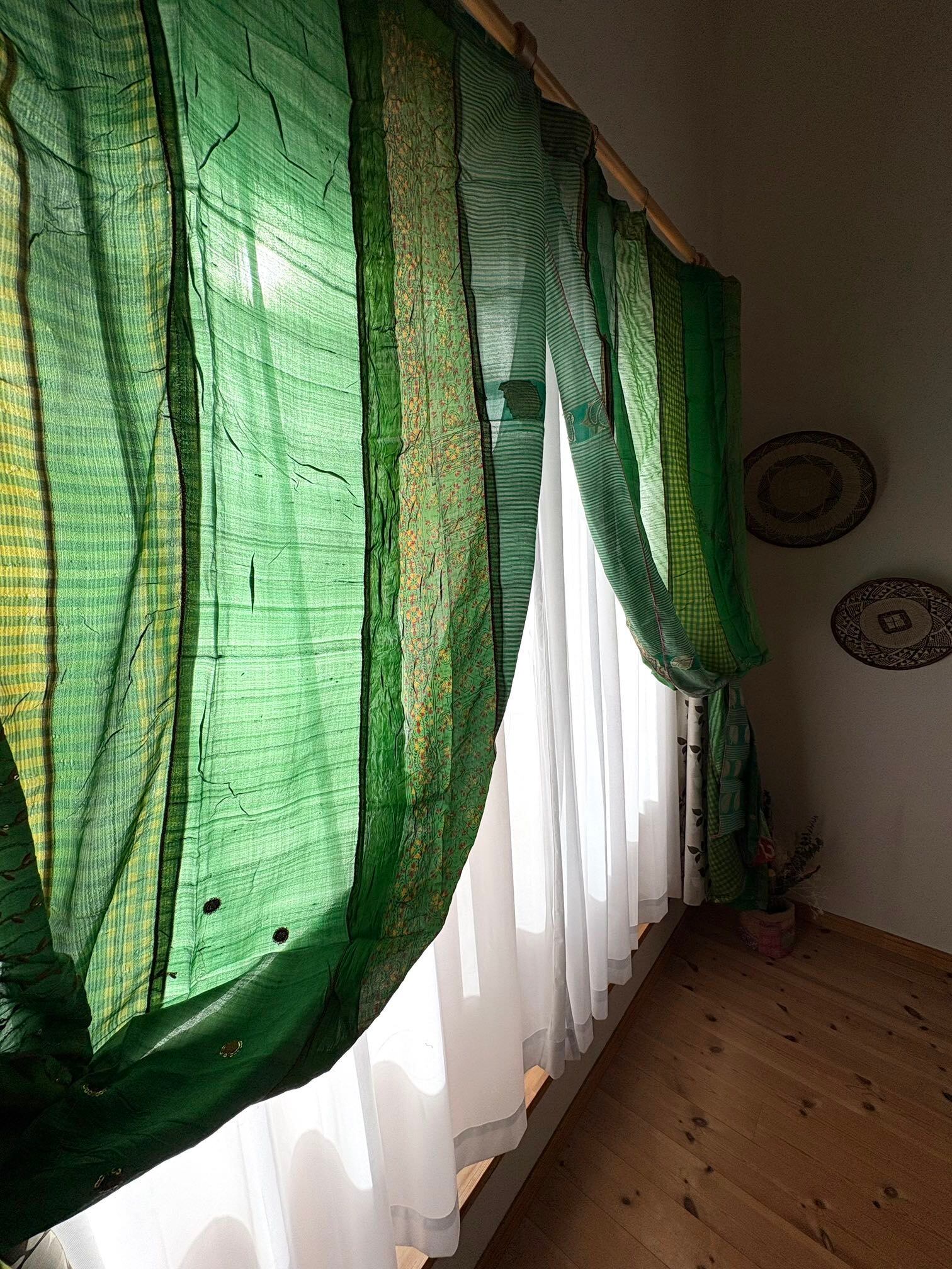 ヴィンテージサリーで出来たパッチワークシルクカーテン