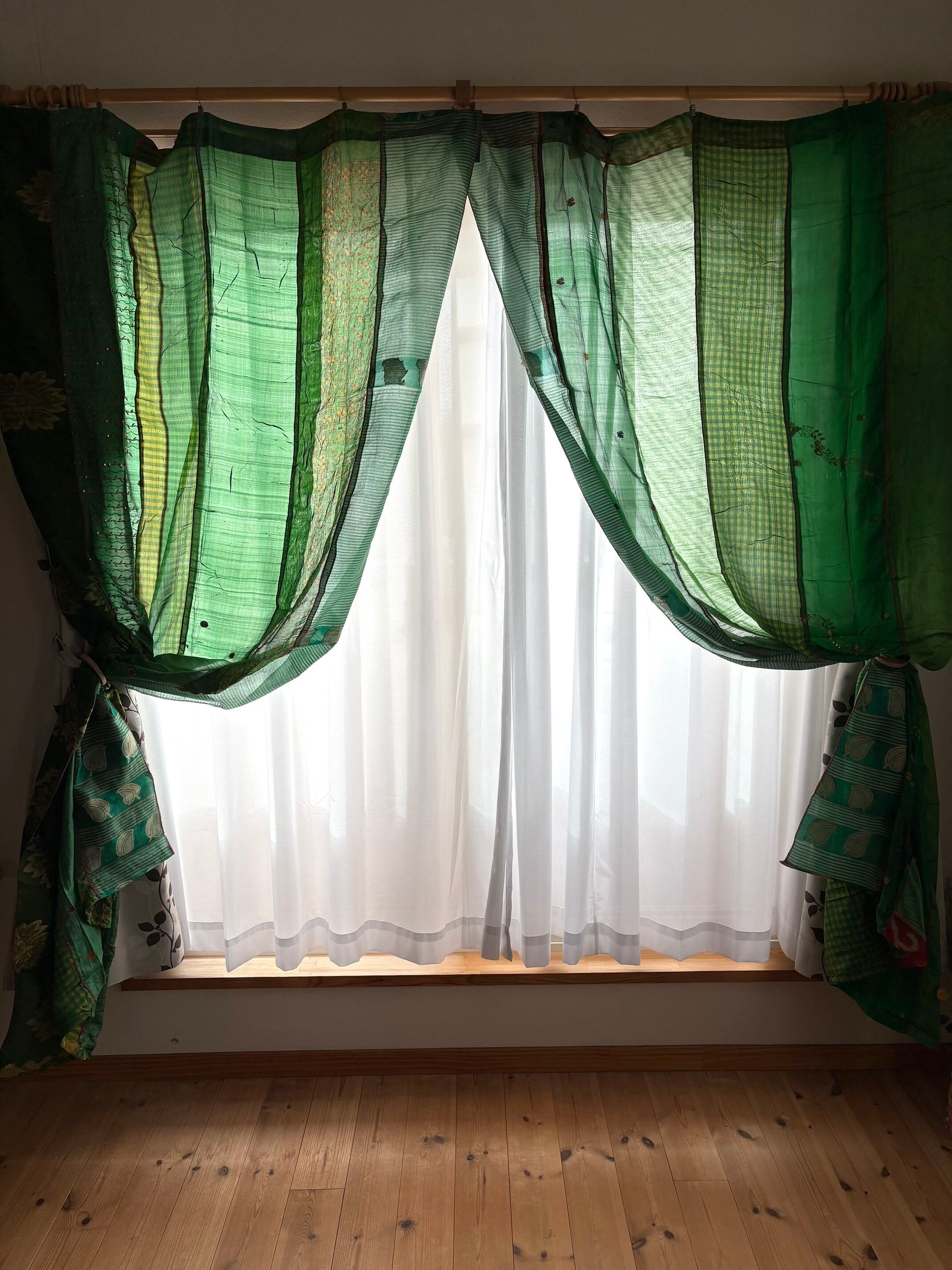 ※カーテンとしては新品未使用ですが、布はヴィンテージサリーを使っております。
