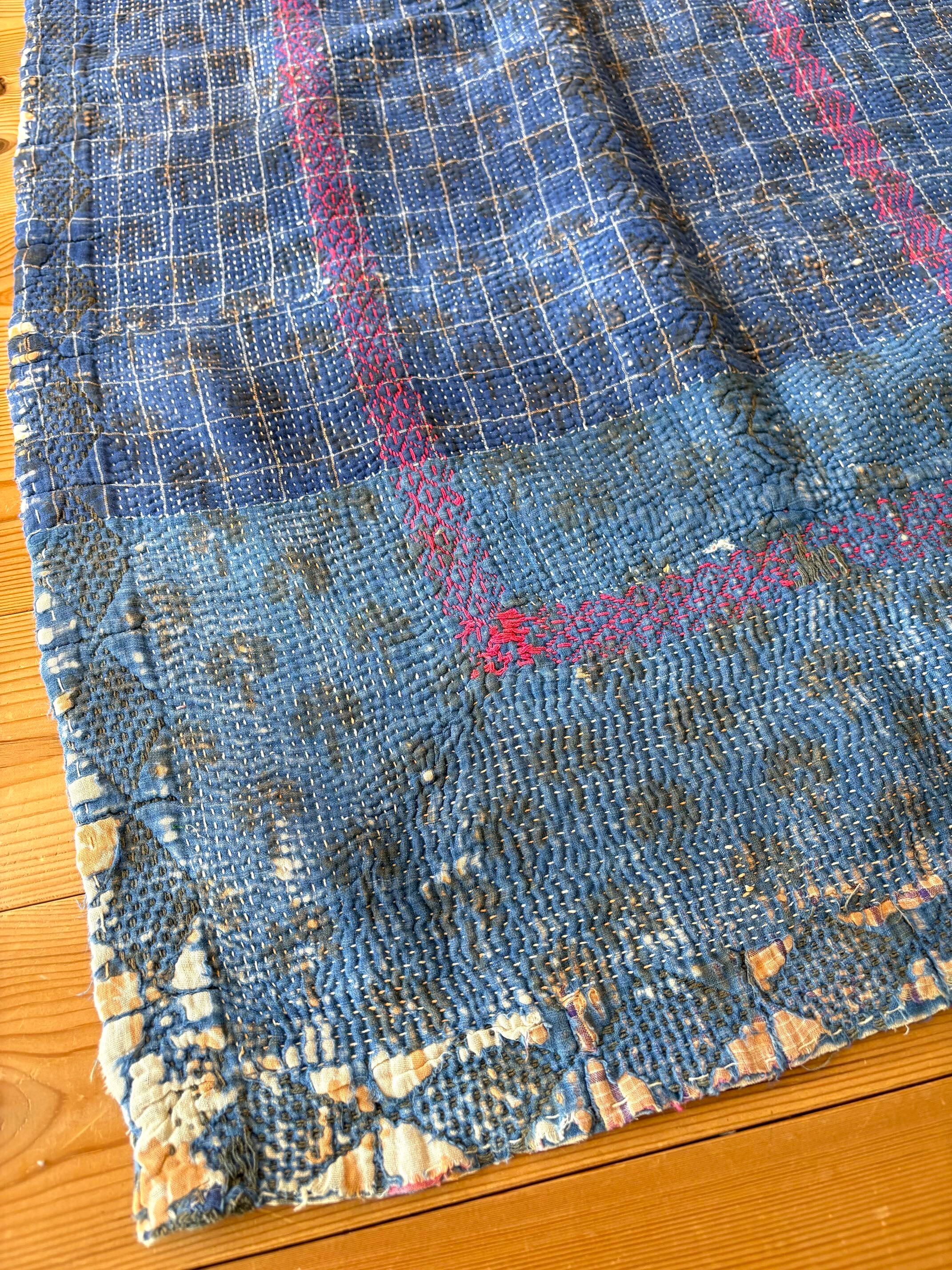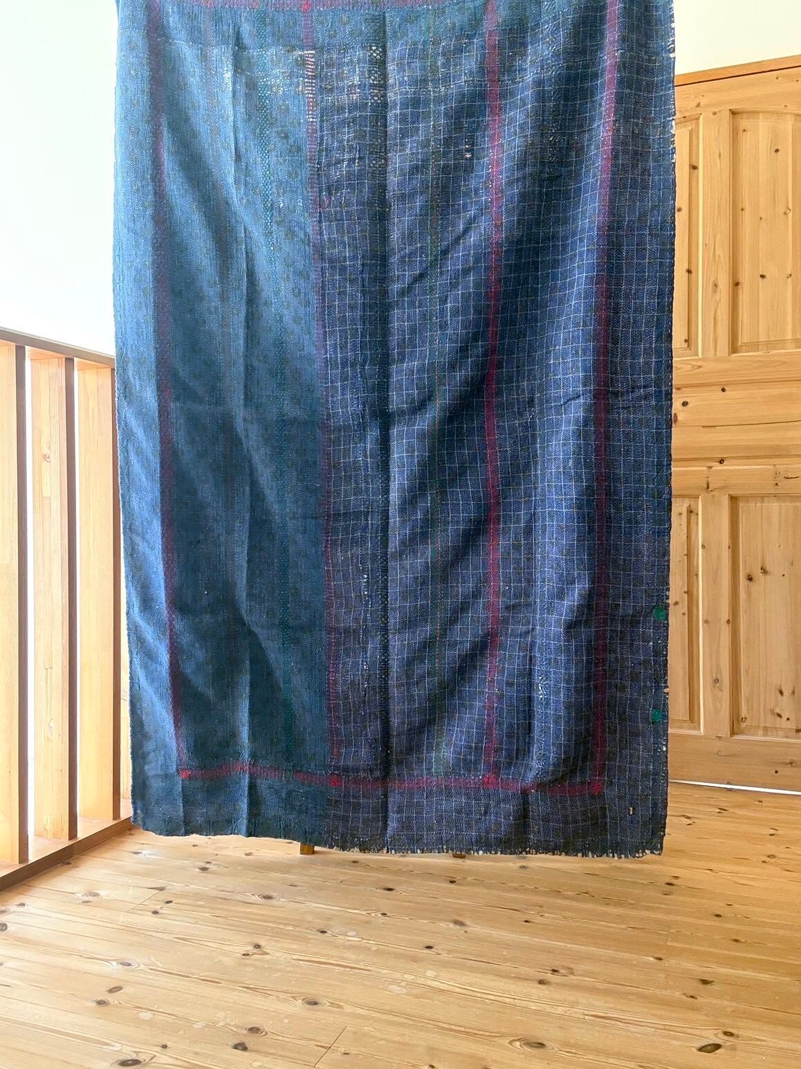 「これは絶対にお客様に届けたい」と感じた一枚。インドの風景や、作り手さんの手の動きが目に浮かぶような、味わい深いキルトです。