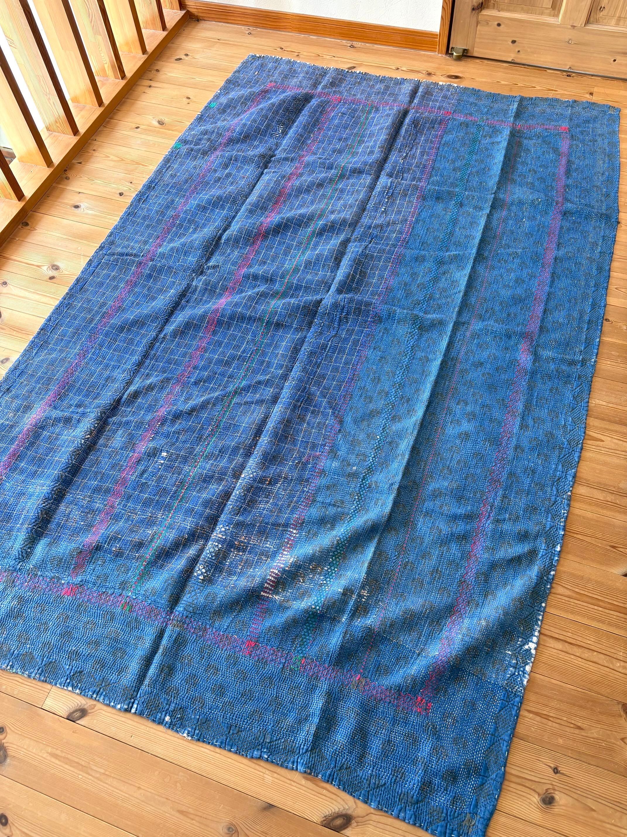 【ブロックプリントカンタ刺繍キルト】