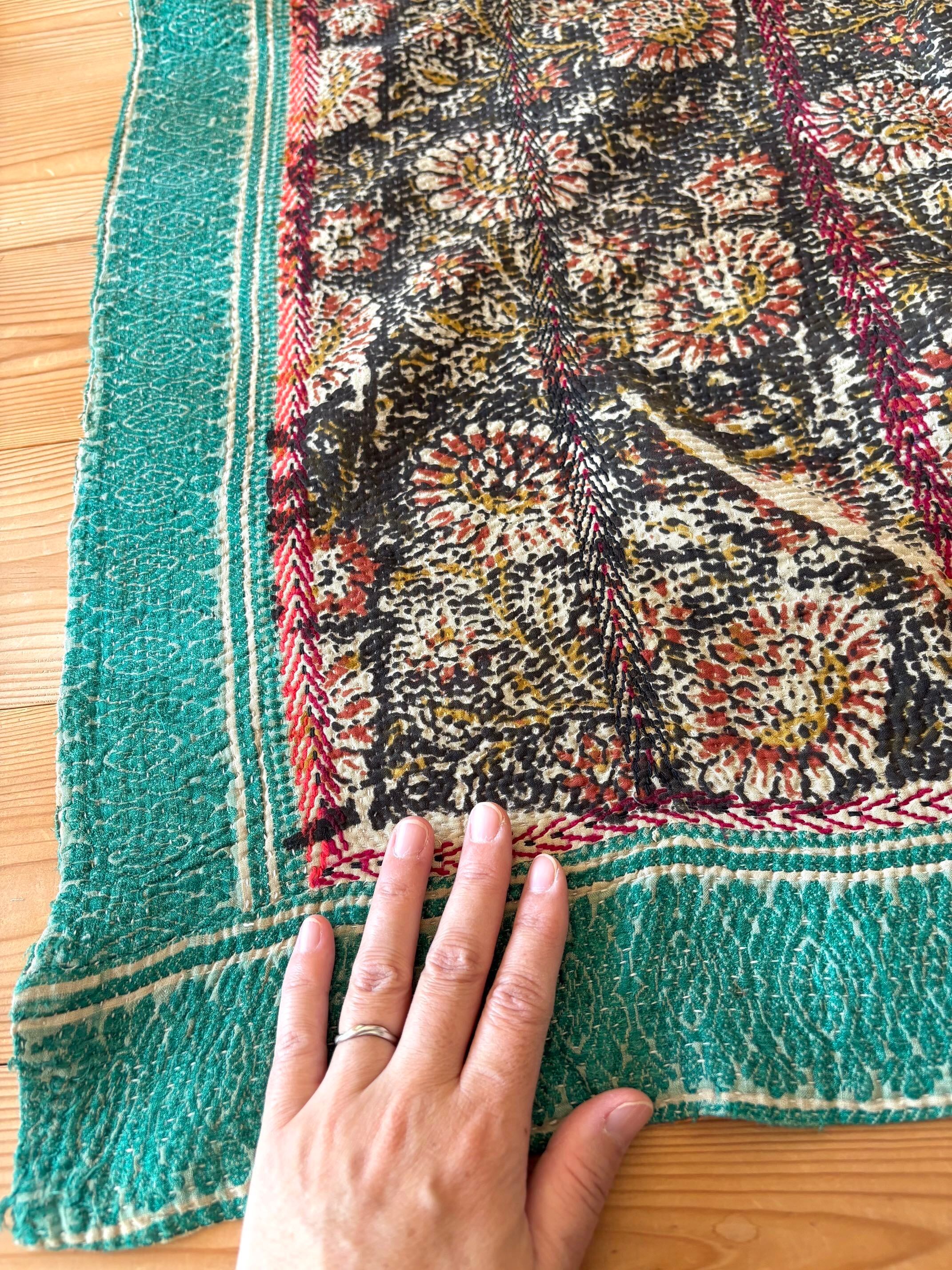 【ブロックプリントカンタ刺繍キルト】