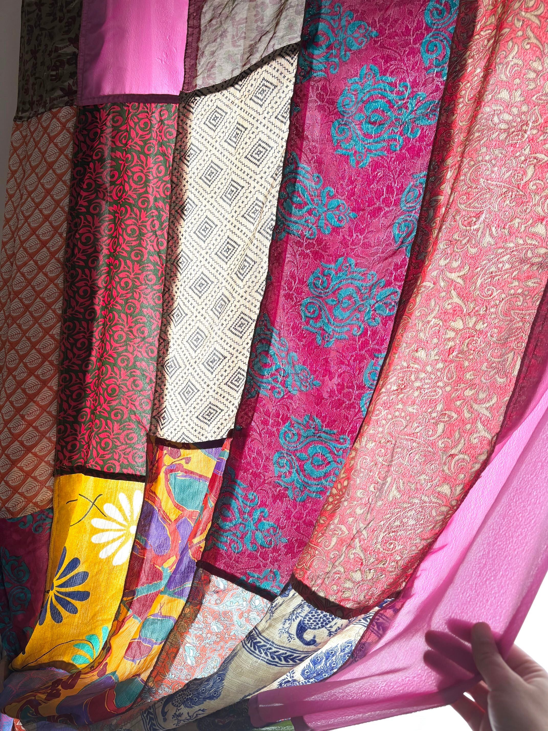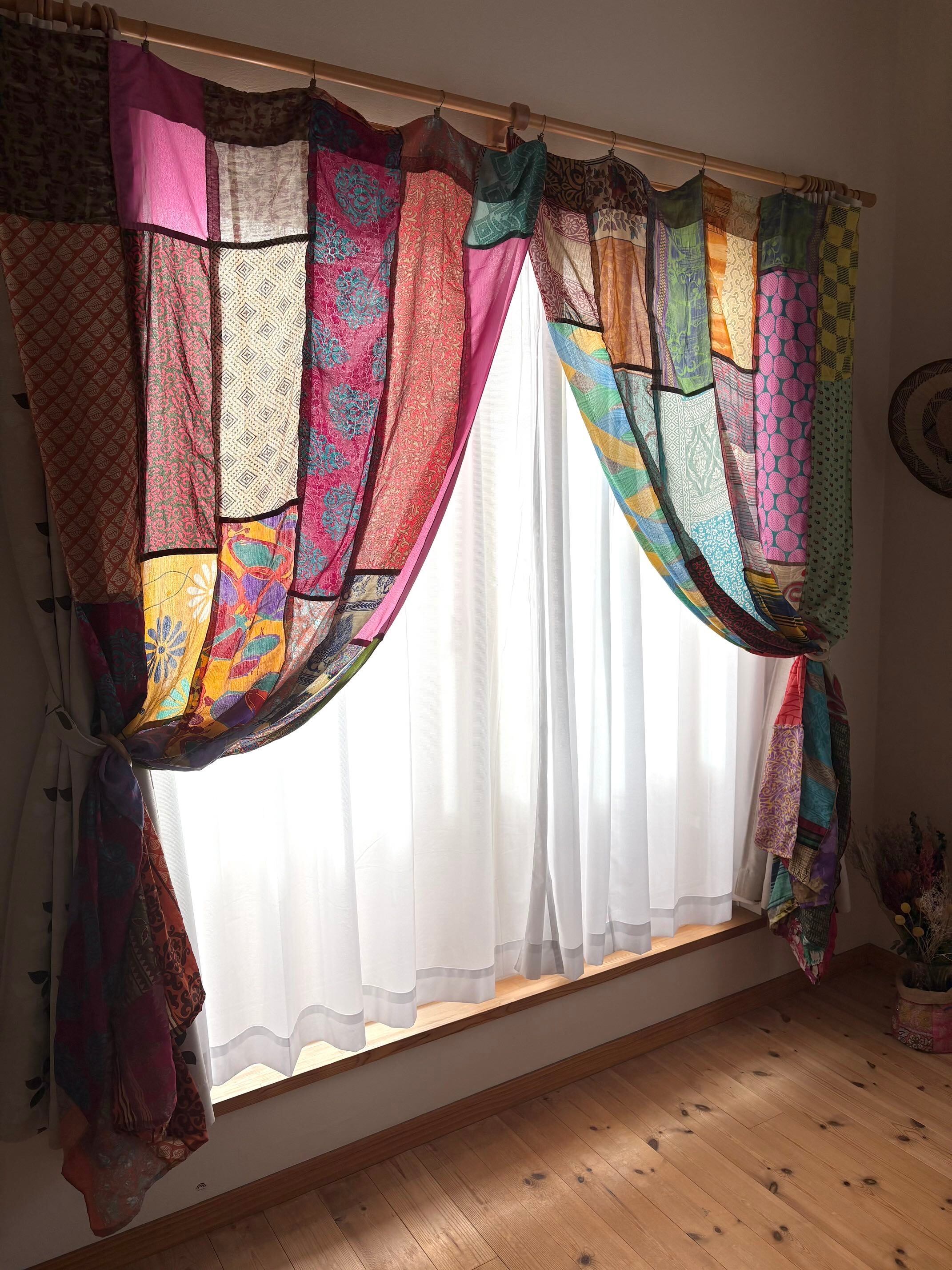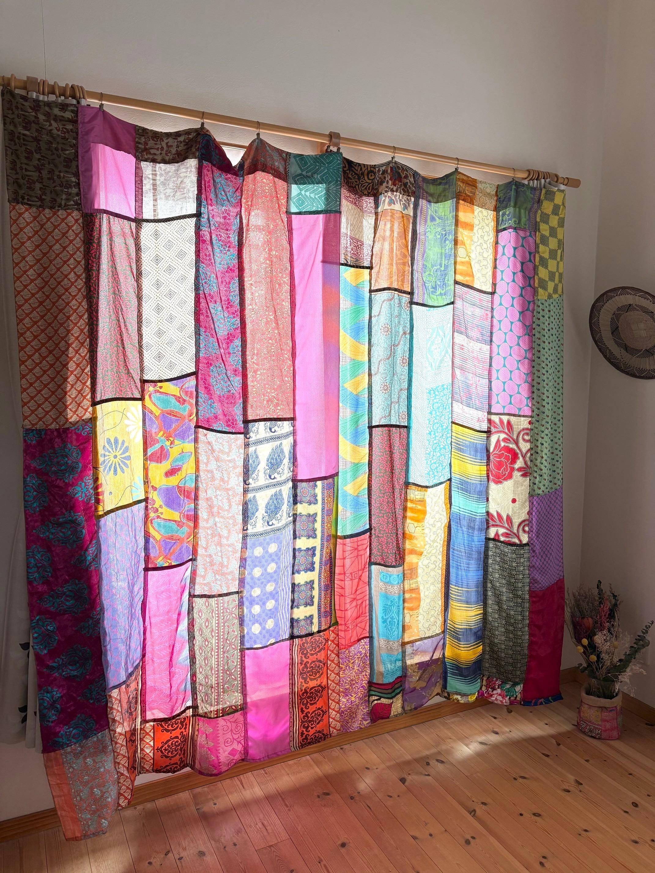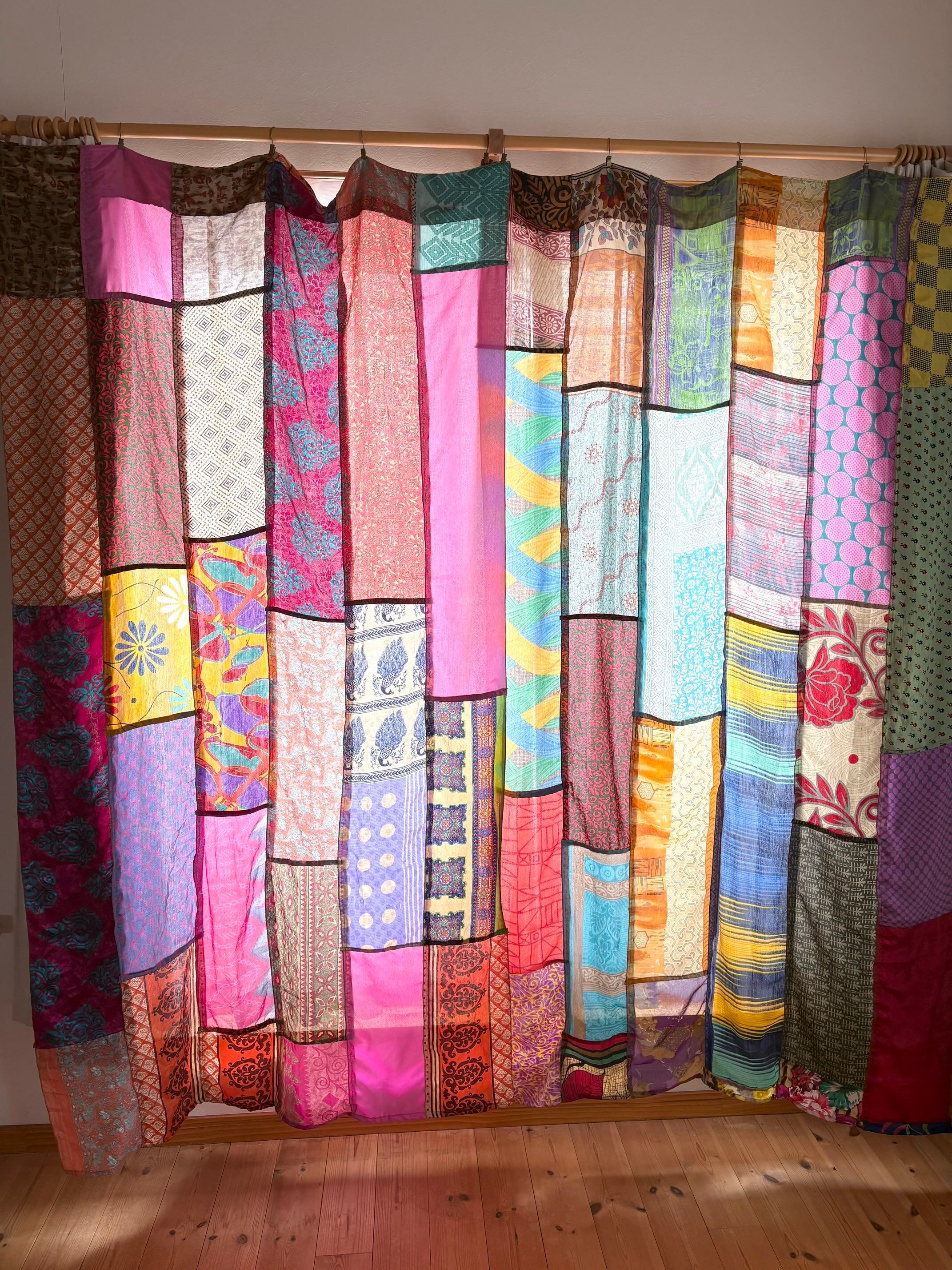 ヴィンテージサリーで出来たパッチワークシルクカーテン