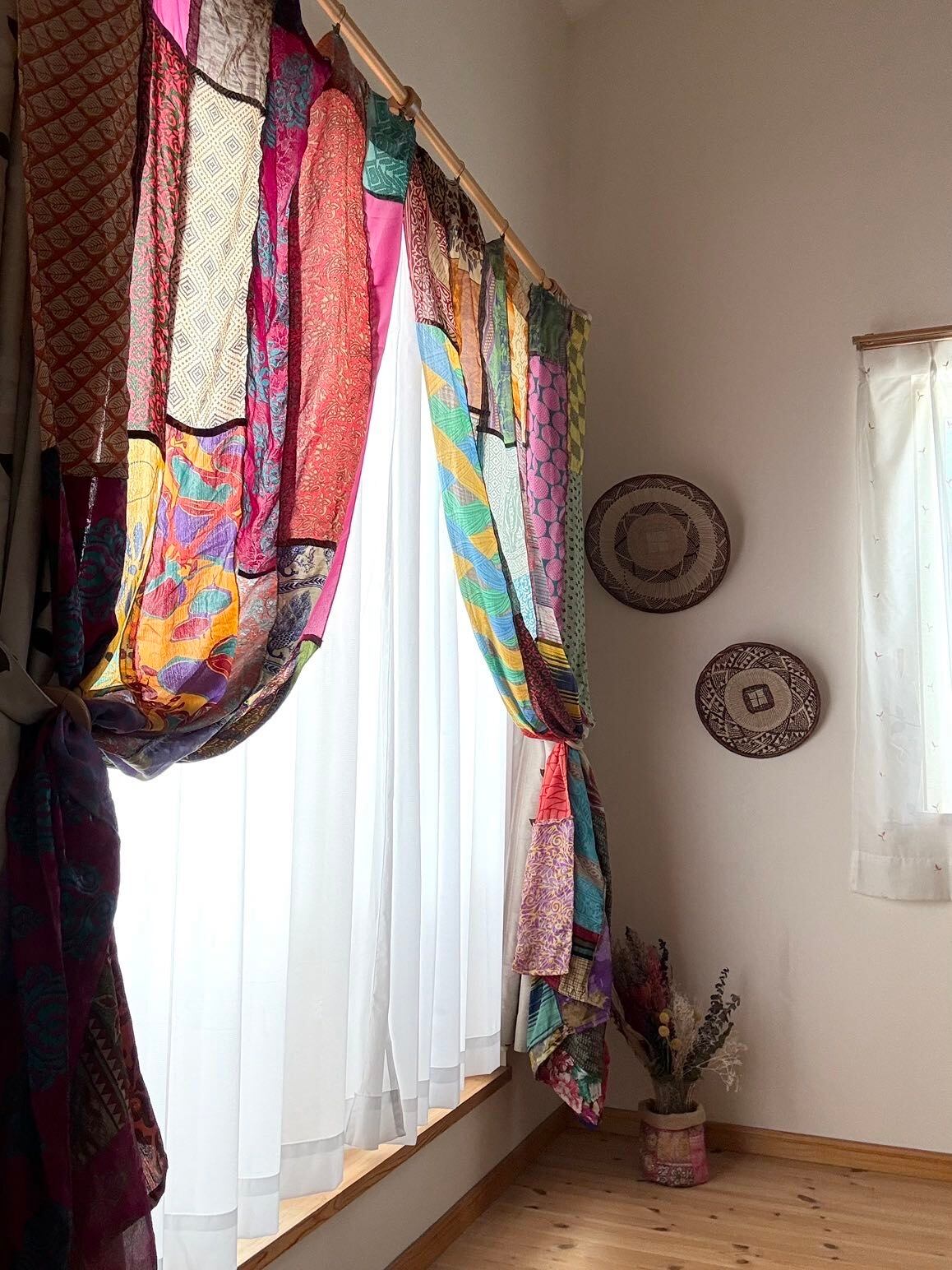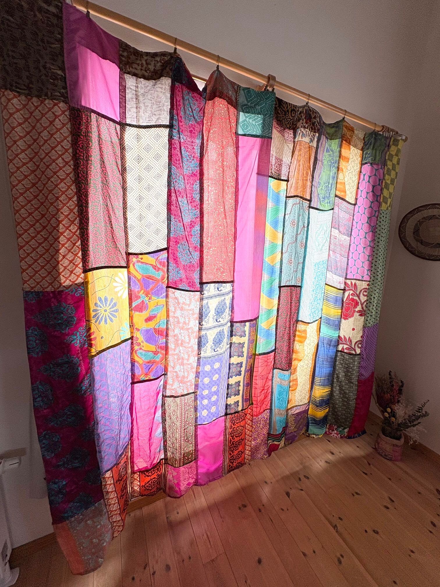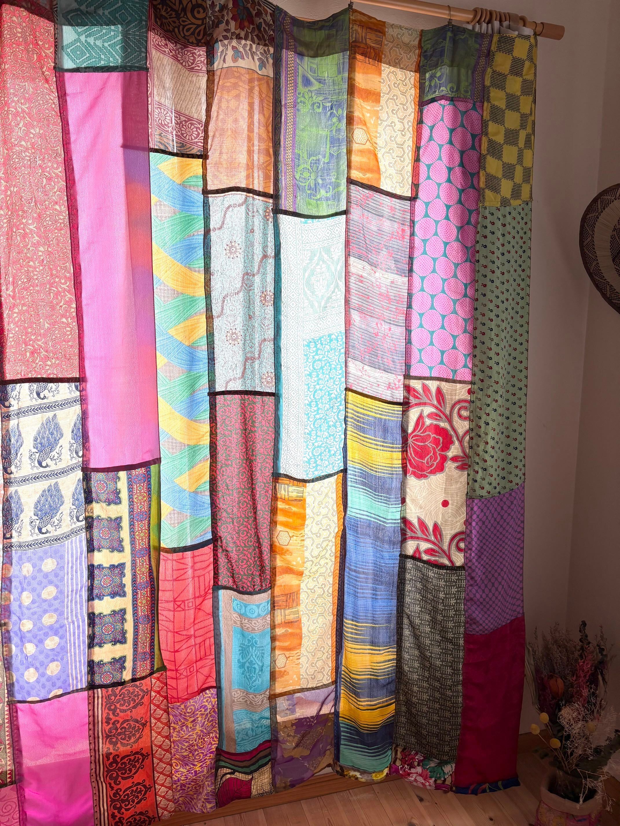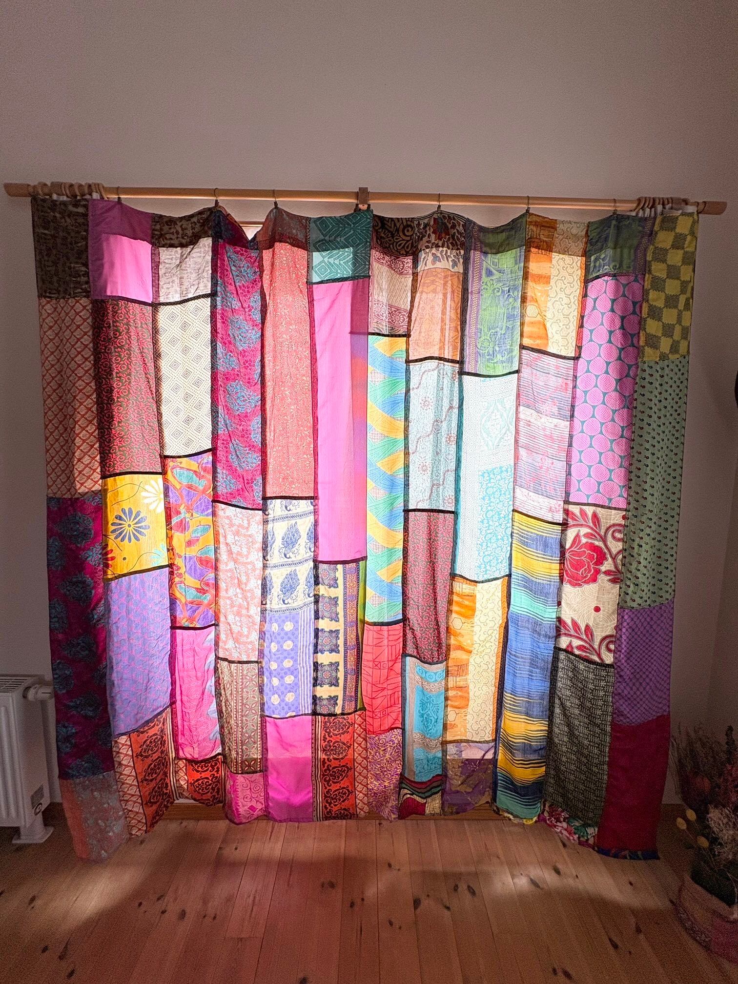 ヴィンテージサリーで出来たパッチワークシルクカーテン