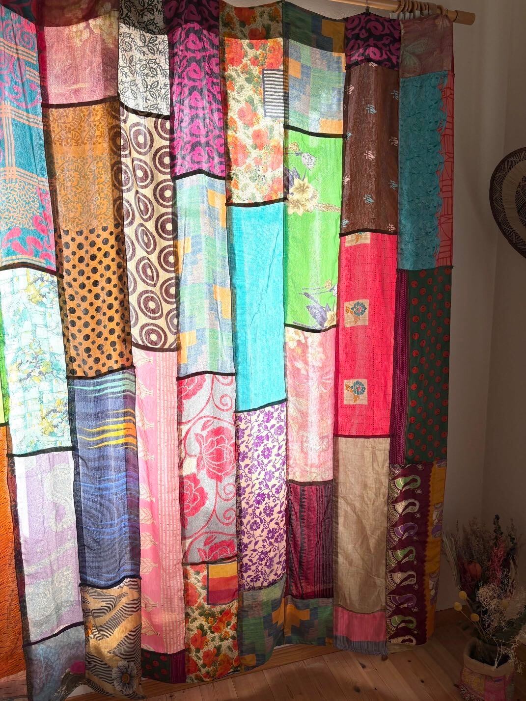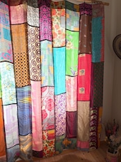 ヴィンテージサリーで出来たパッチワークシルクカーテン