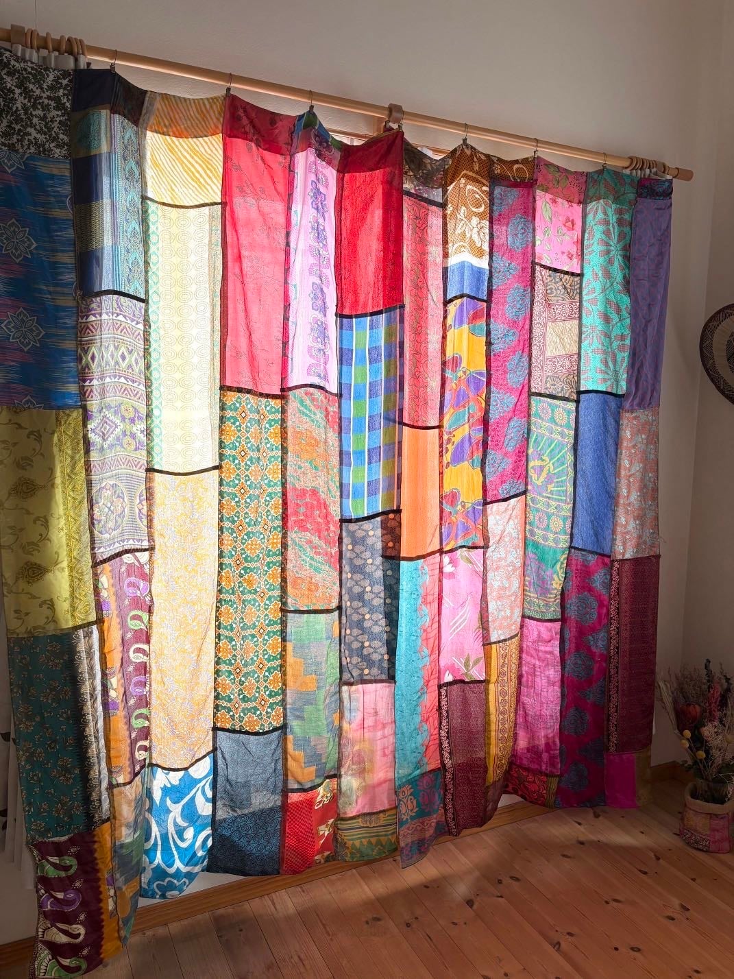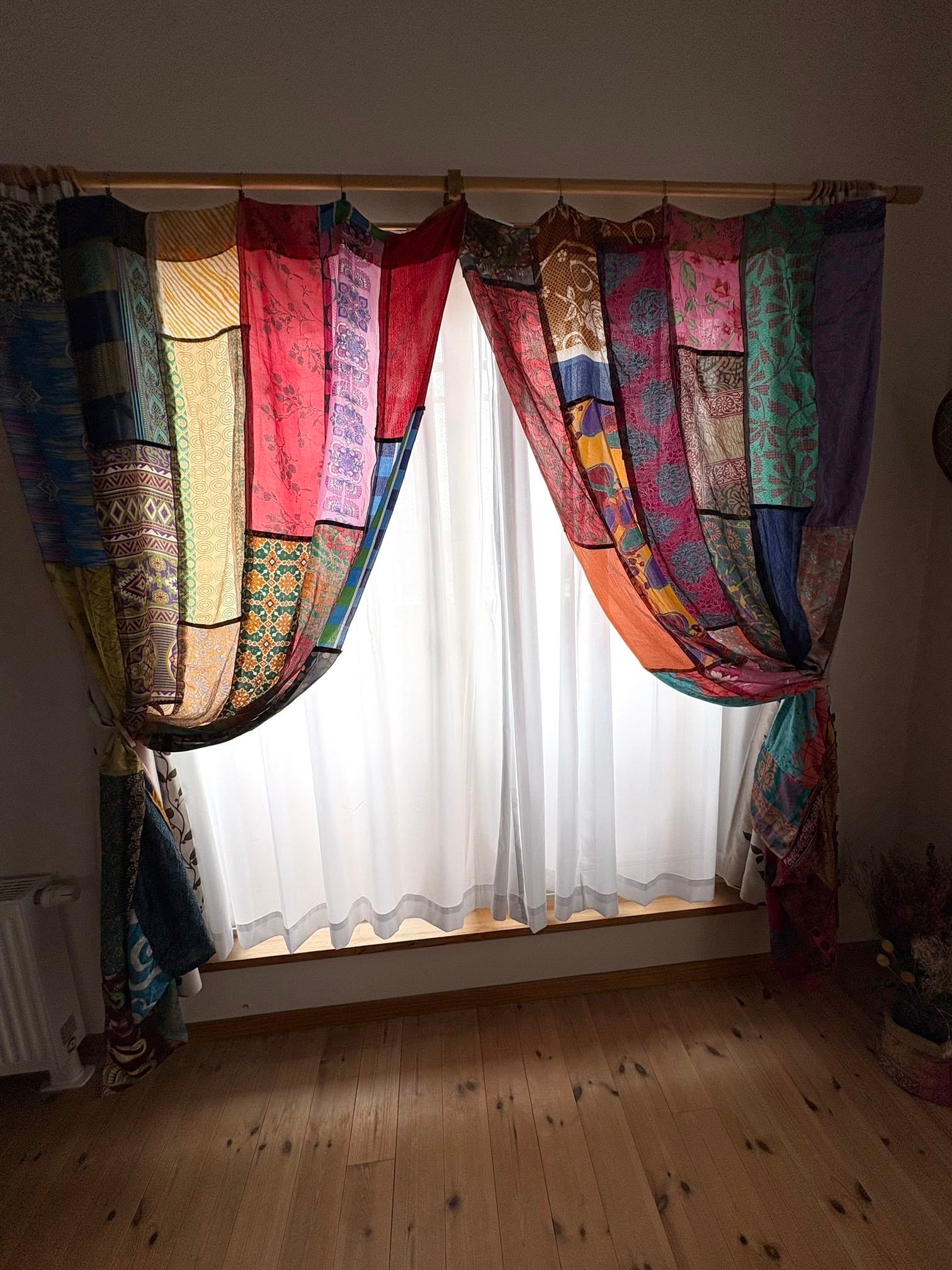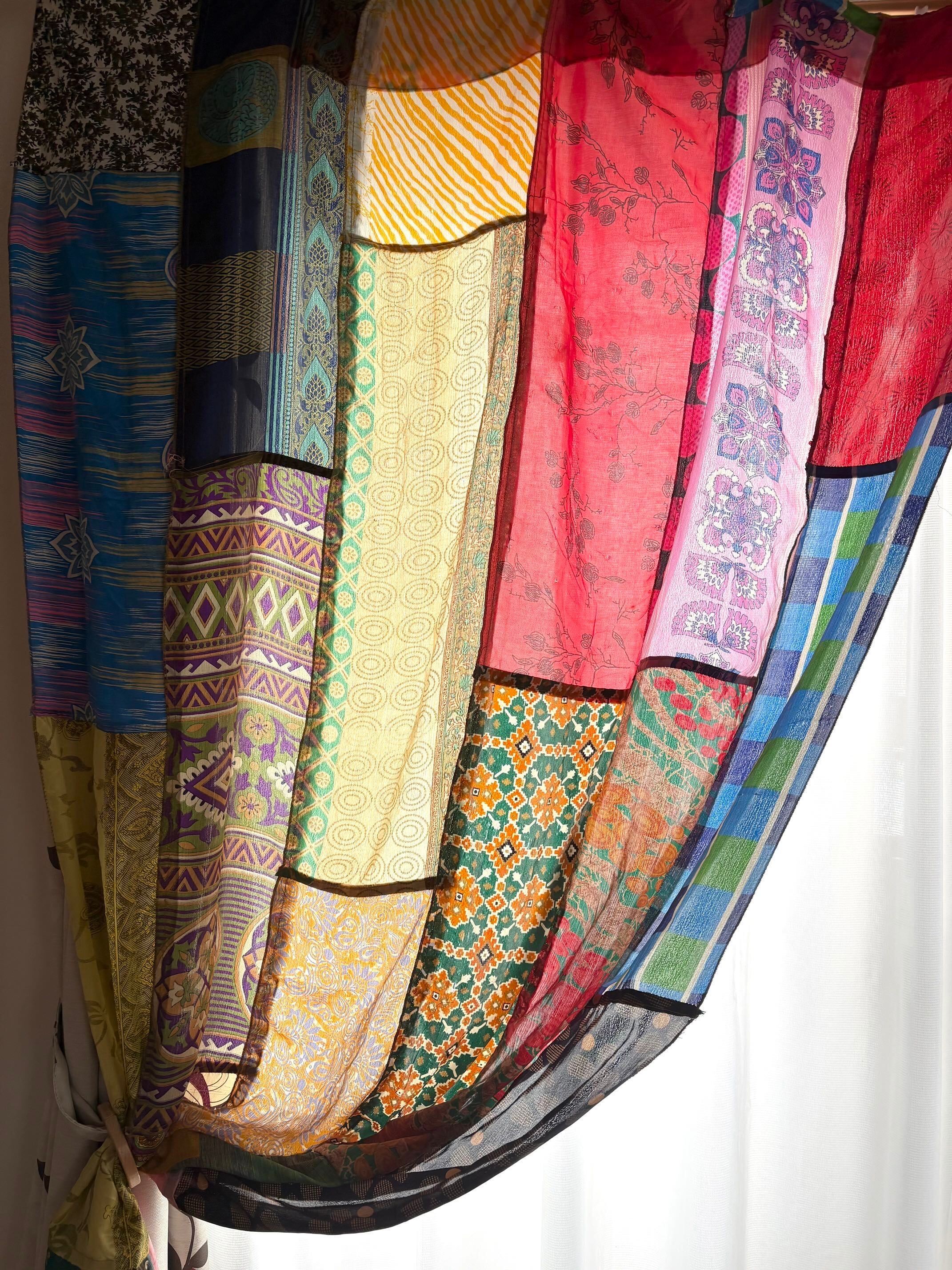 ヴィンテージサリーで出来たパッチワークシルクカーテン