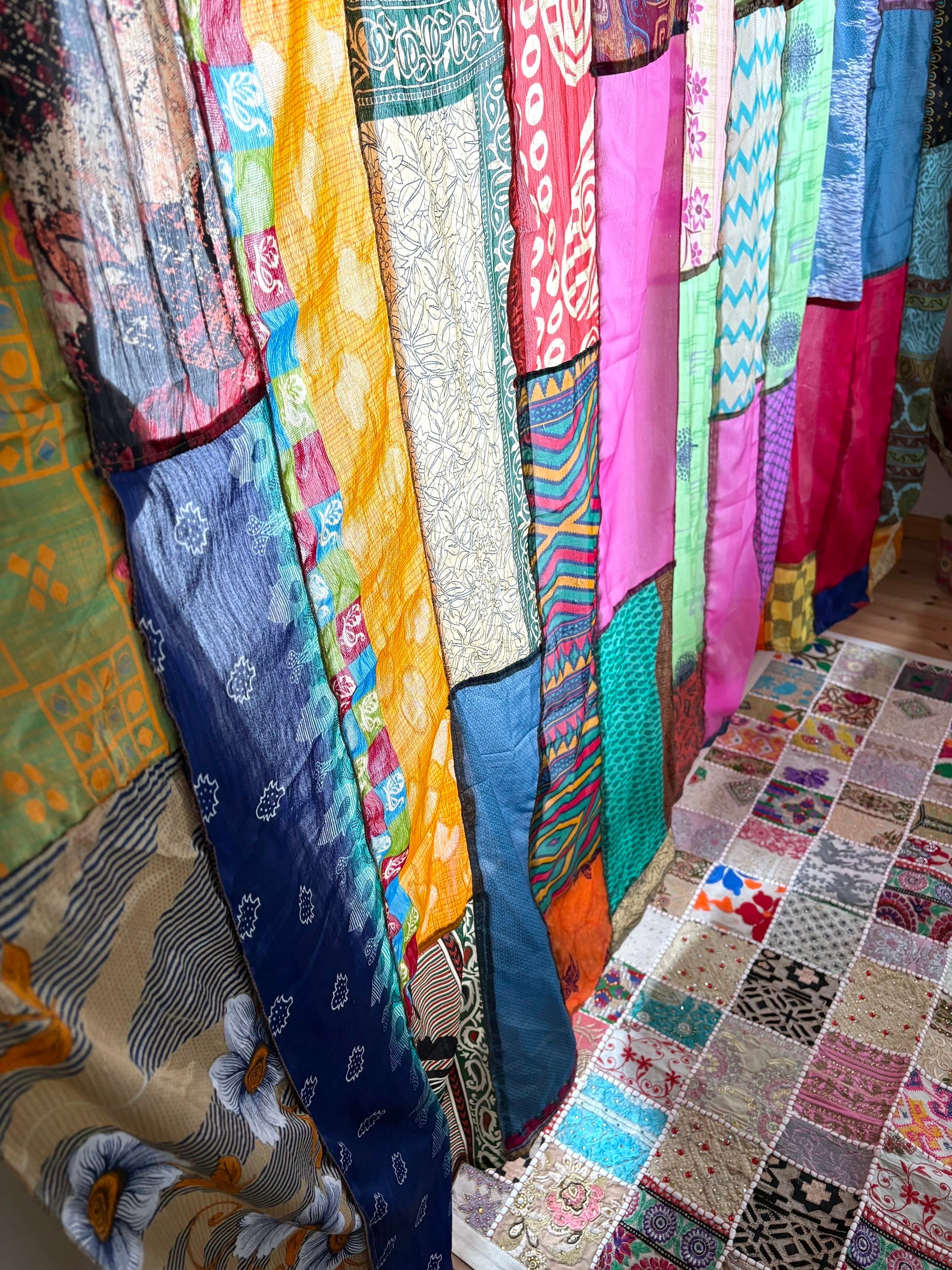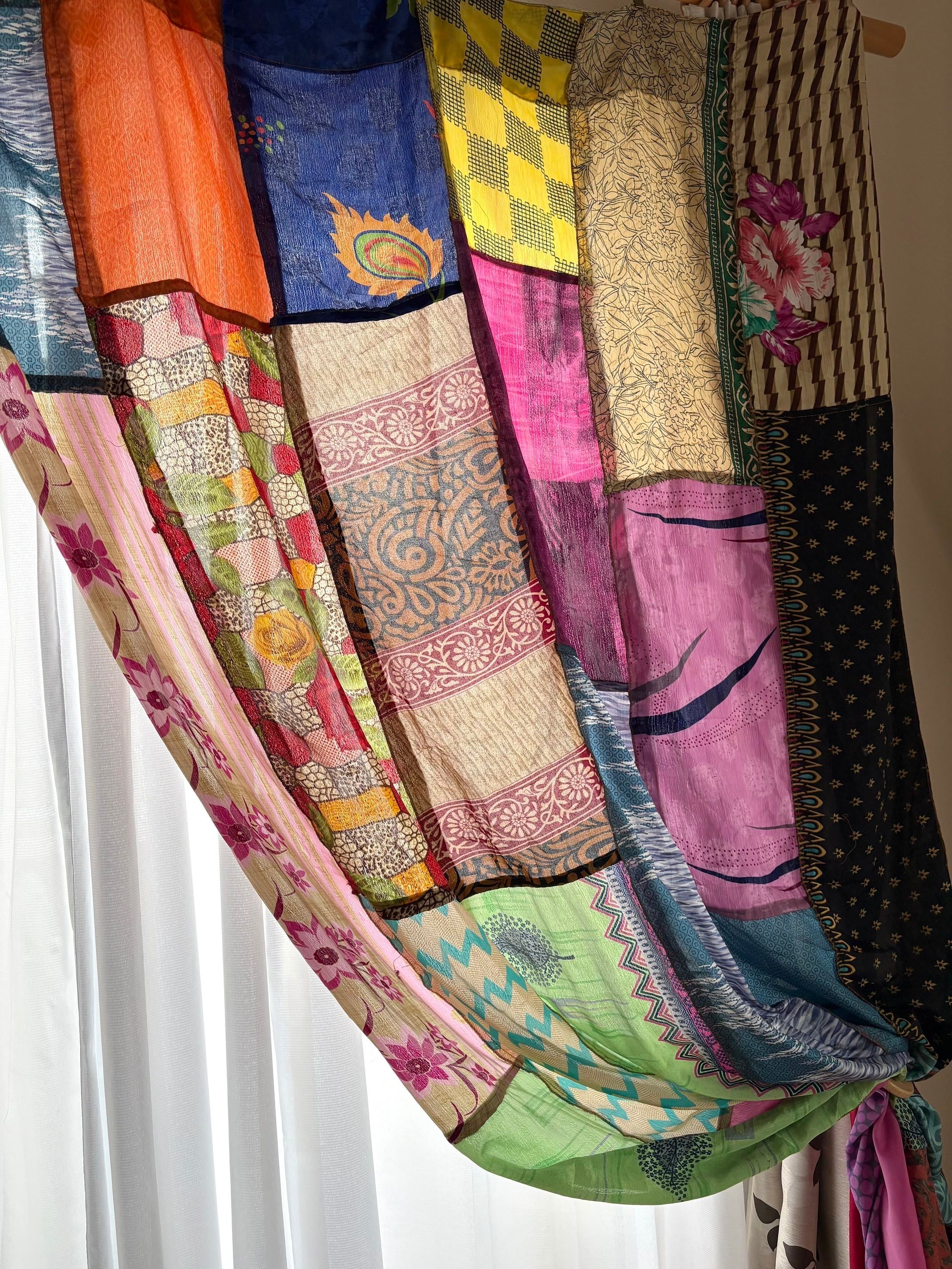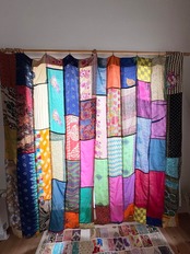 ヴィンテージサリーで出来たパッチワークシルクカーテン