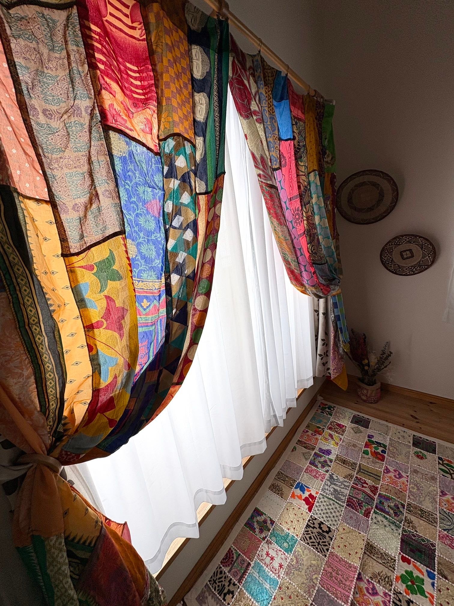ヴィンテージサリーで出来たパッチワークシルクカーテン