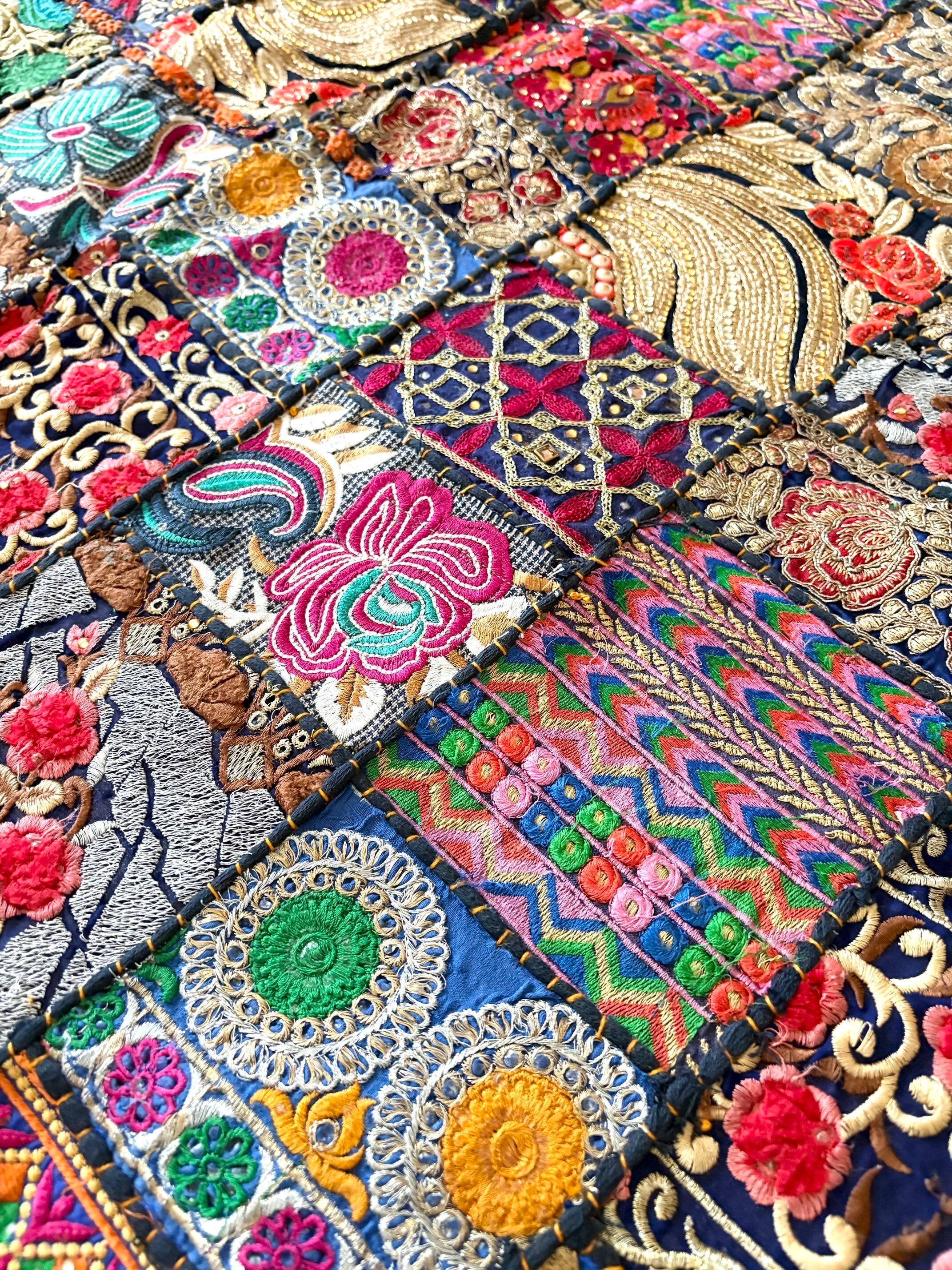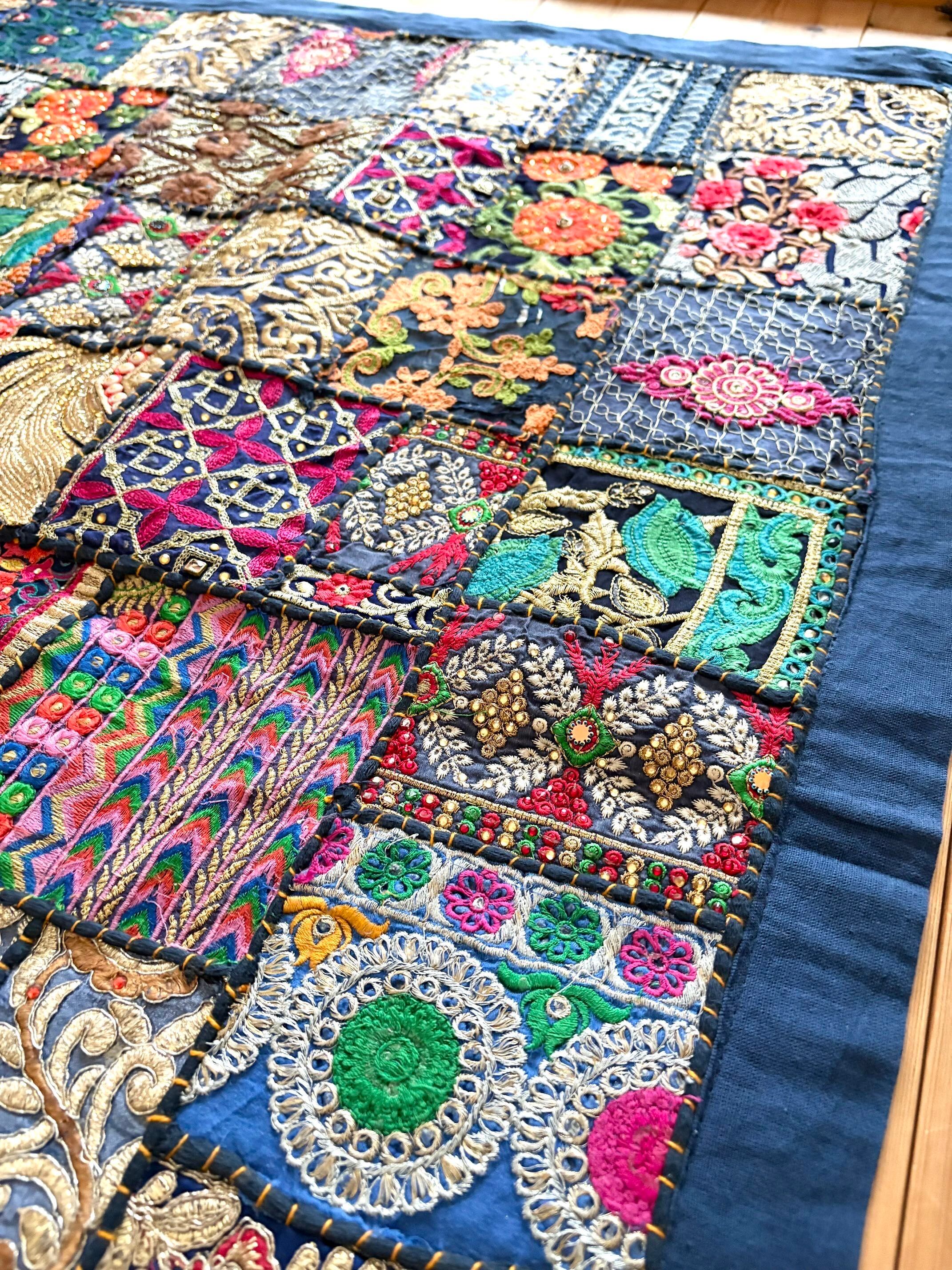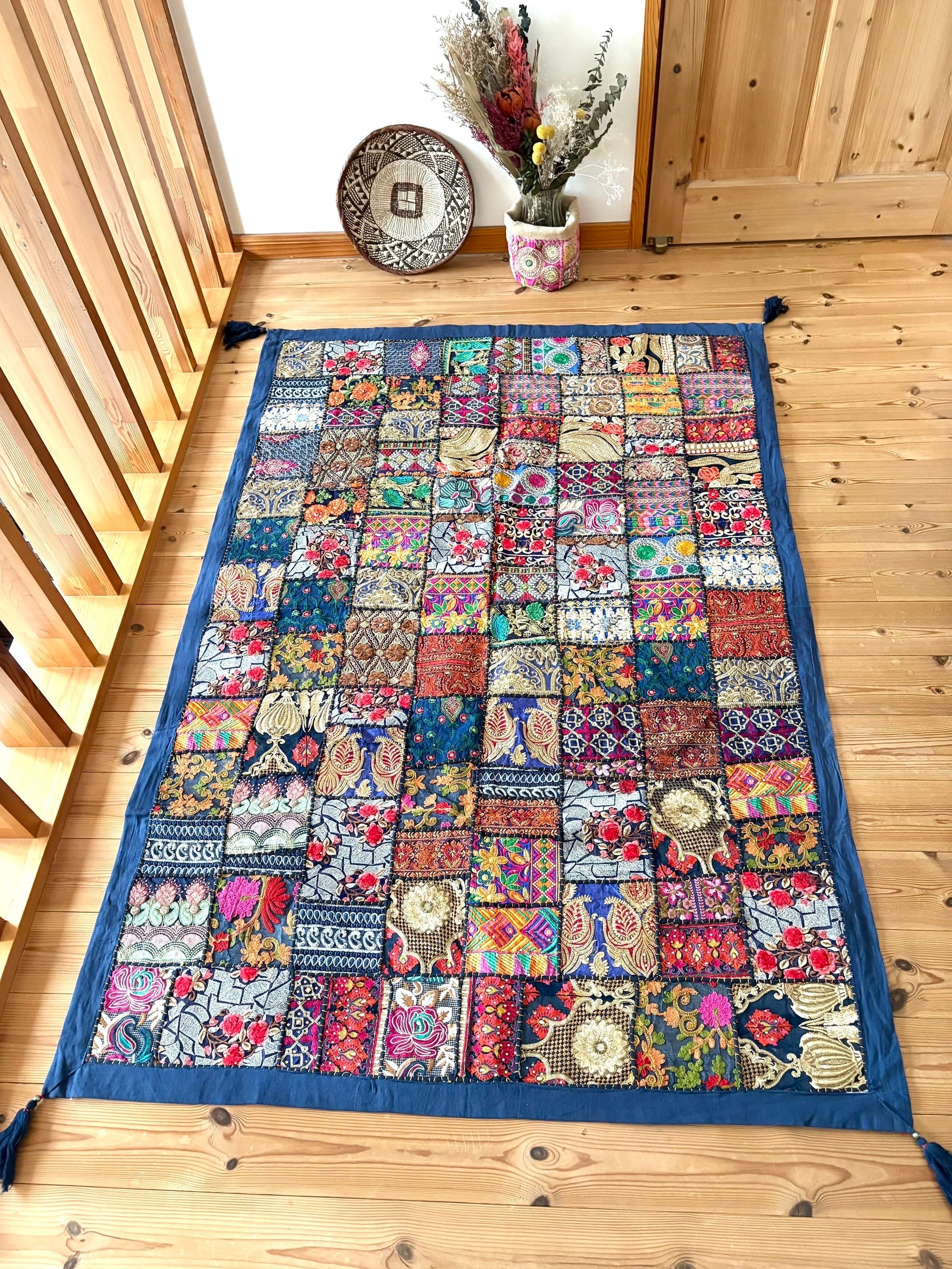 インディゴブルー/ザリ刺繍タペストリーラグ