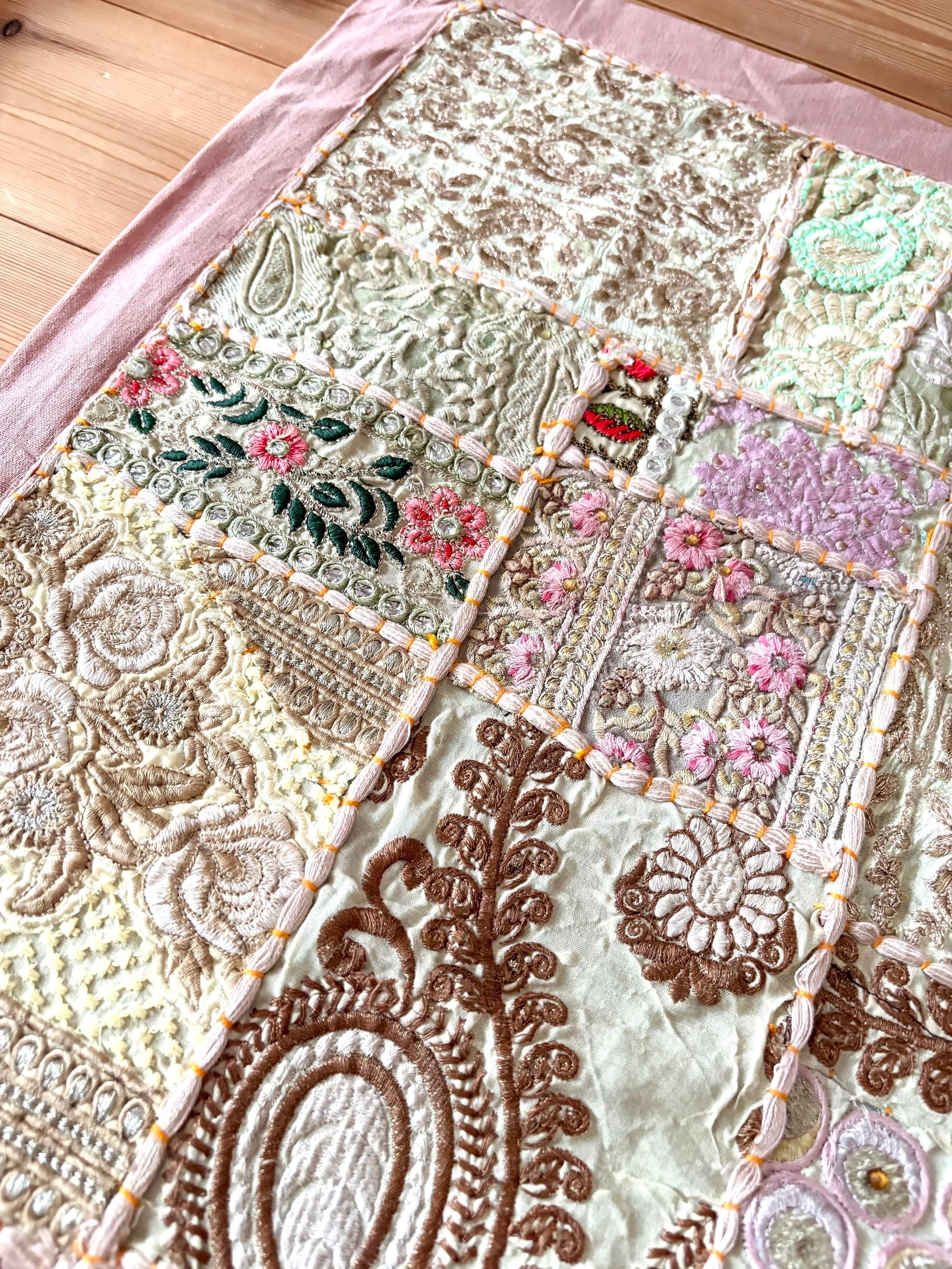 【ザリ刺繍タペストリーパッチワークラグ】