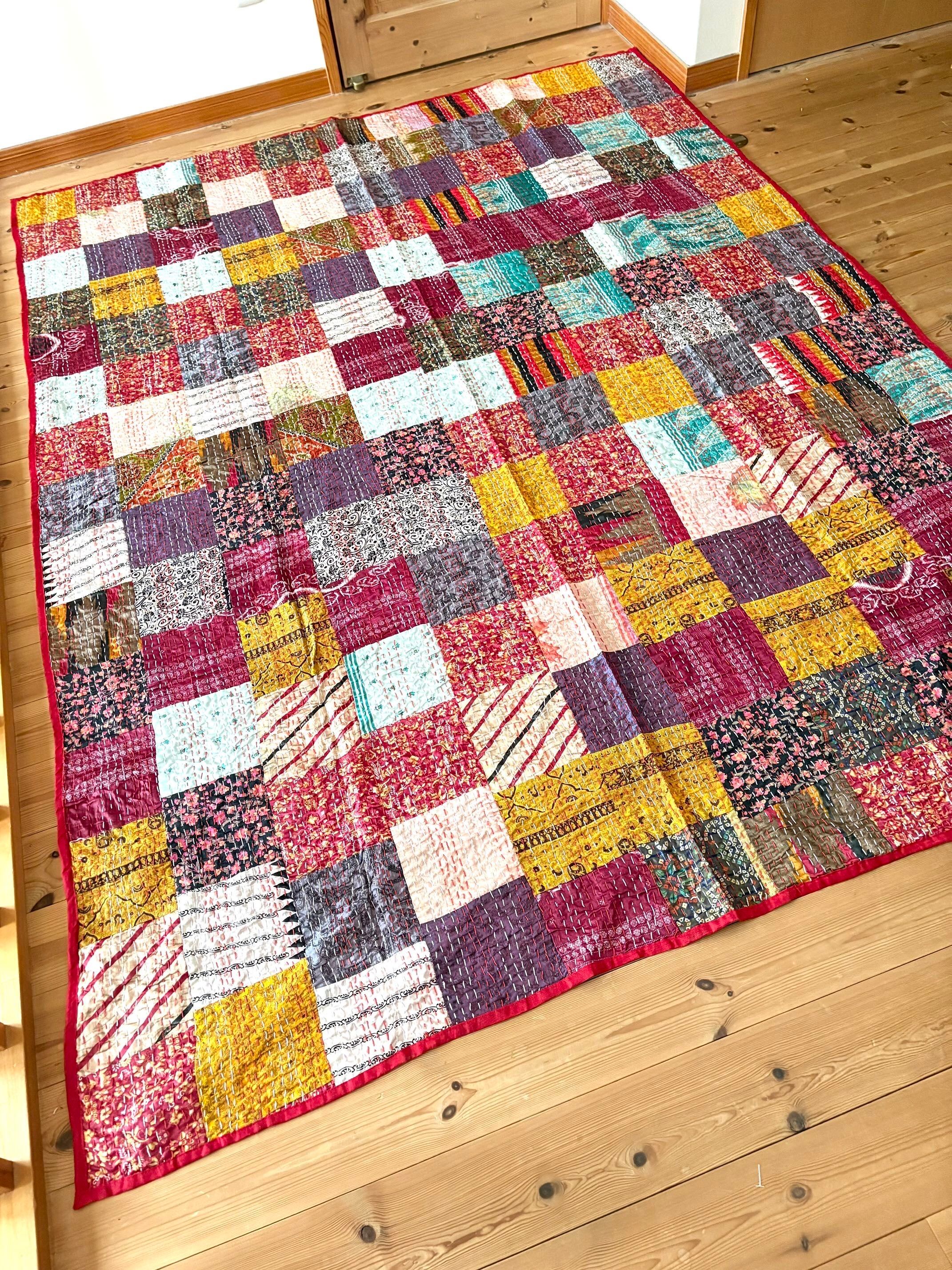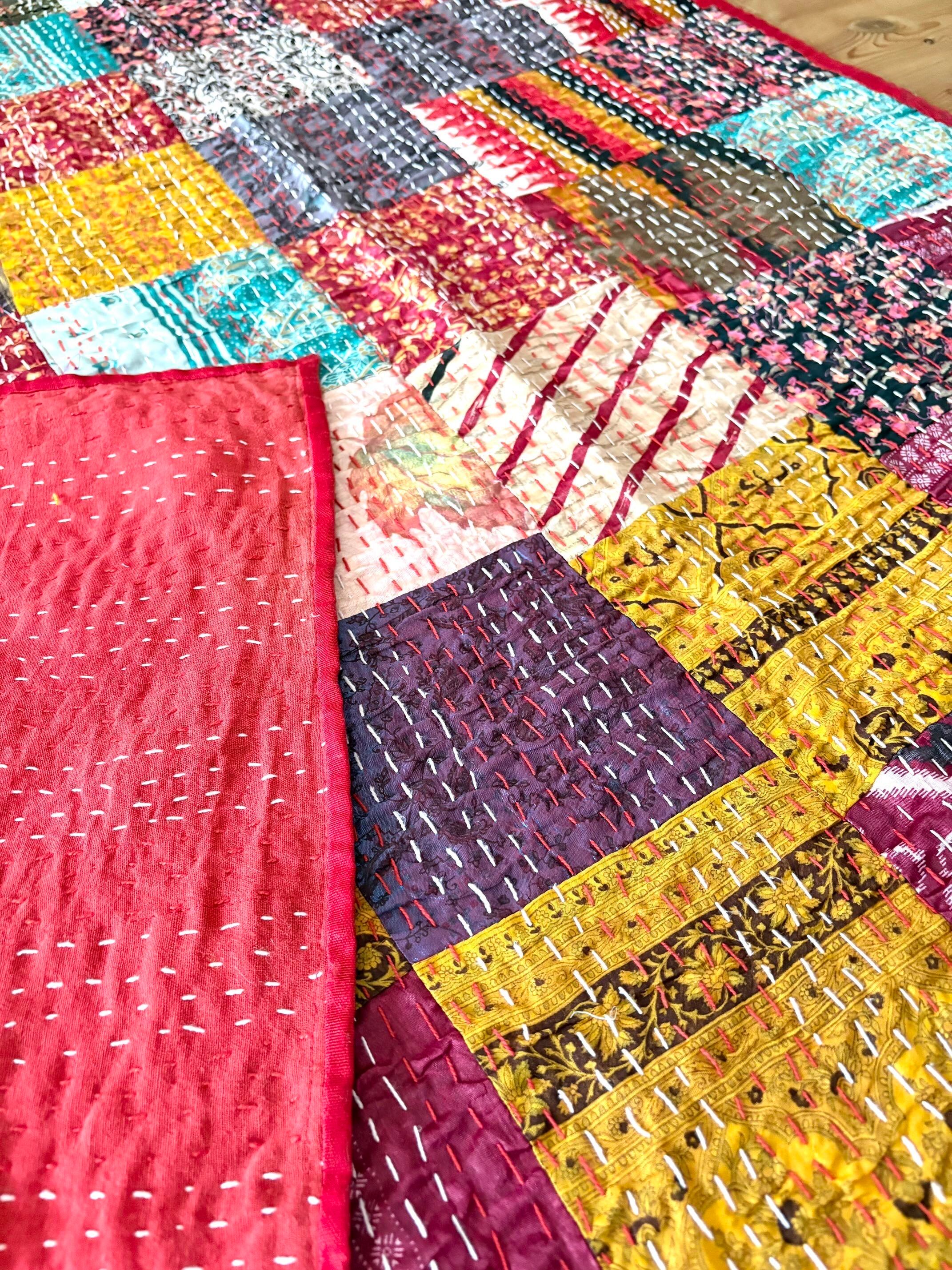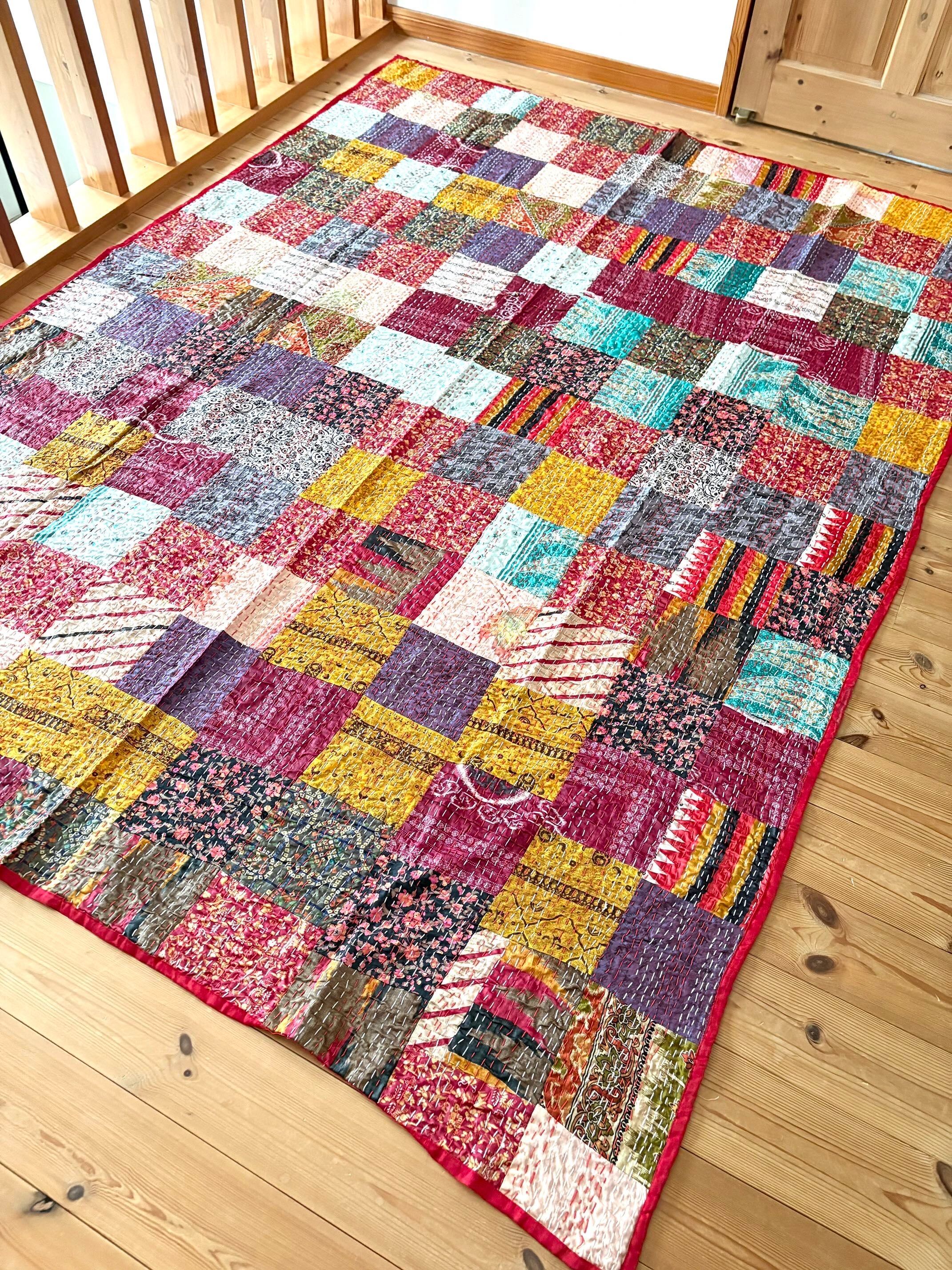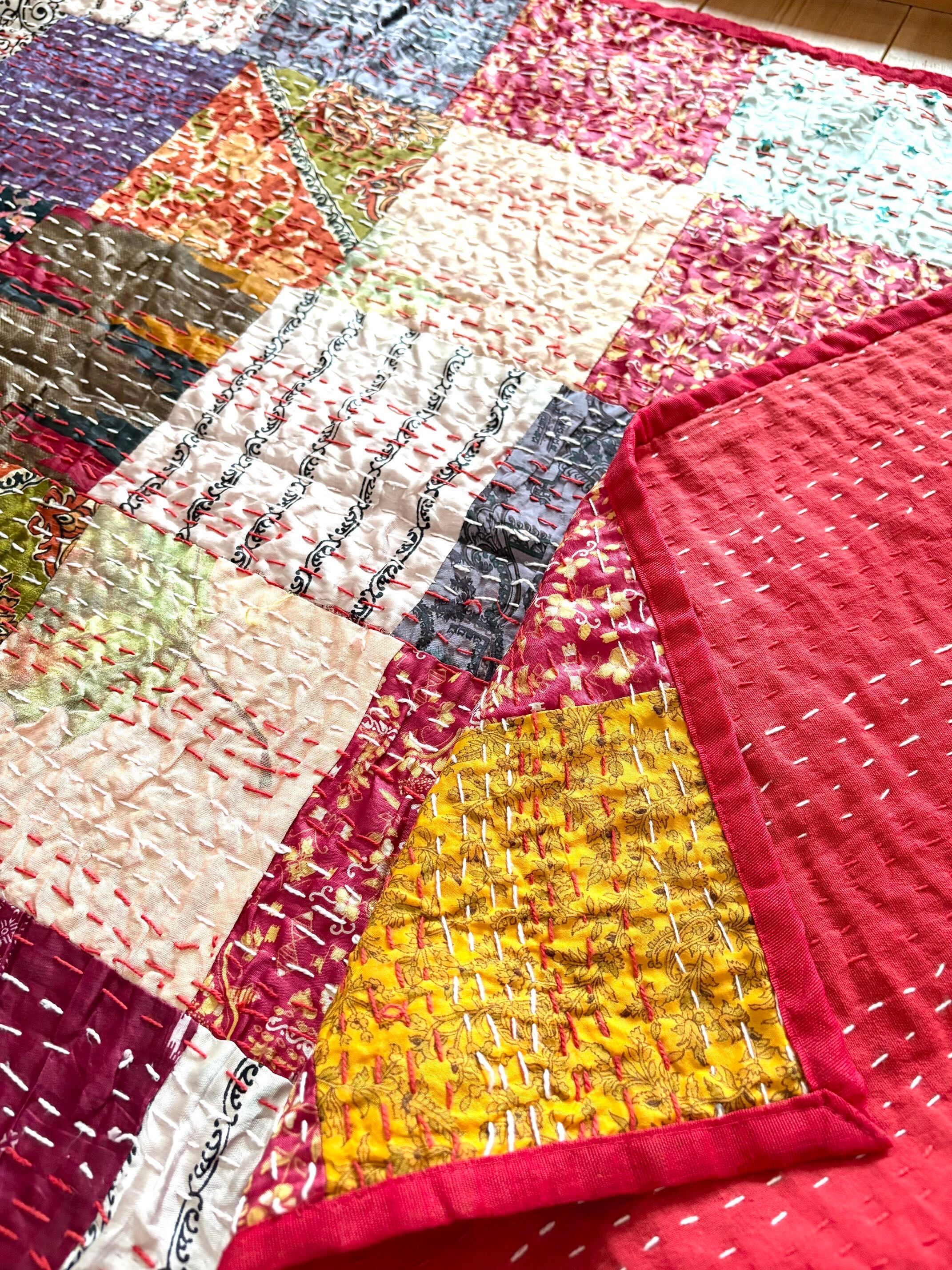 ◯カンタ刺繍ヴィンテージサリーパッチワークキルト