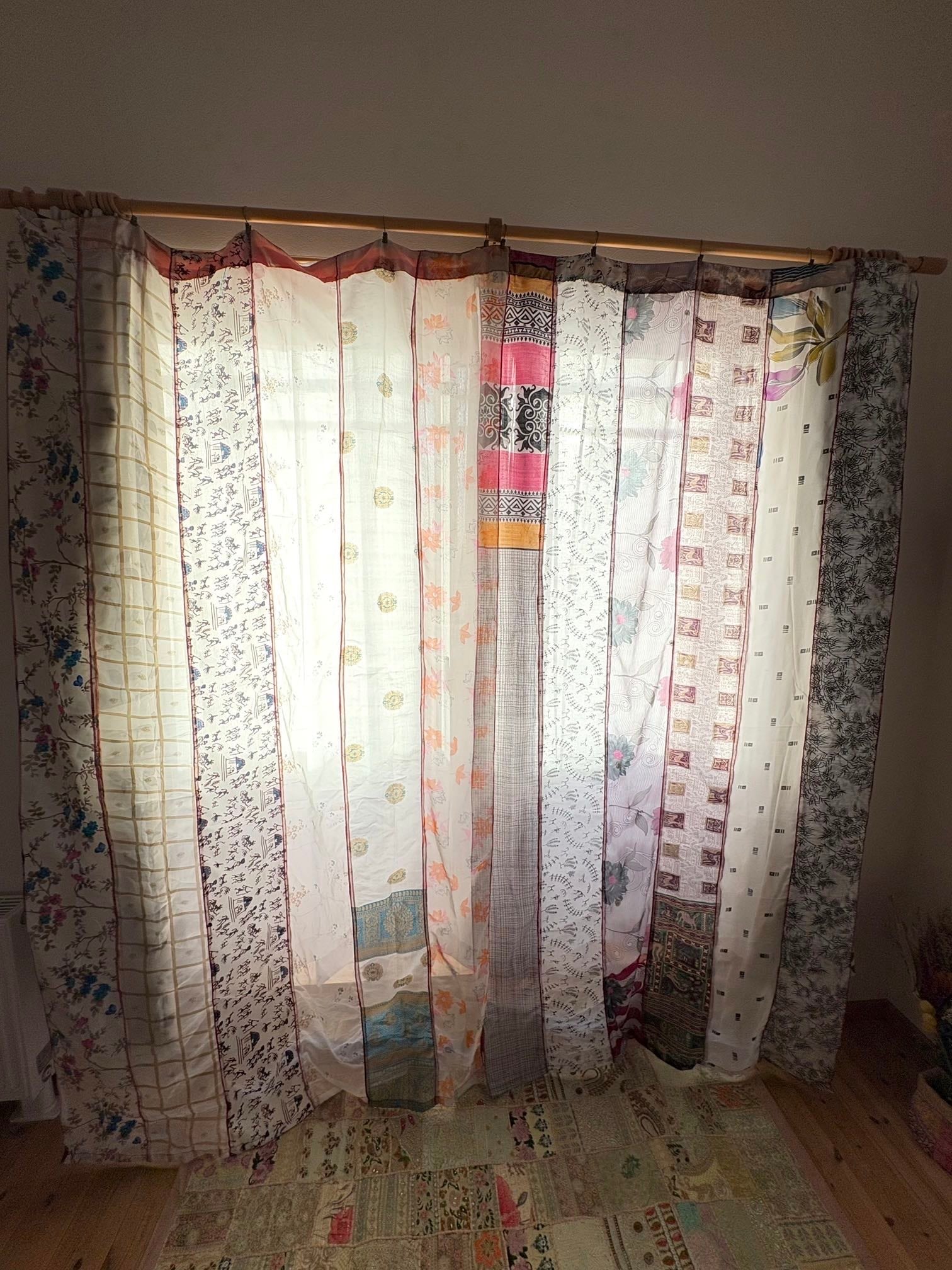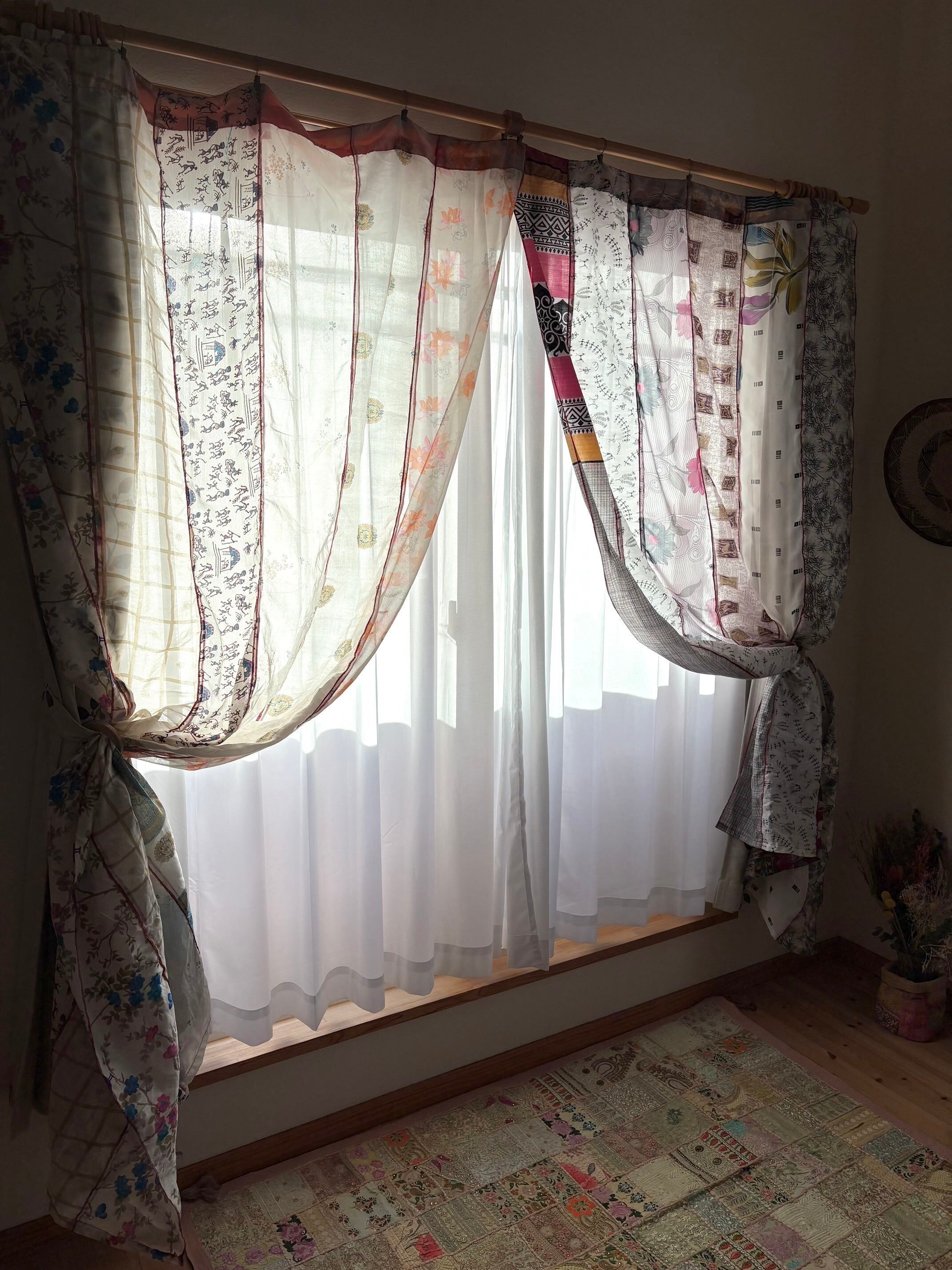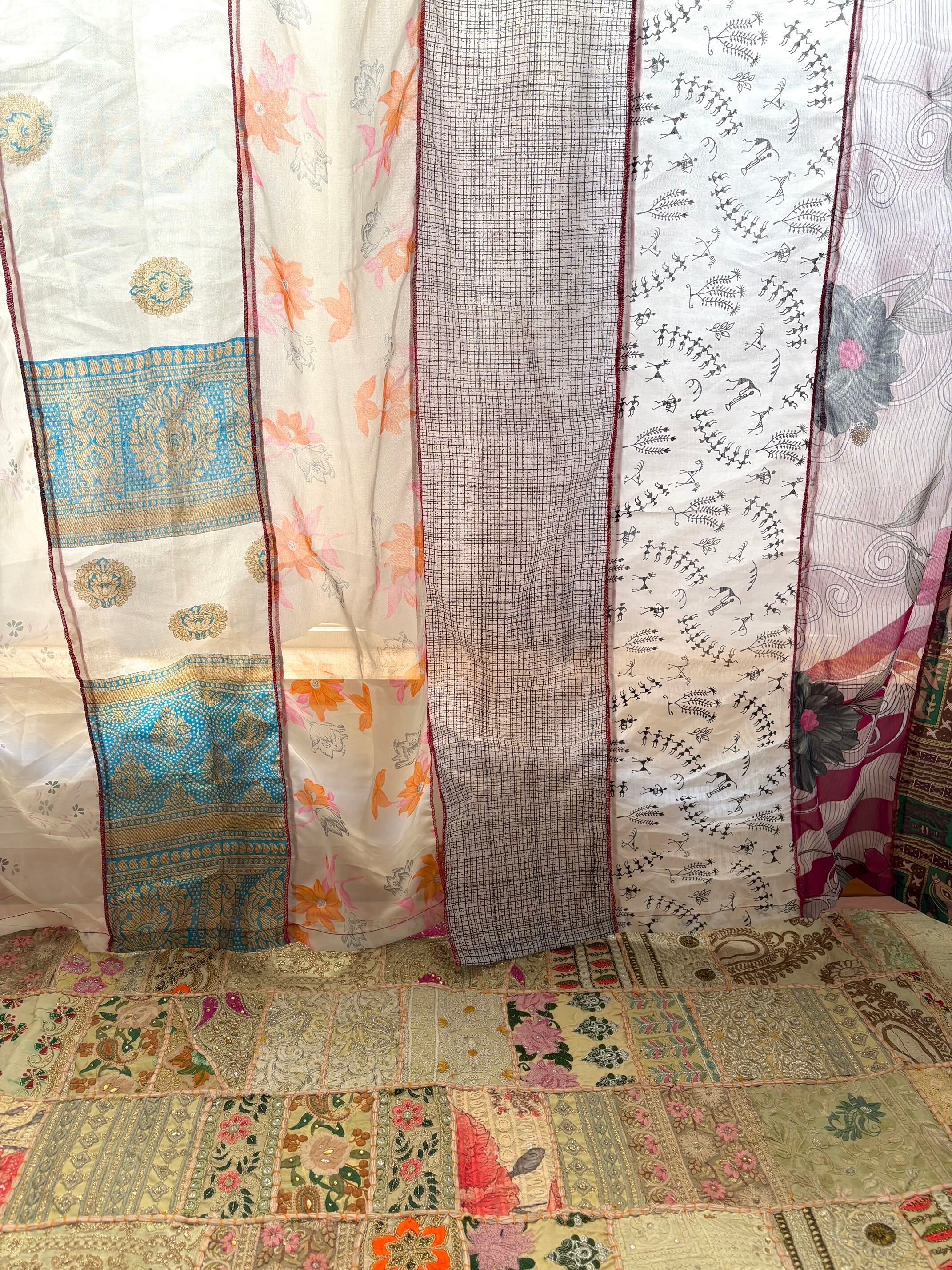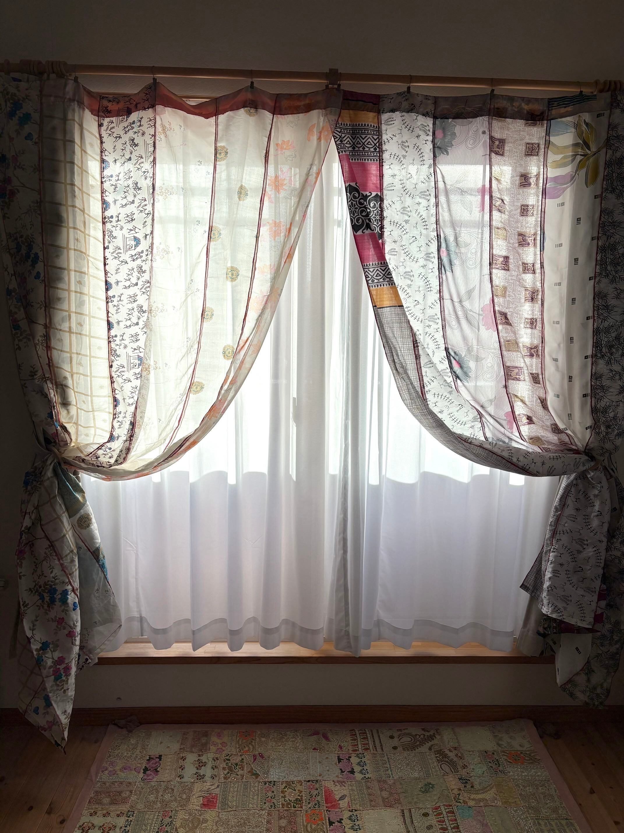 ヴィンテージサリーで出来たパッチワークシルクカーテン