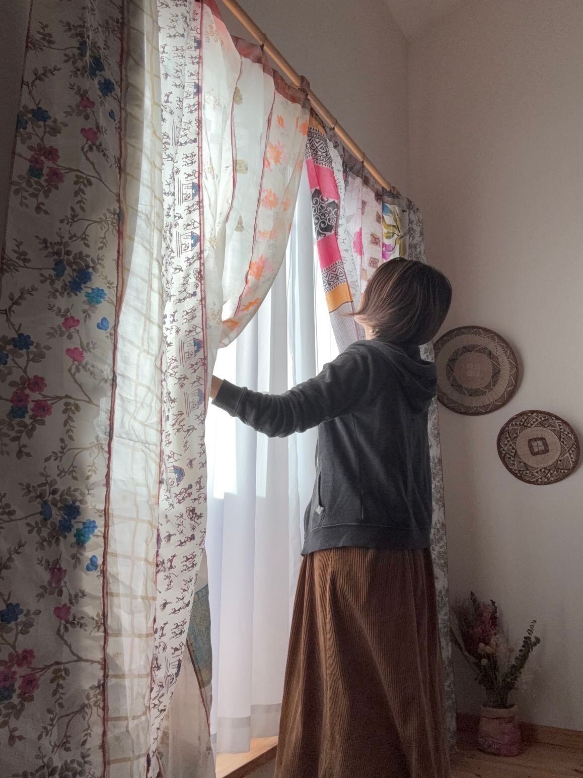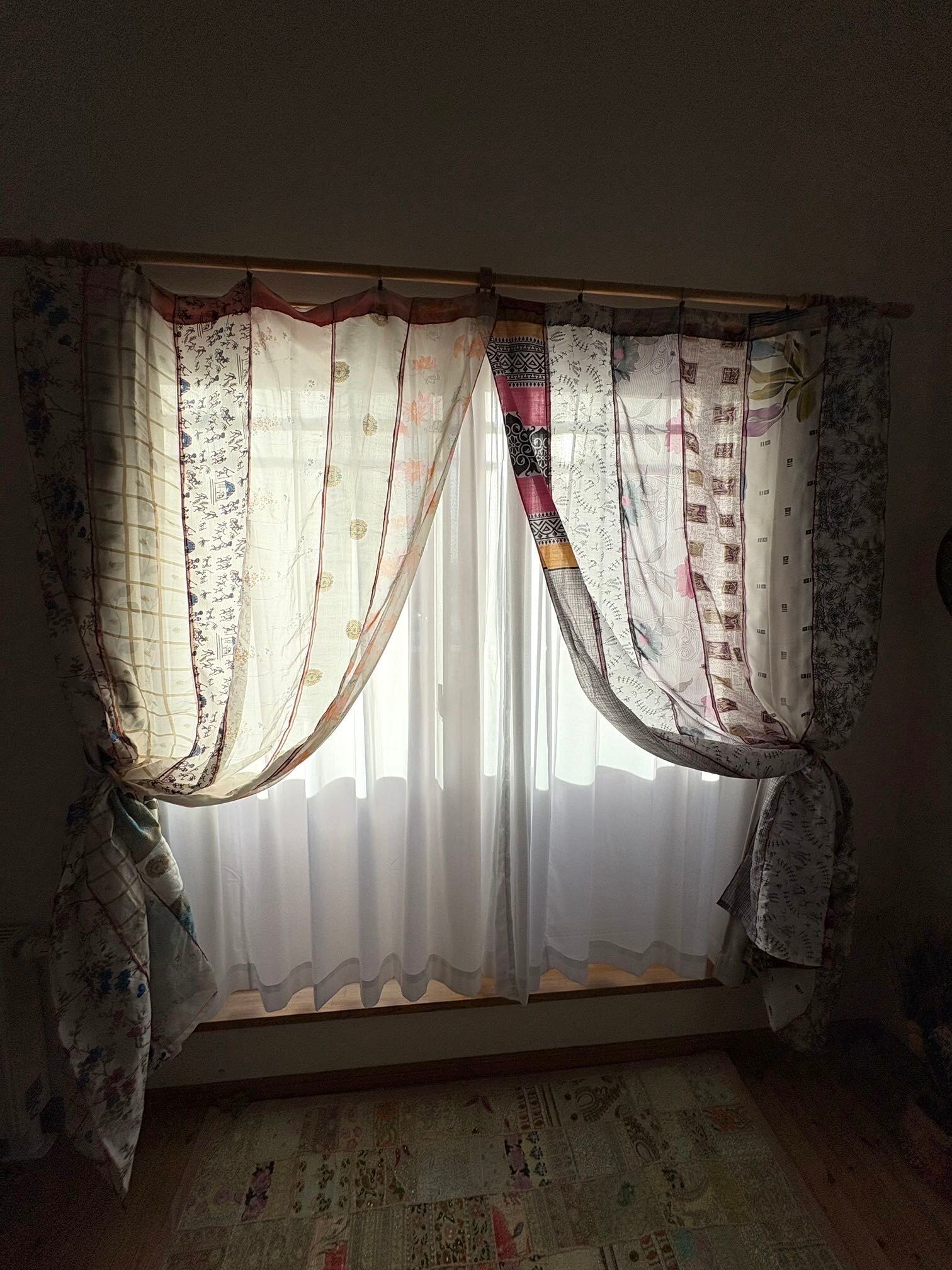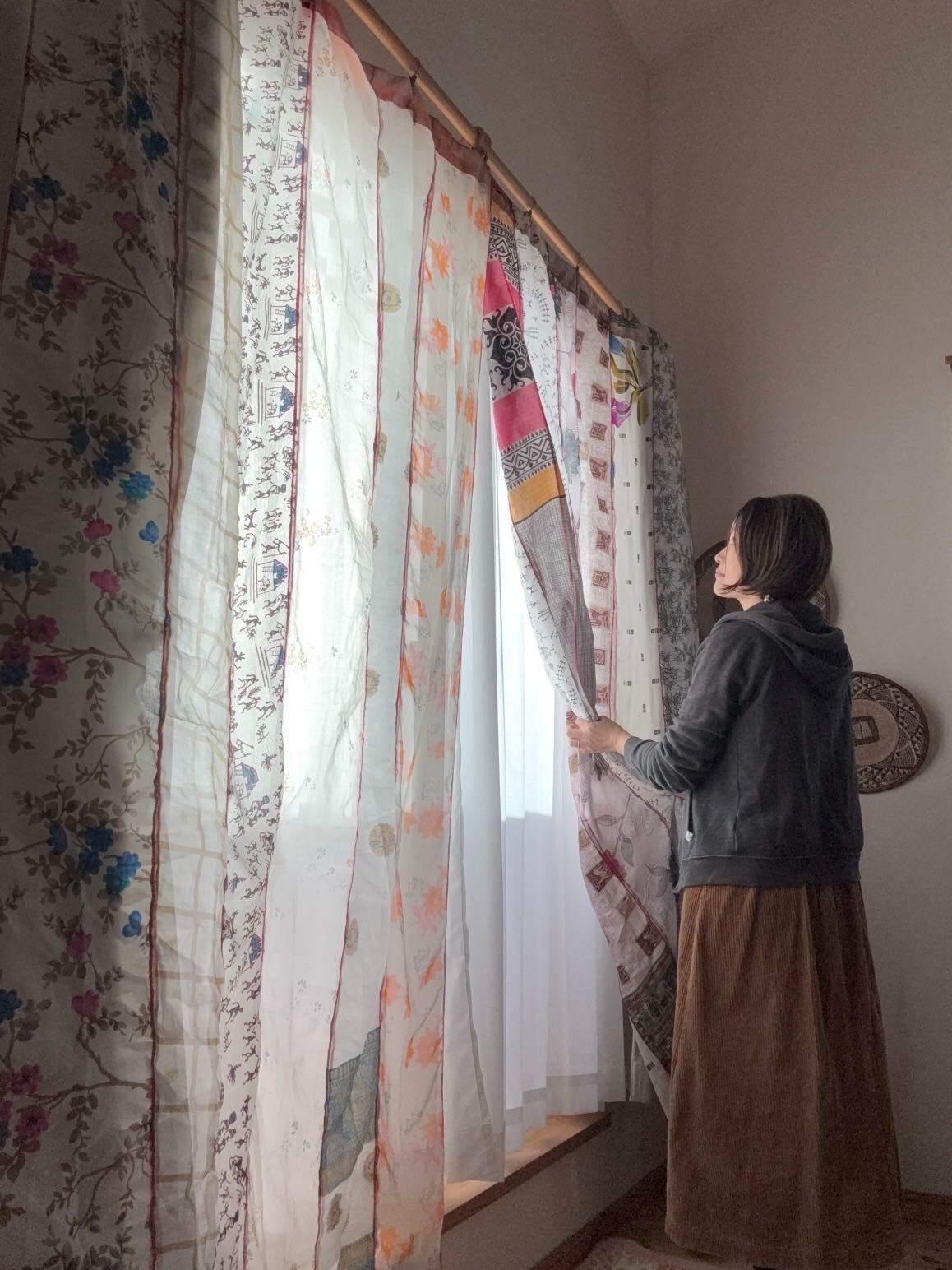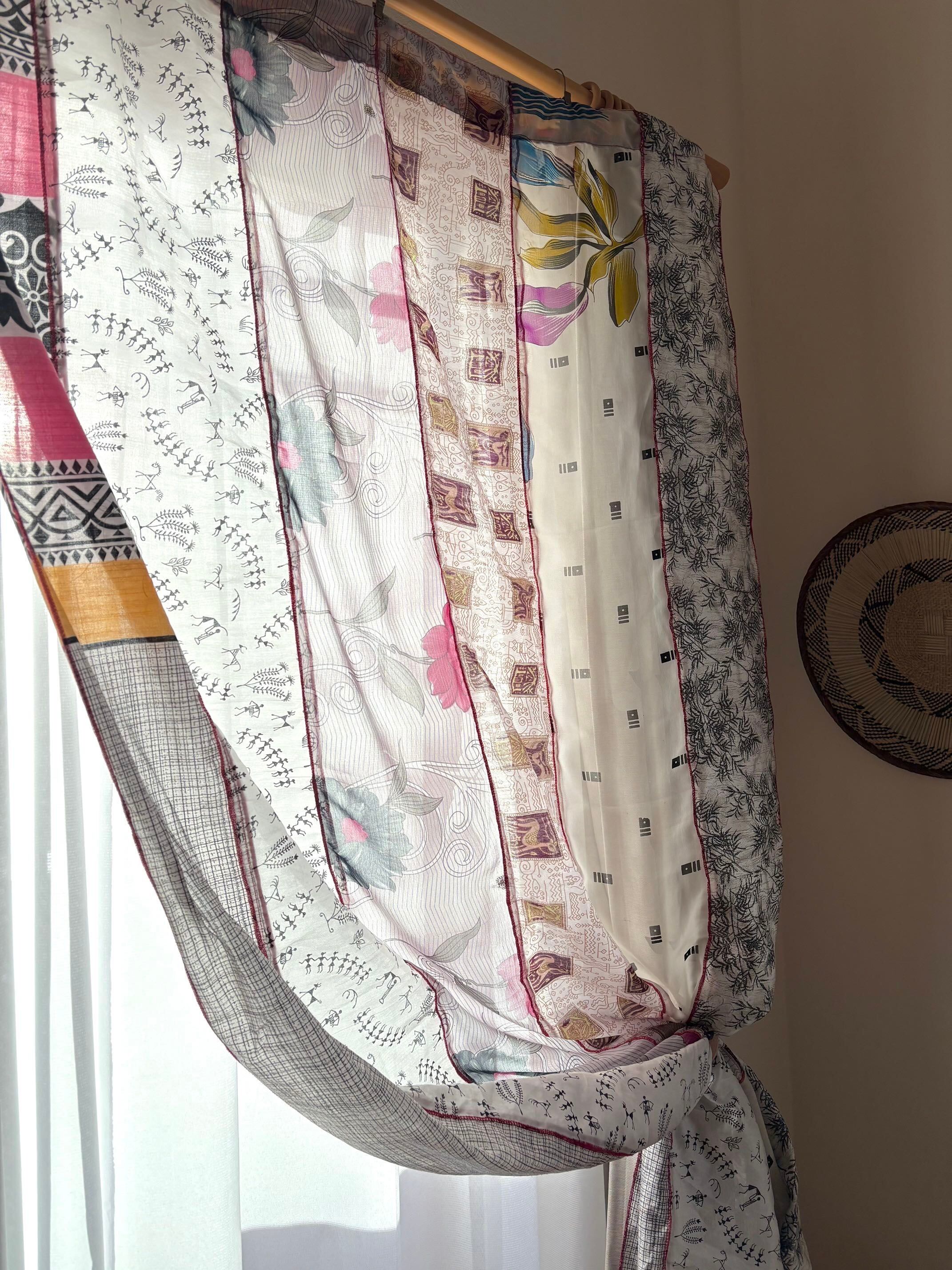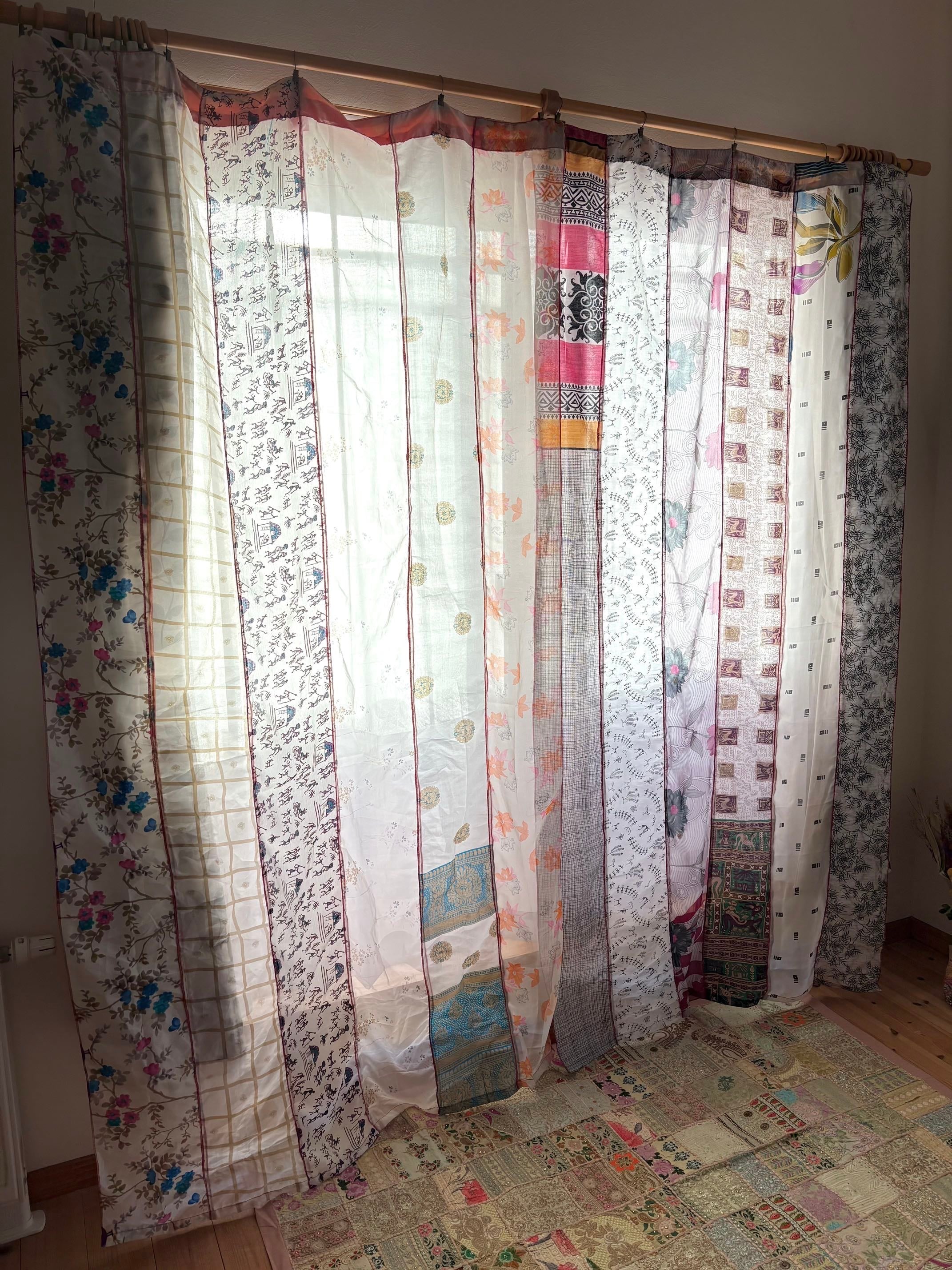 ヴィンテージサリーで出来たパッチワークシルクカーテン
