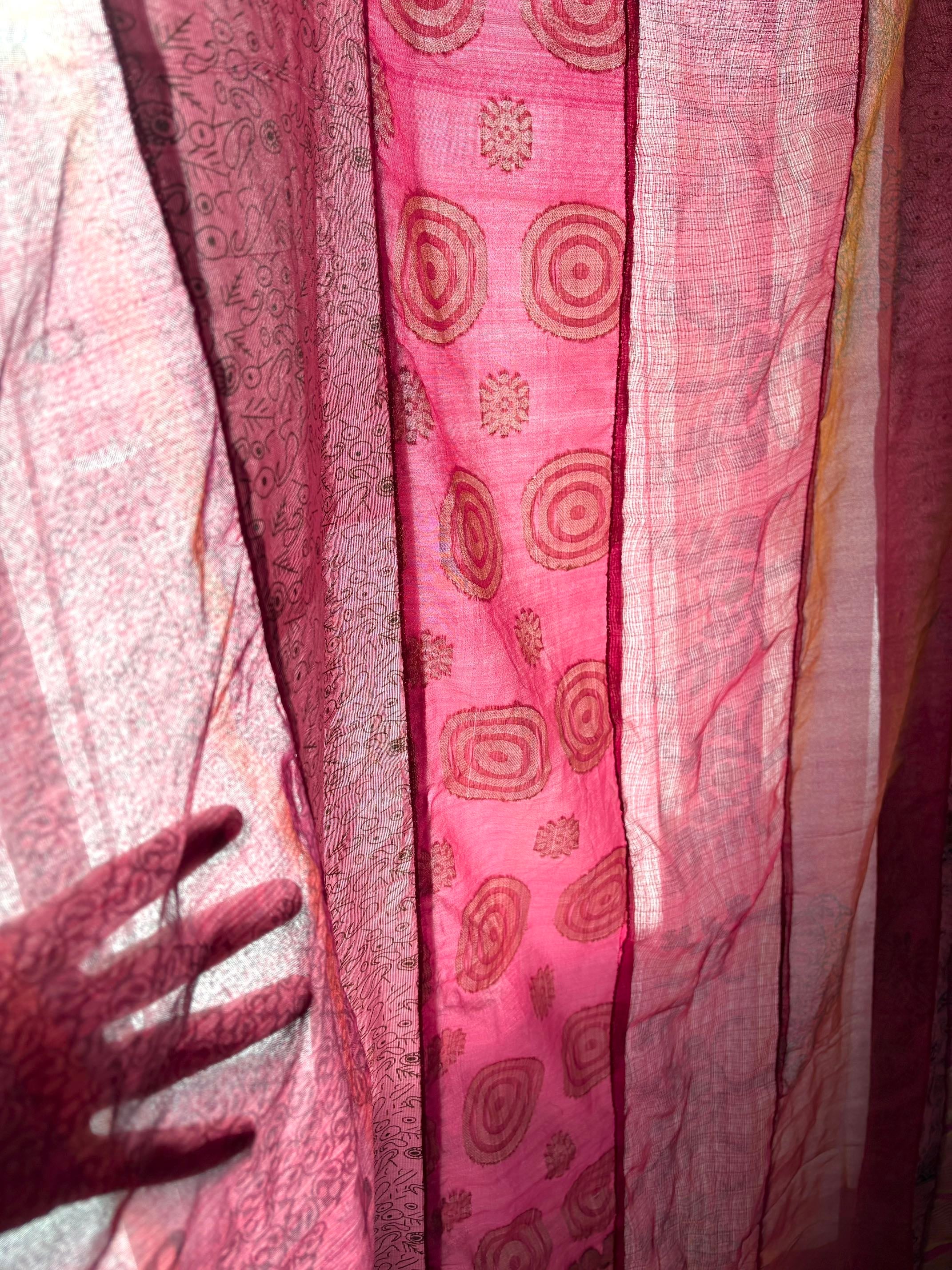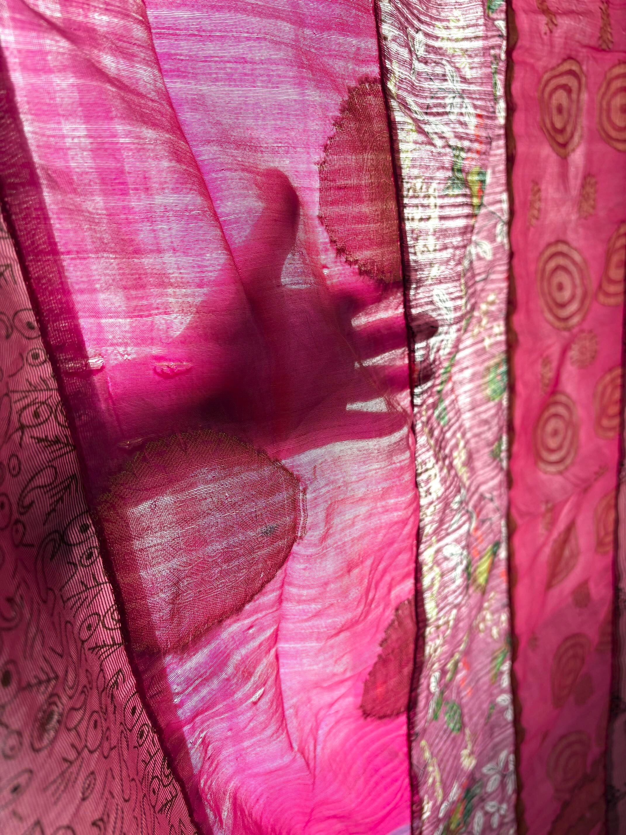 ヴィンテージサリーで出来たパッチワークシルクカーテン