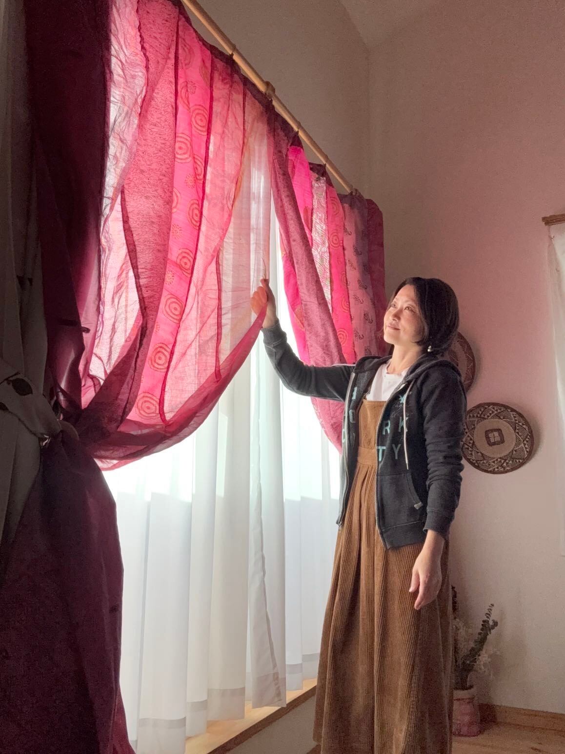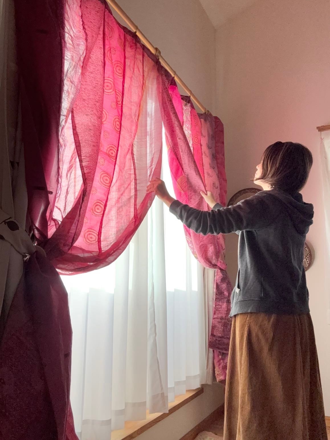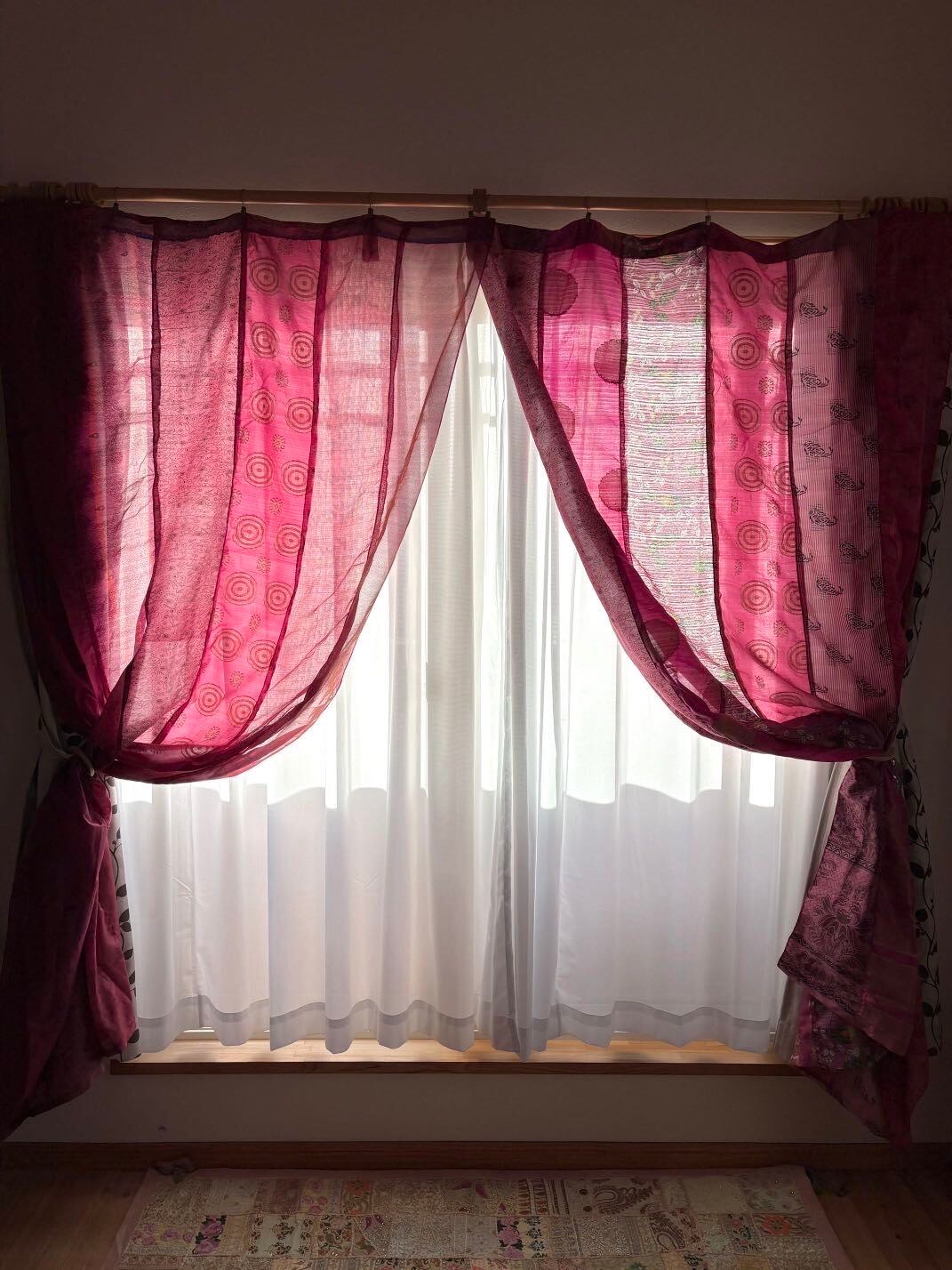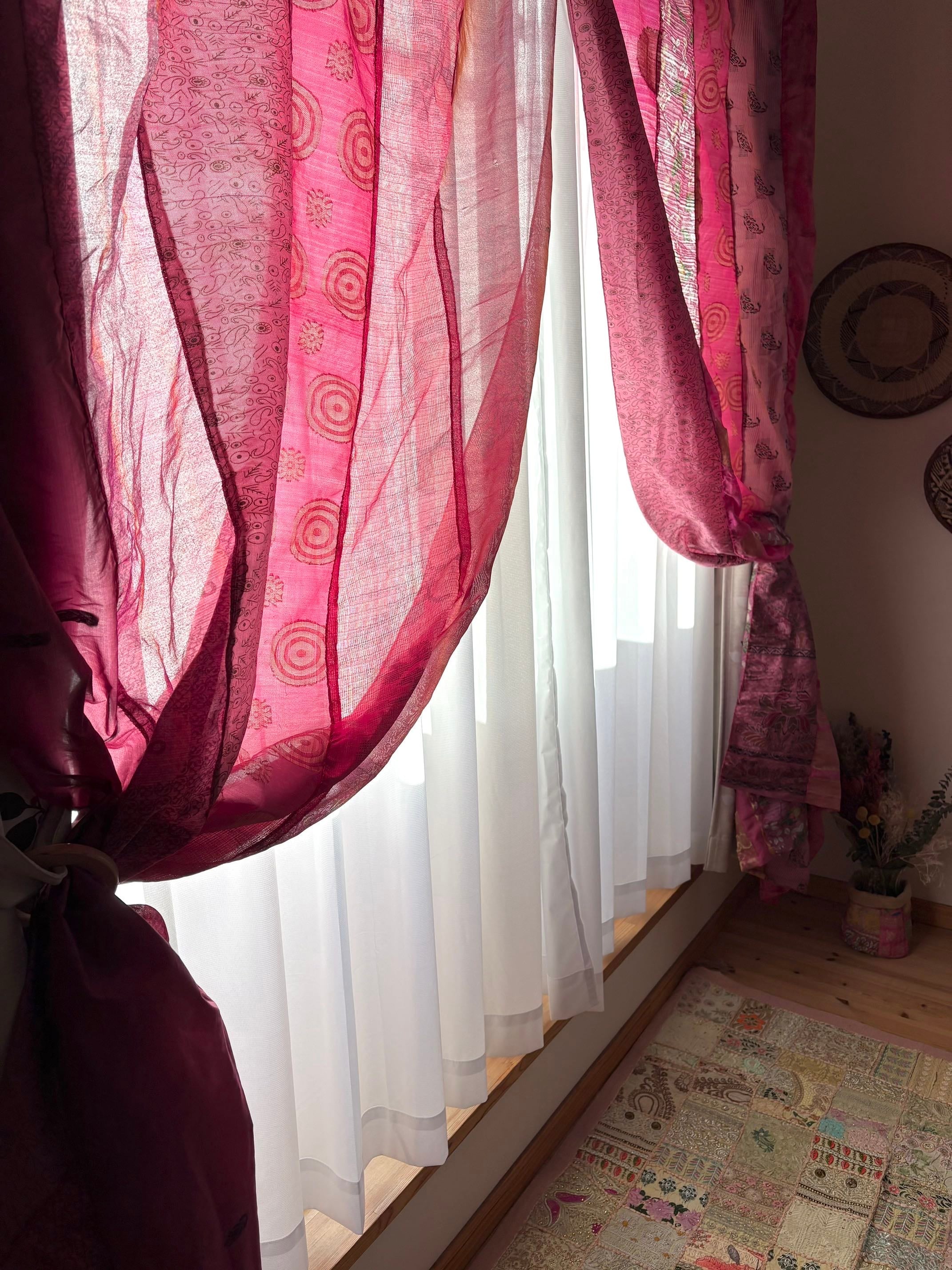※カーテンとしては新品未使用ですが、布はヴィンテージサリーを使っております。