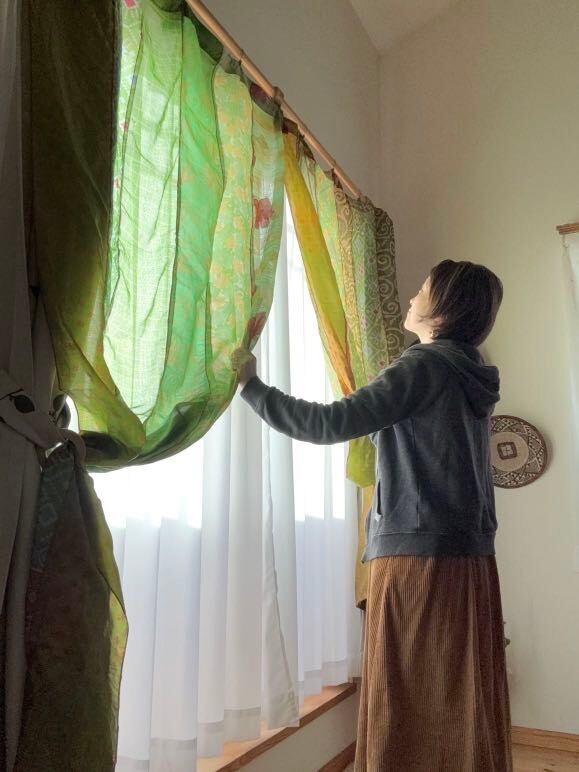 ※カーテンとしては新品未使用ですが、布はヴィンテージサリーを使っております。