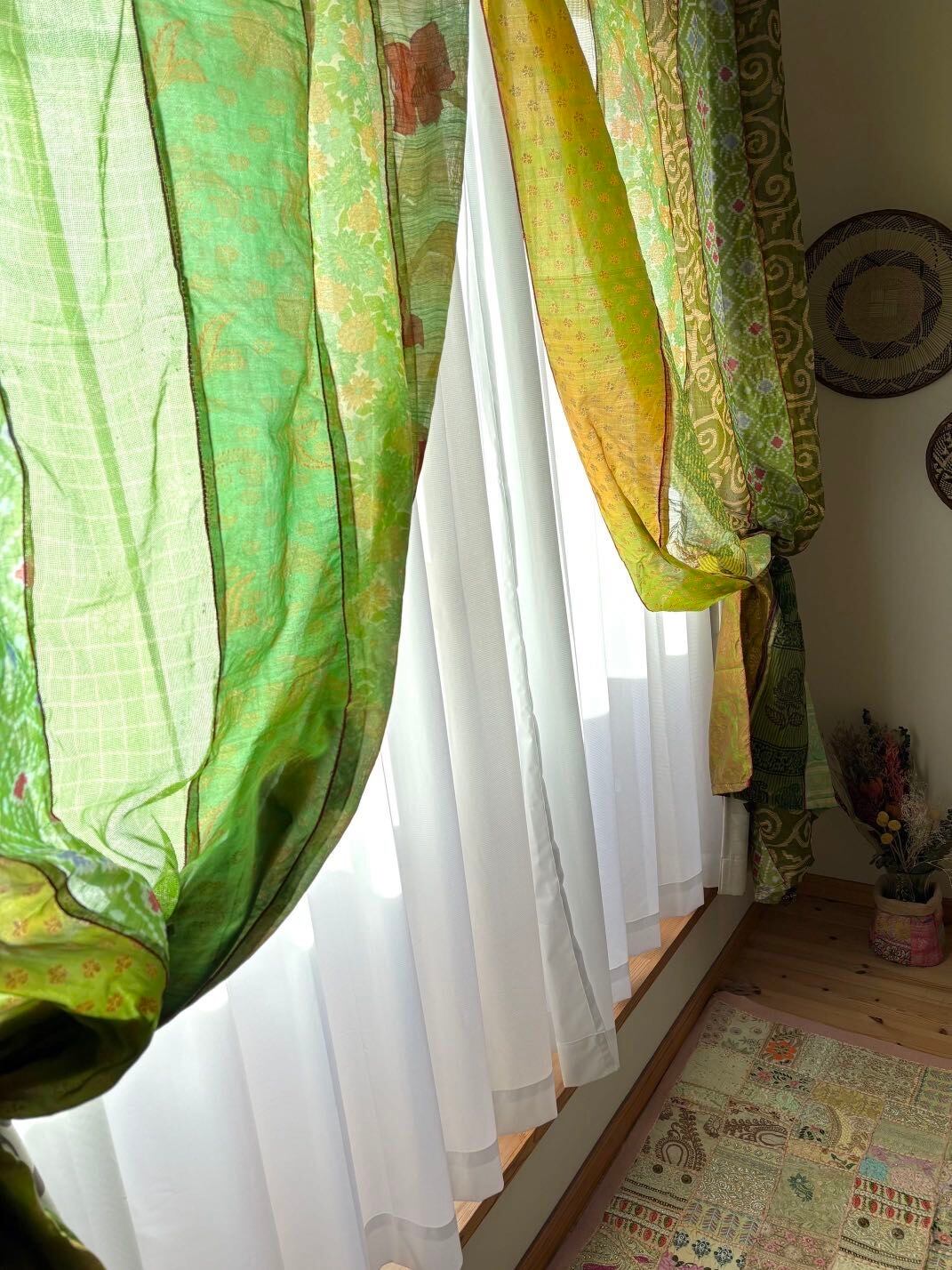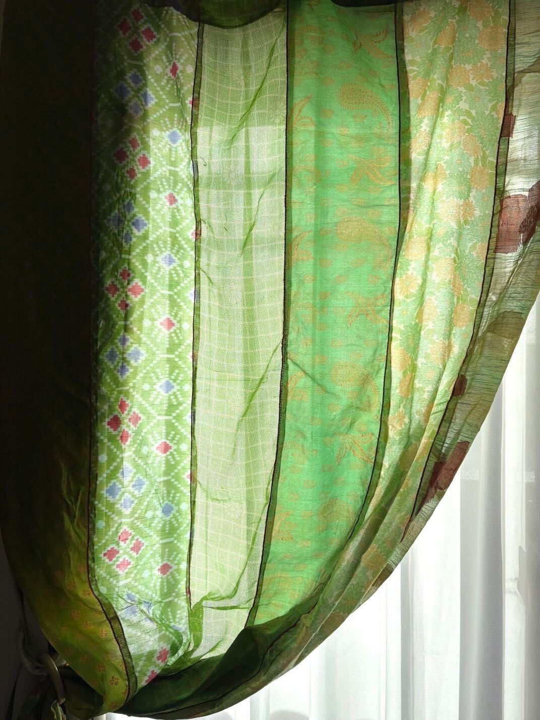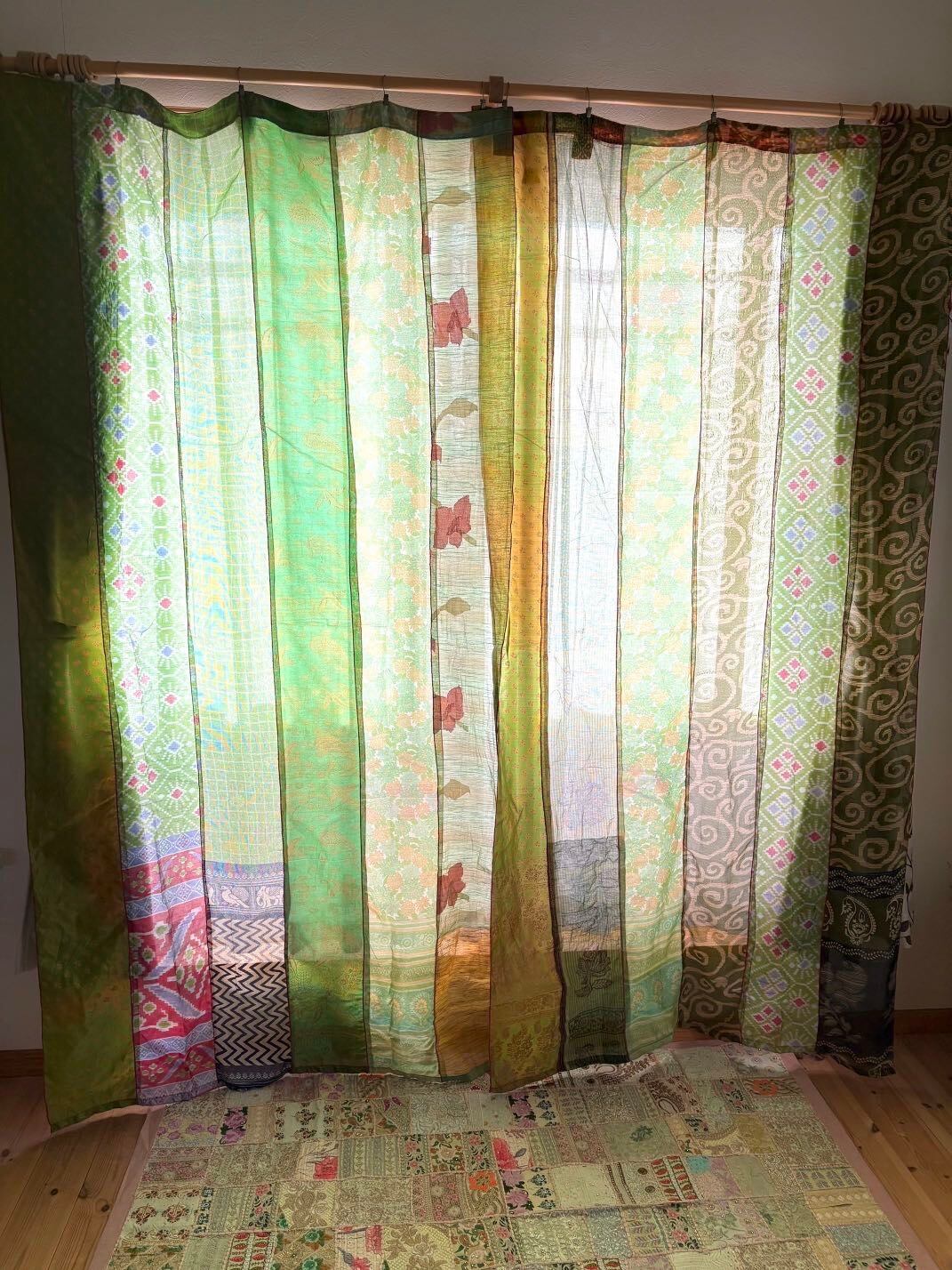 ヴィンテージサリーで出来たパッチワークシルクカーテン
