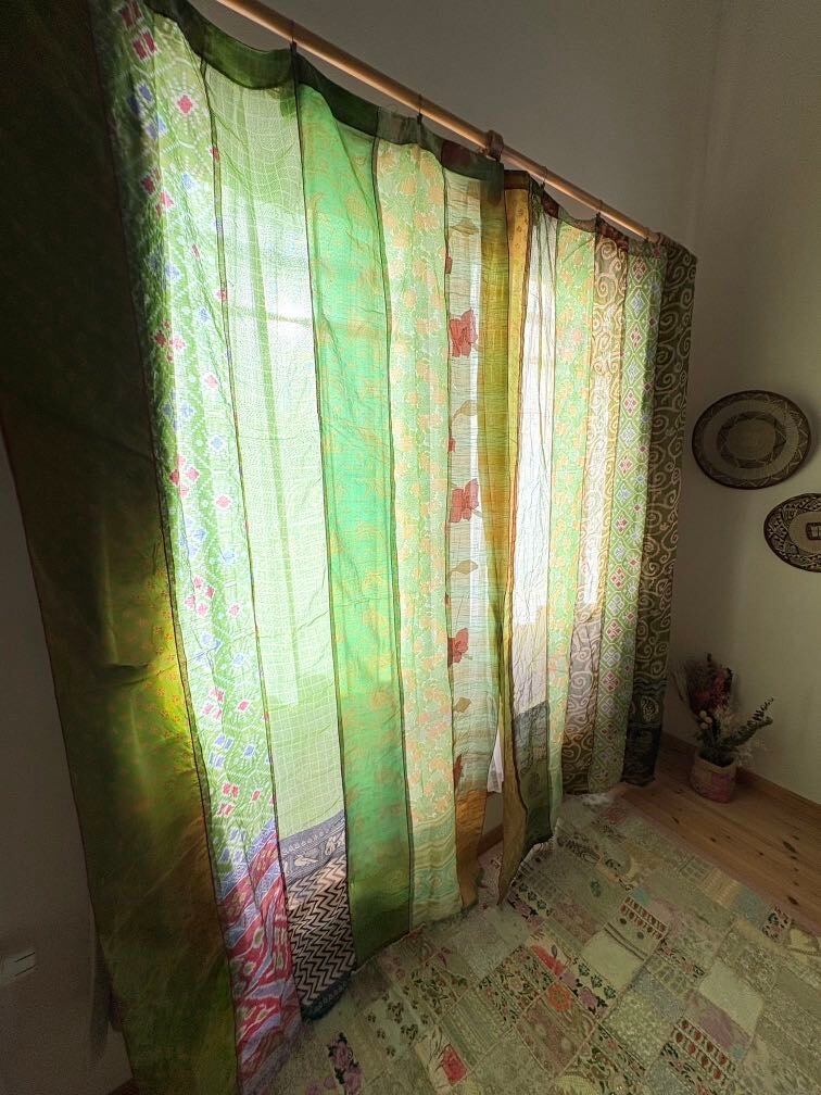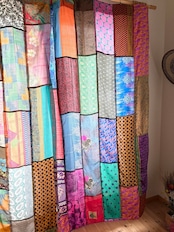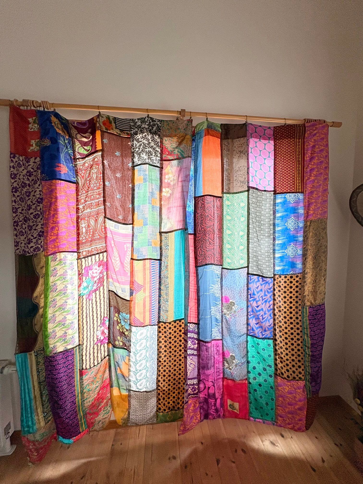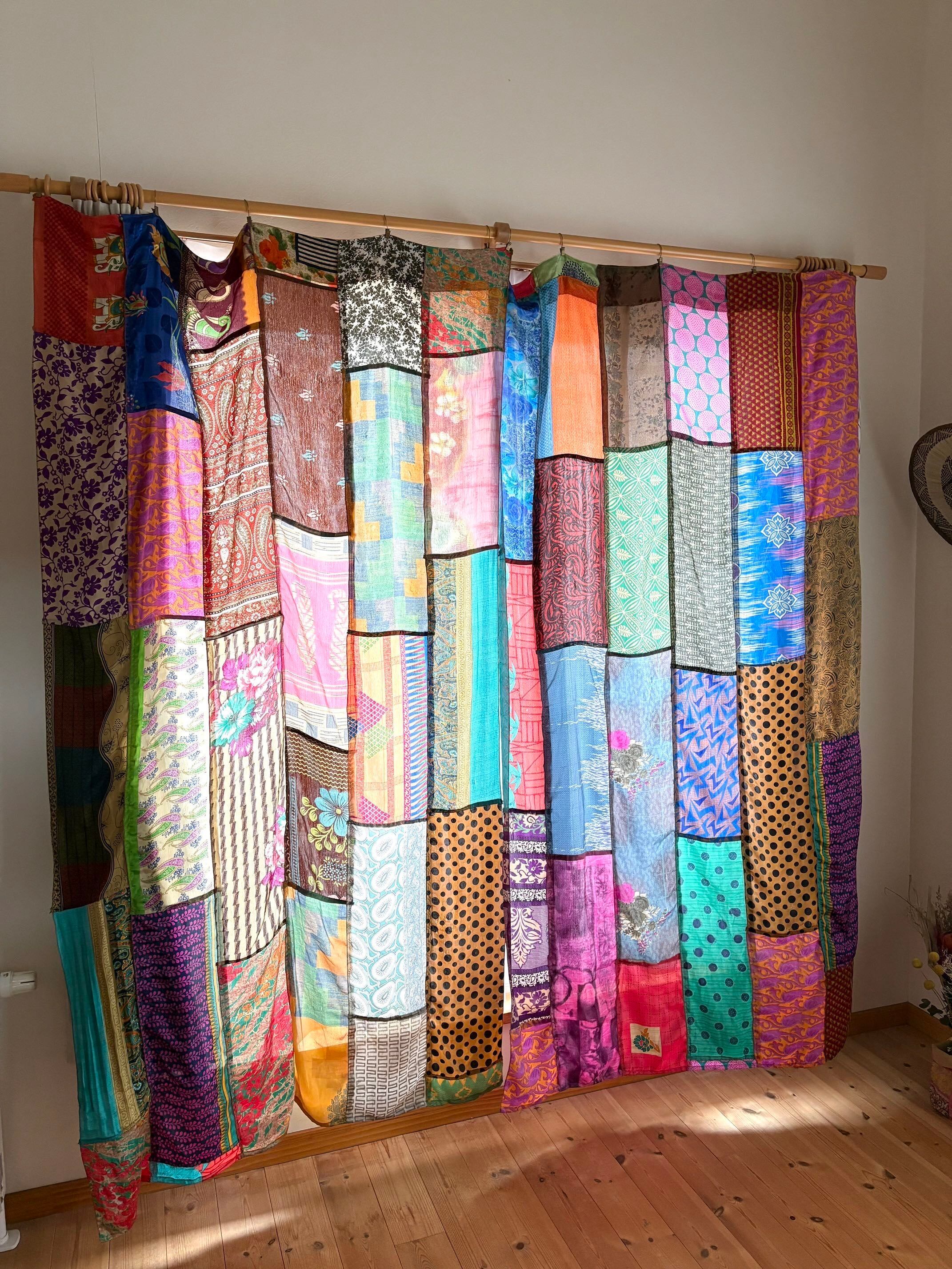 ヴィンテージサリーで出来たパッチワークシルクカーテン