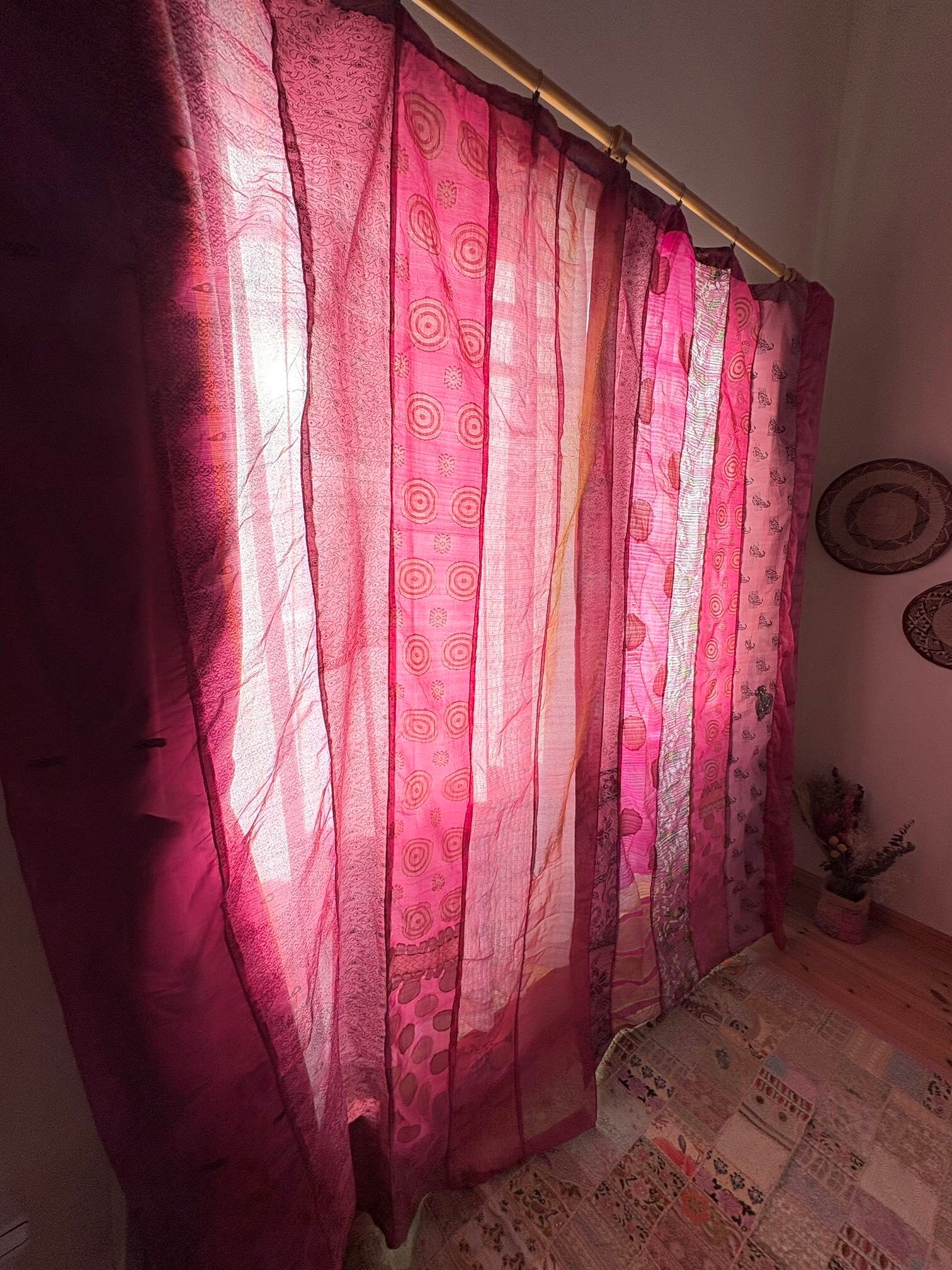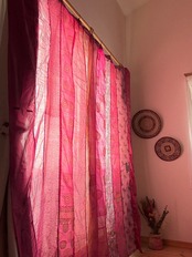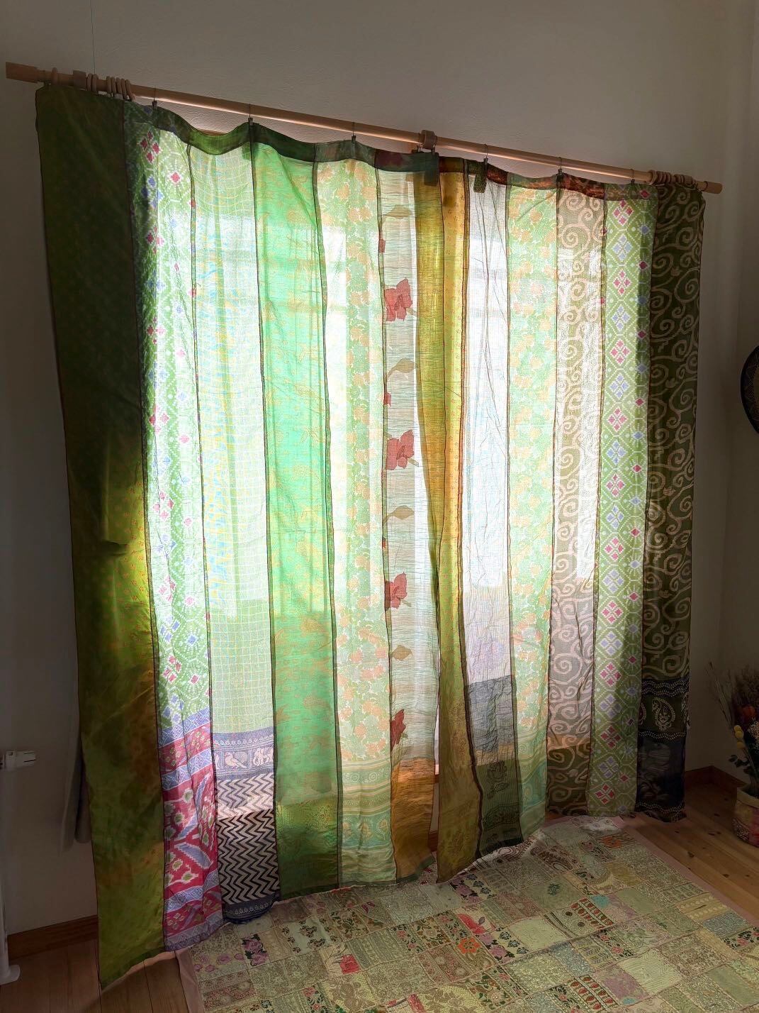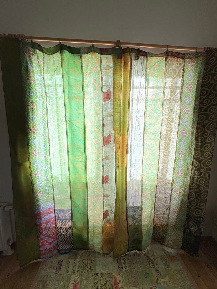 ヴィンテージサリーで出来たパッチワークシルクカーテン