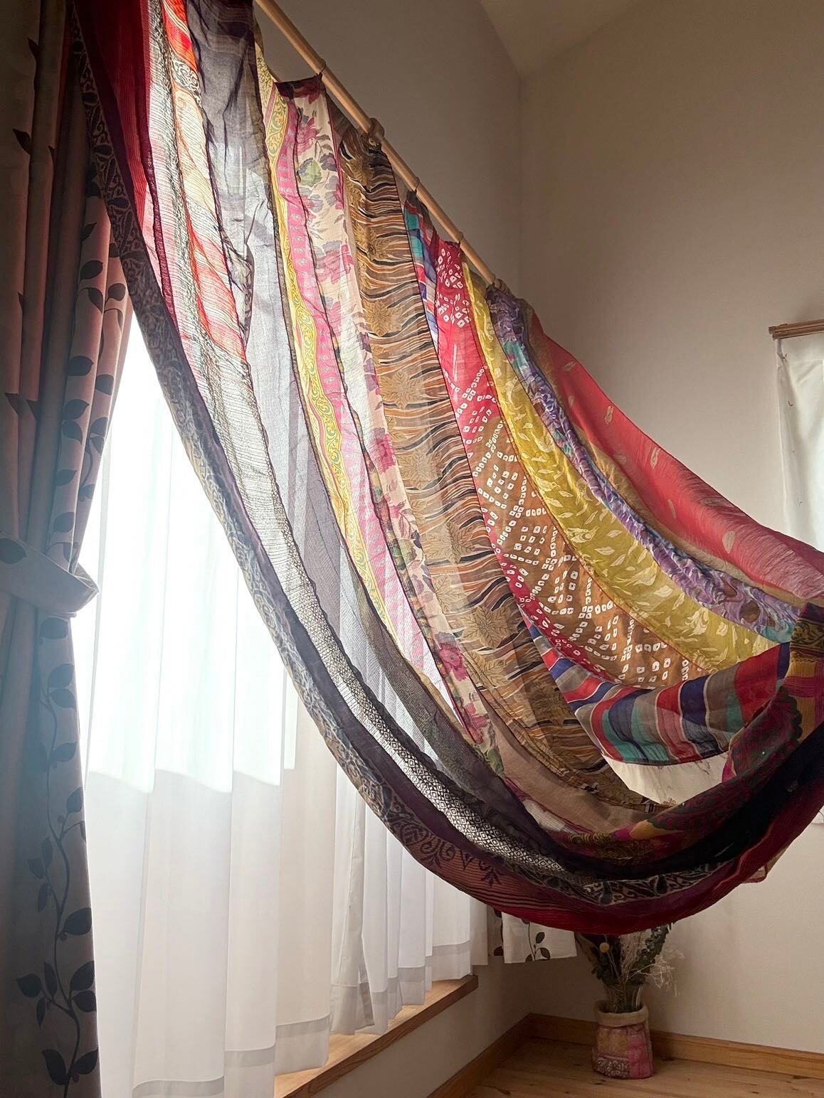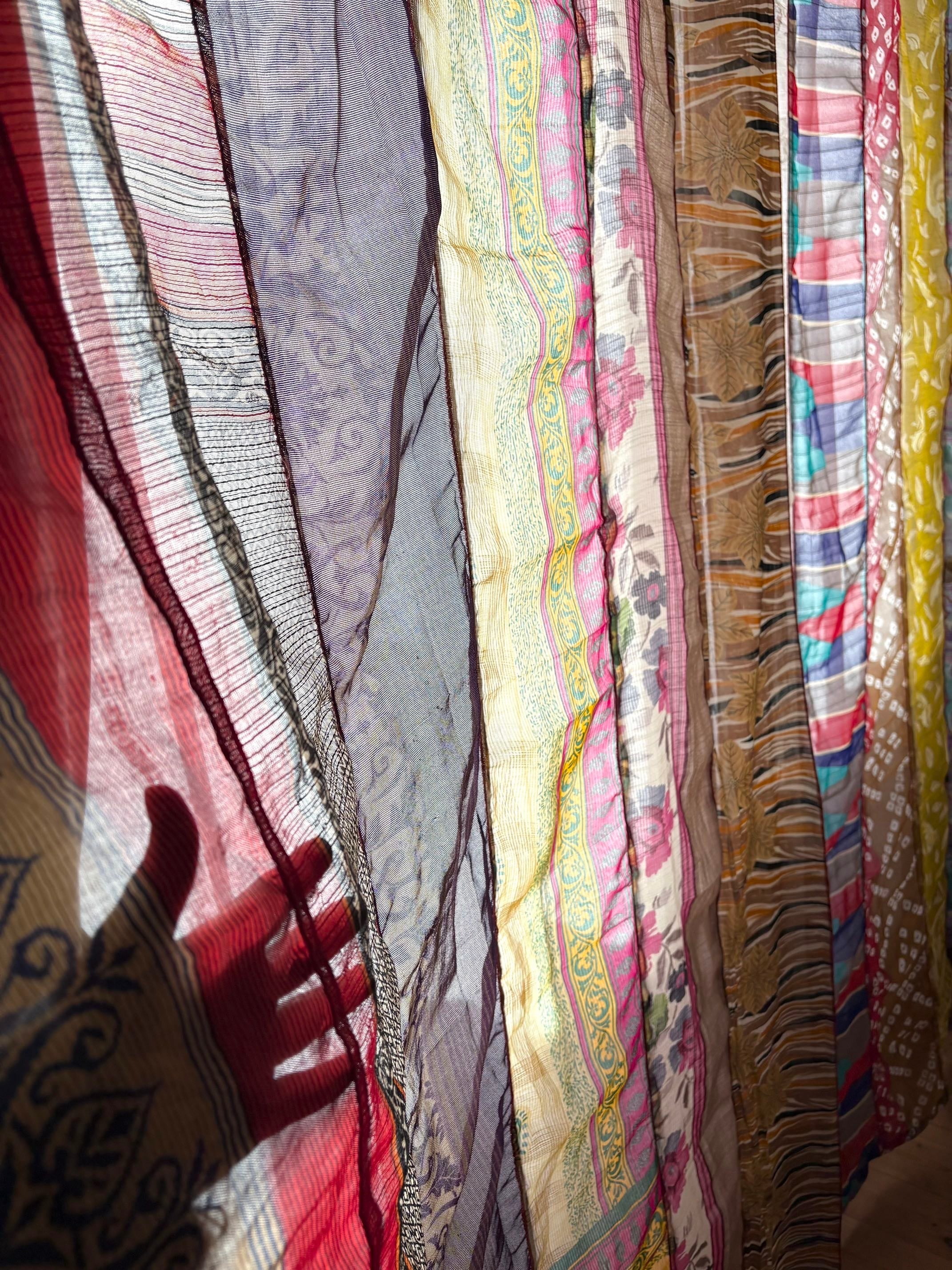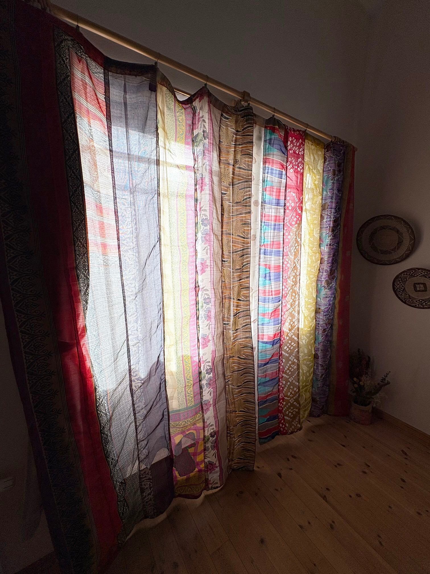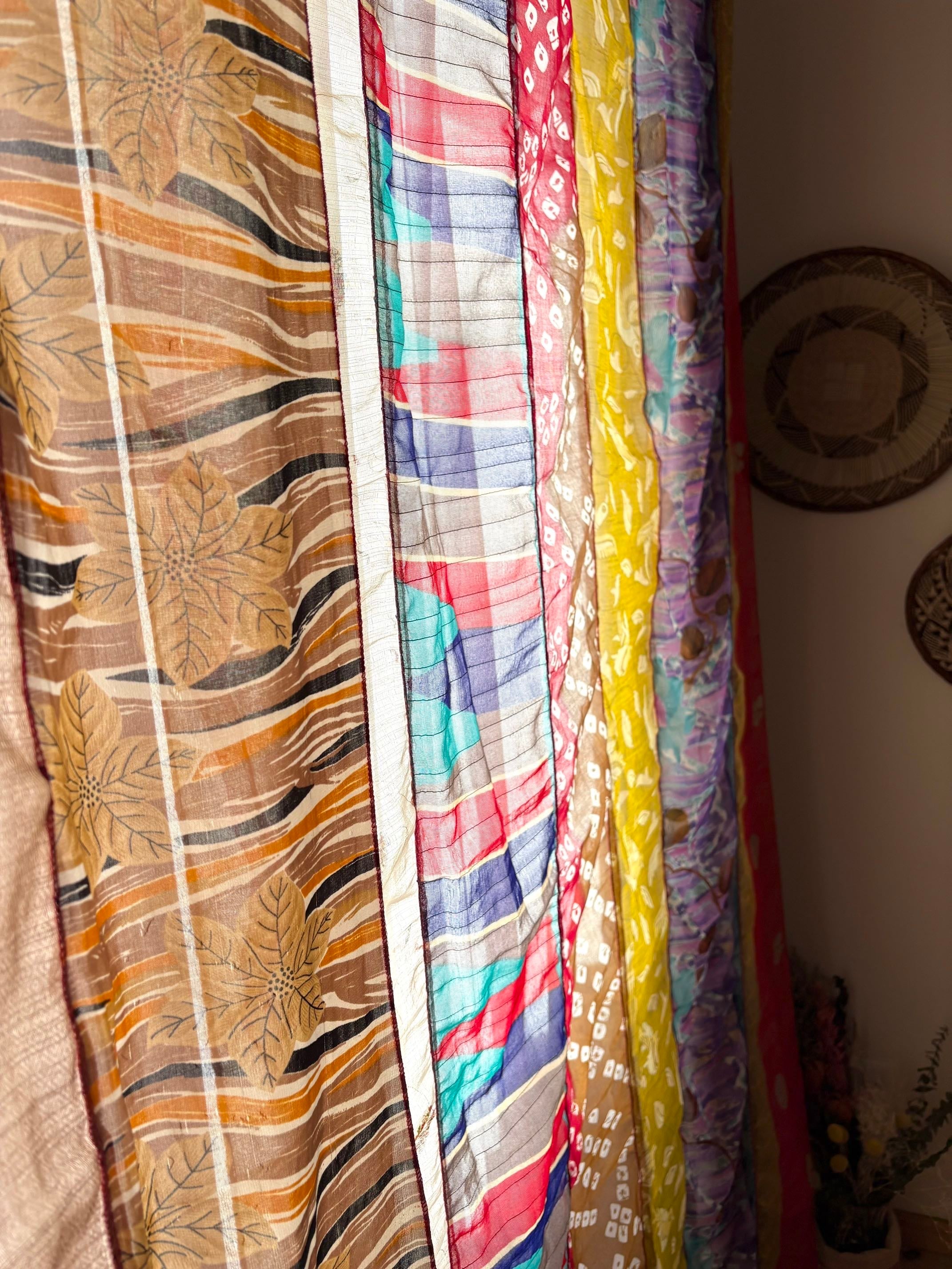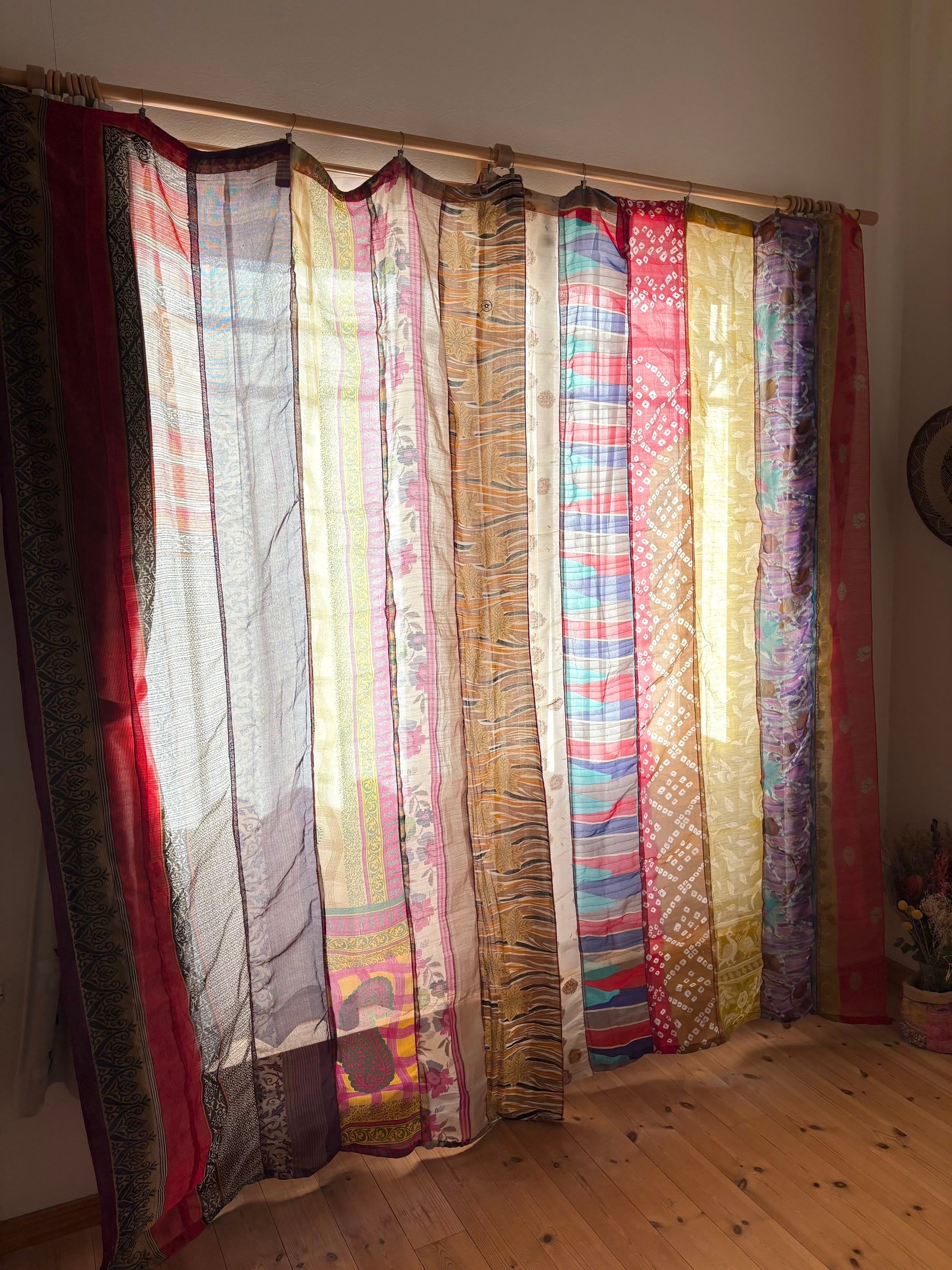 ヴィンテージサリーで出来たパッチワークシルクカーテン