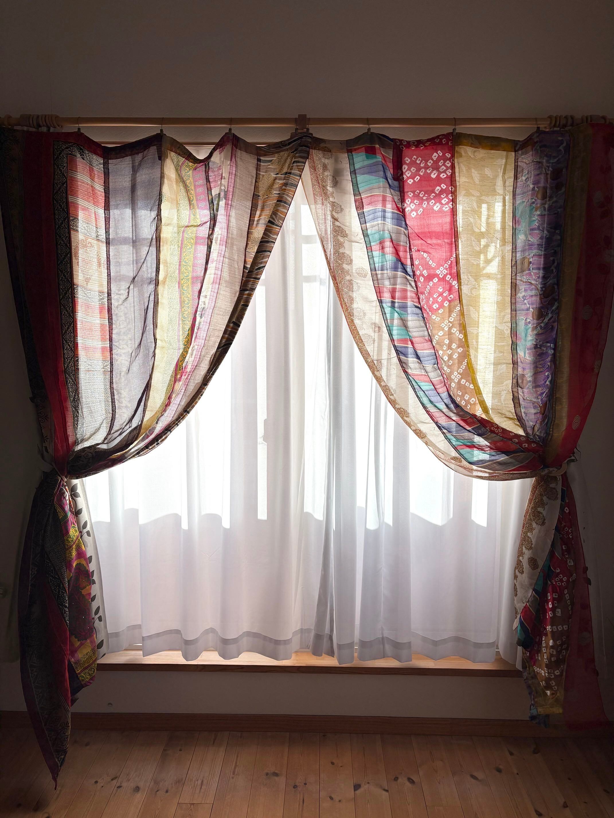 ※カーテンとしては新品未使用ですが、布はヴィンテージサリーを使っております。