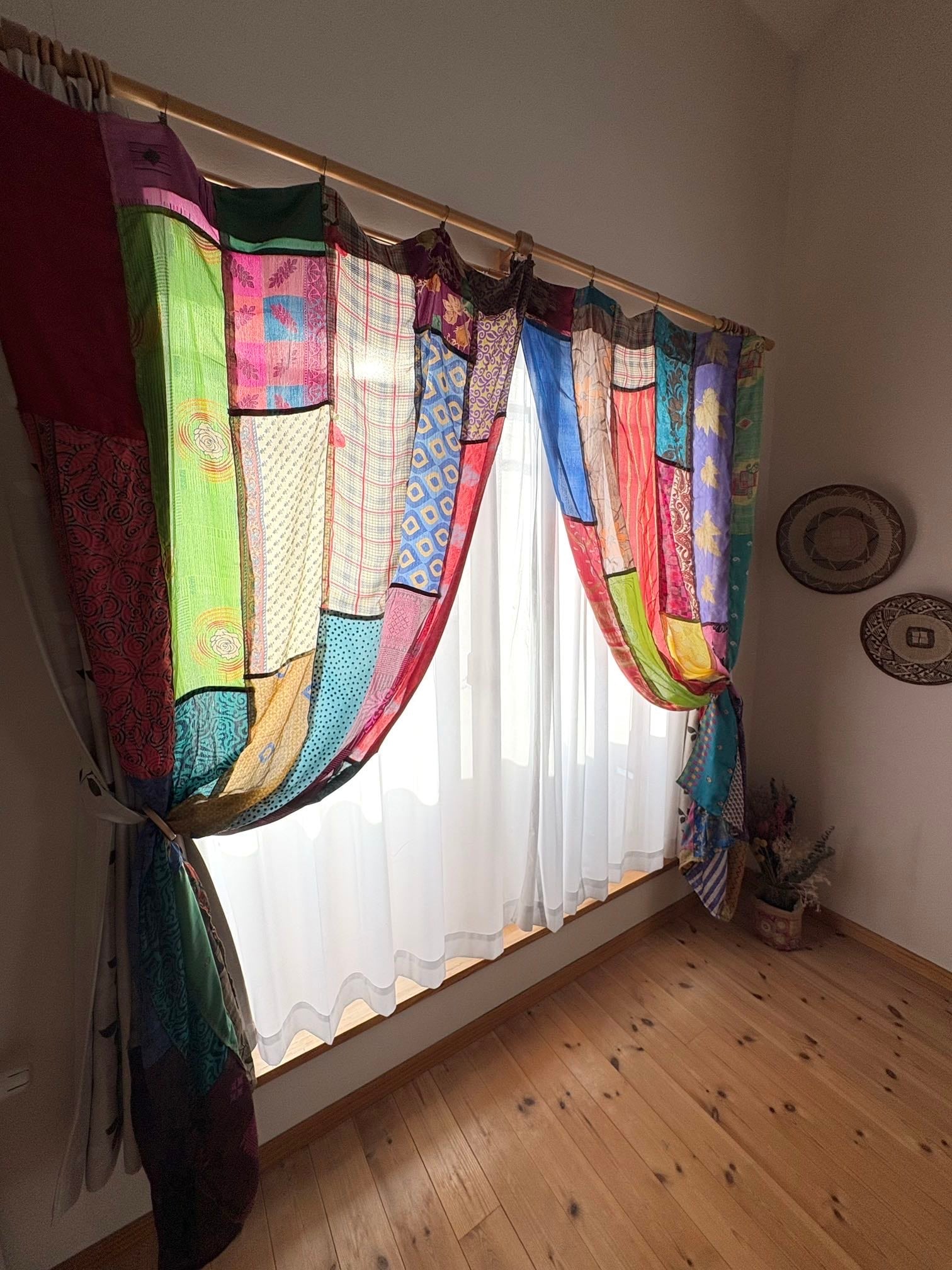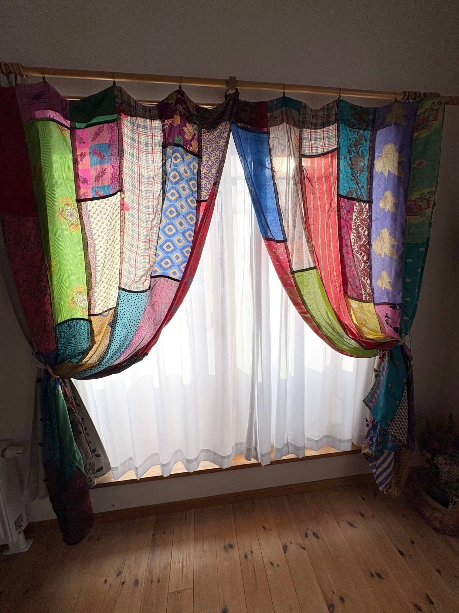 ※カーテンとしては新品未使用ですが、布はヴィンテージサリーを使っております。