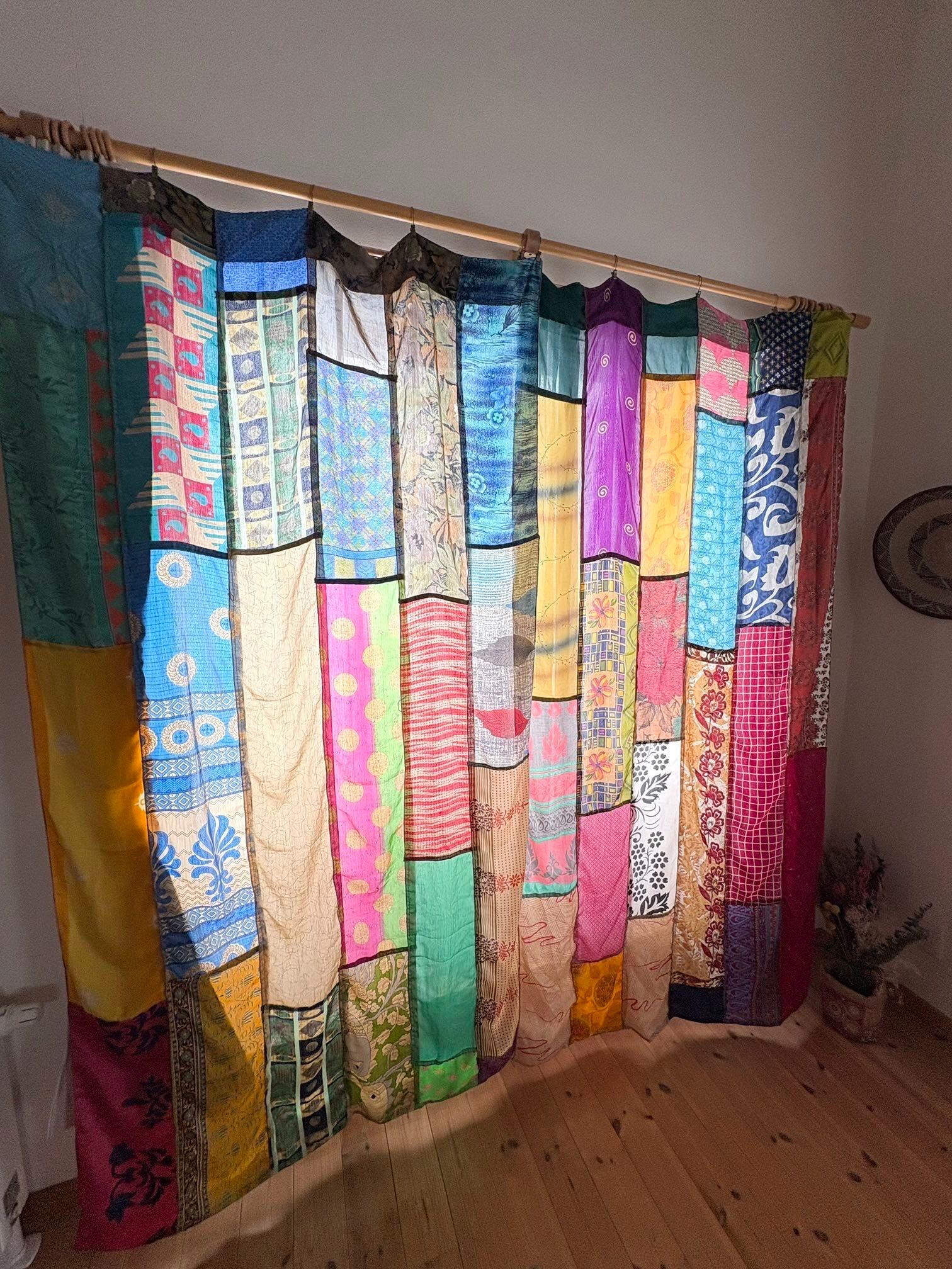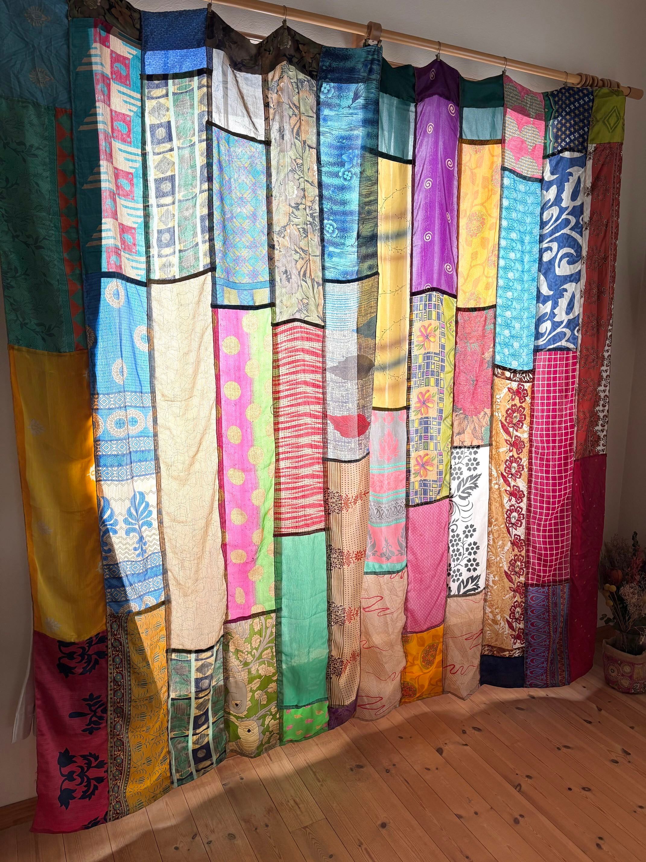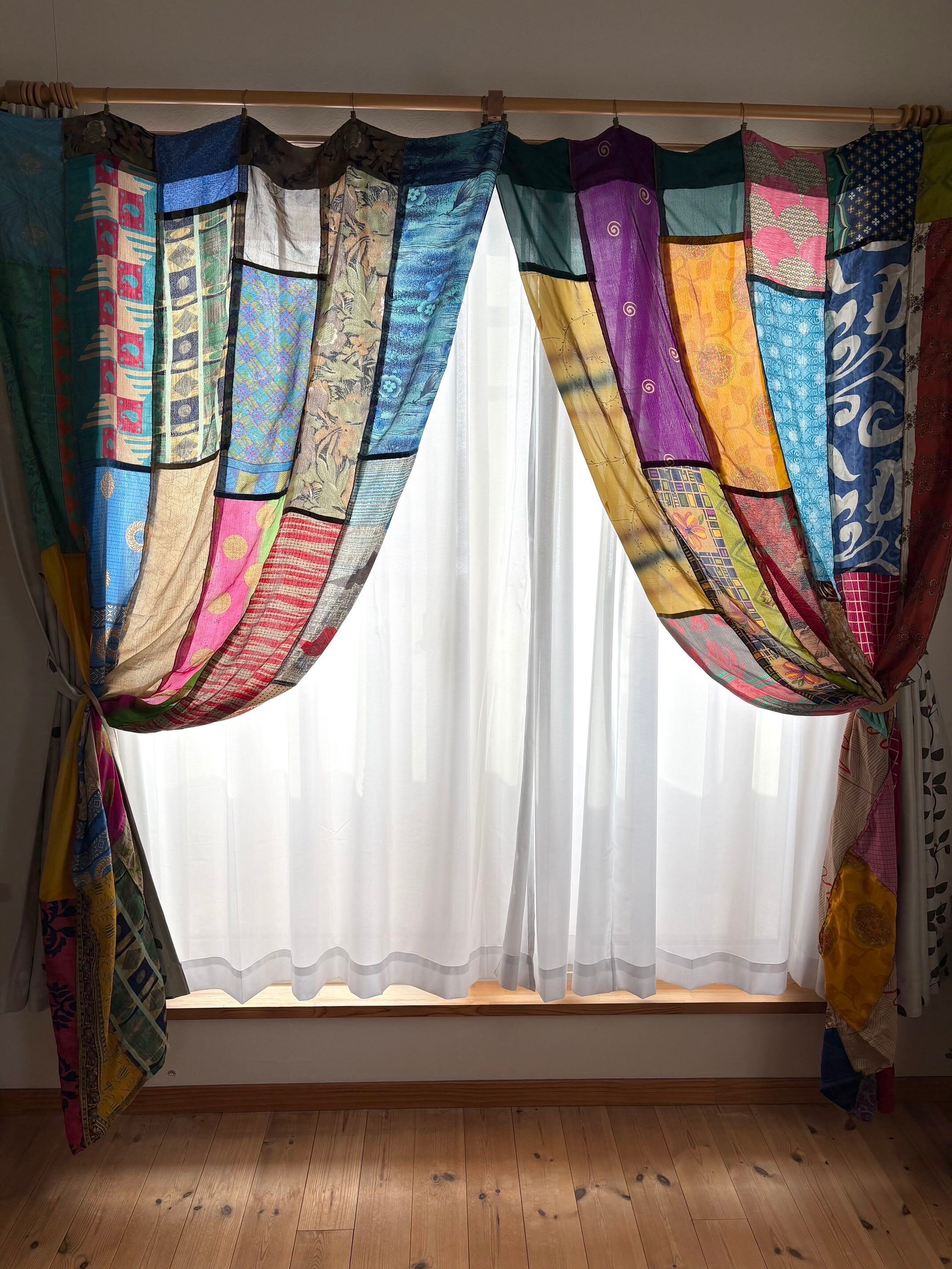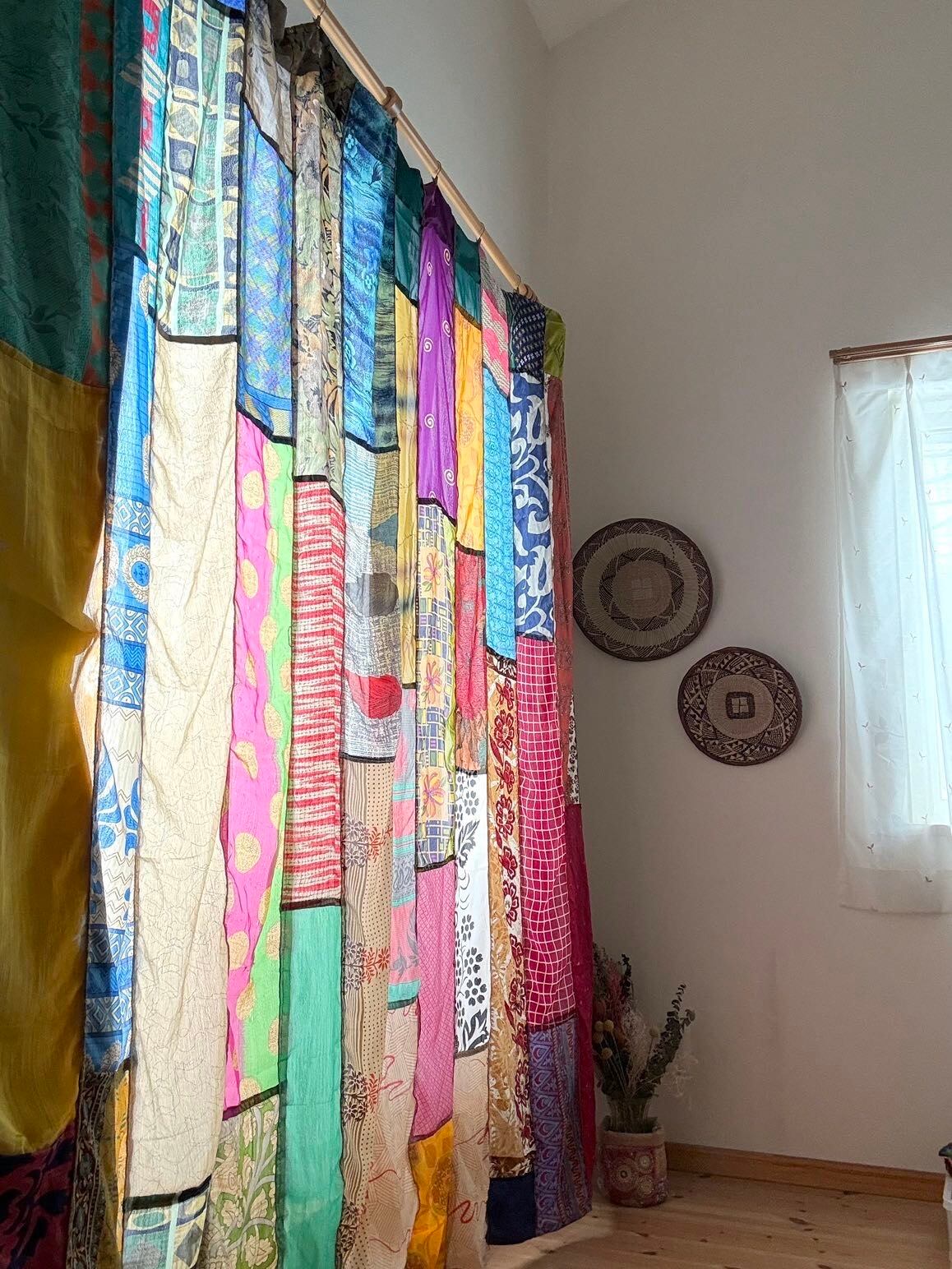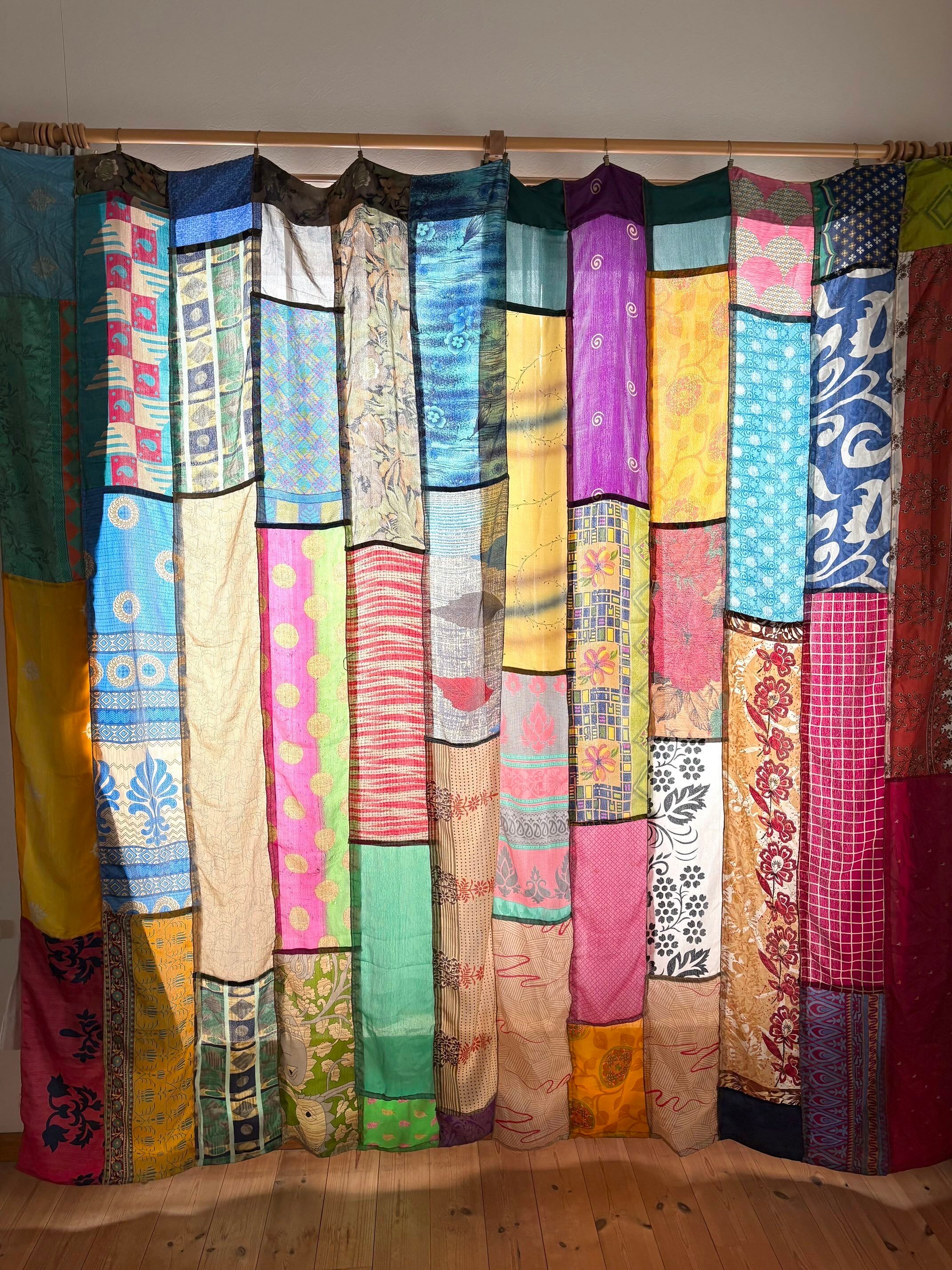 ヴィンテージサリーで出来たパッチワークシルクカーテン