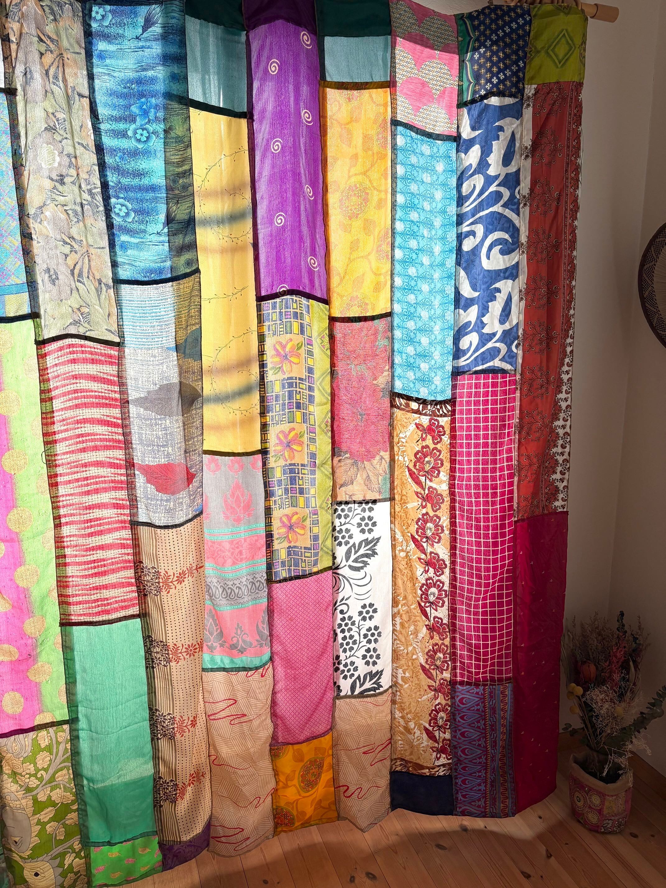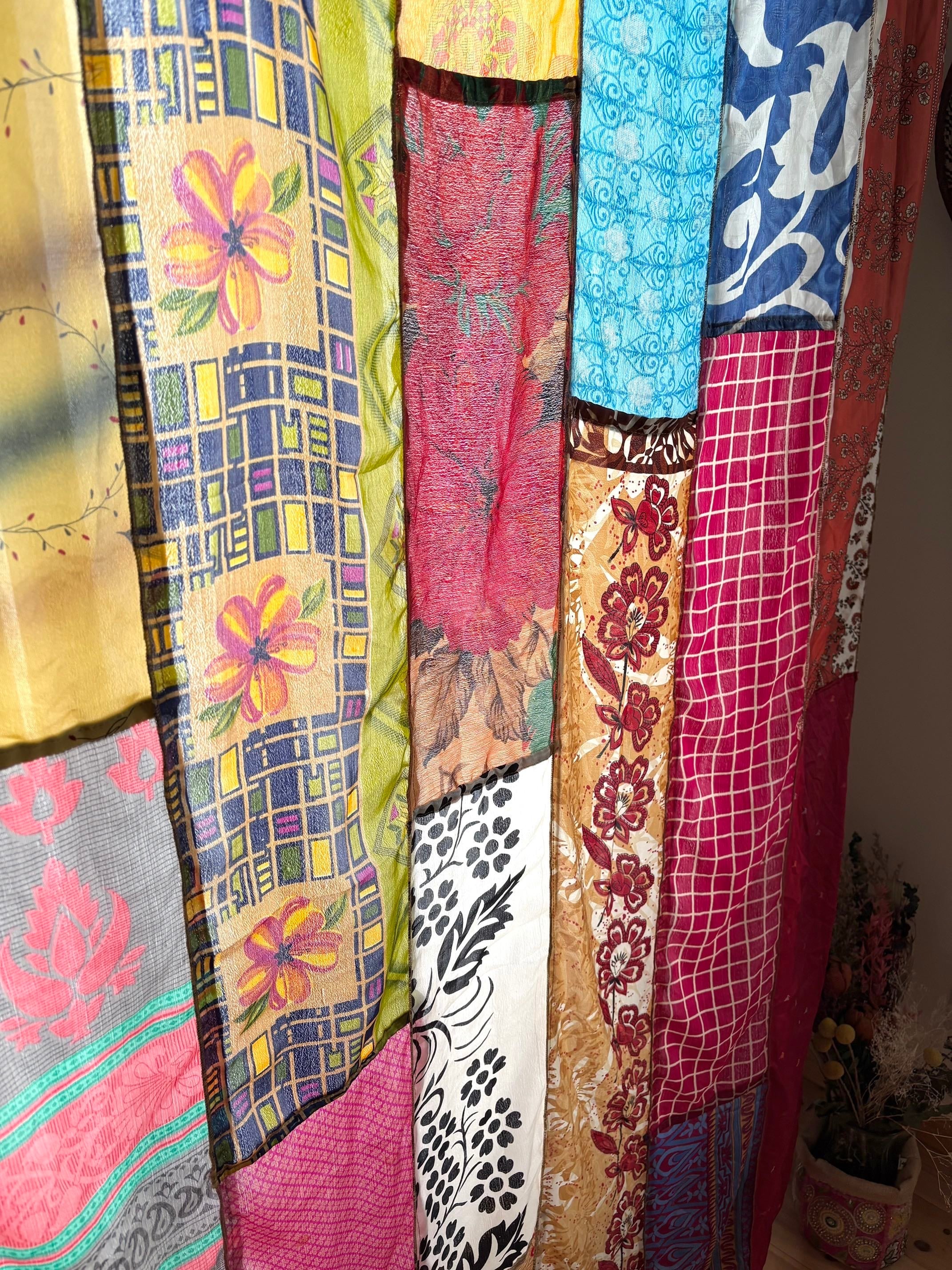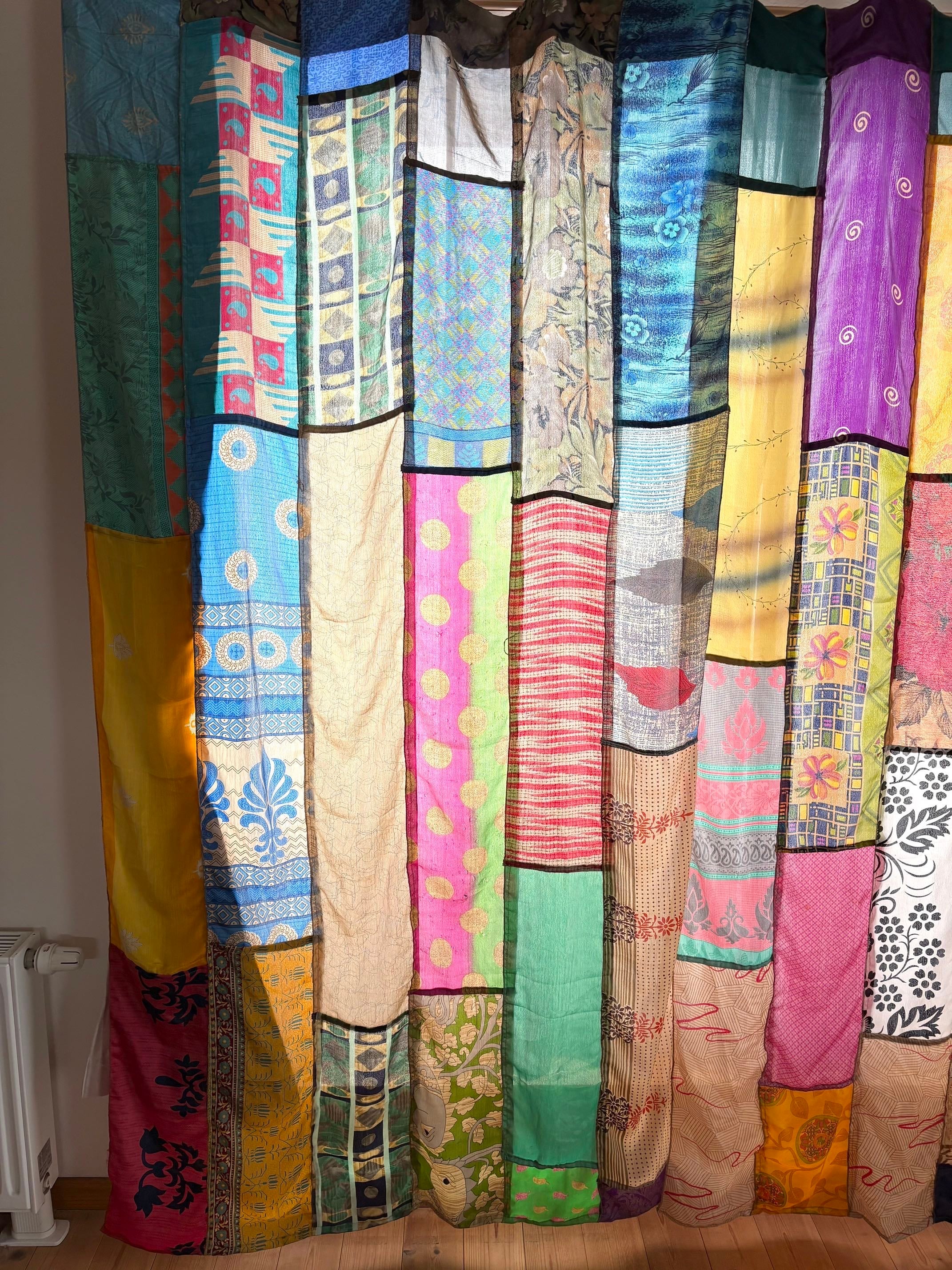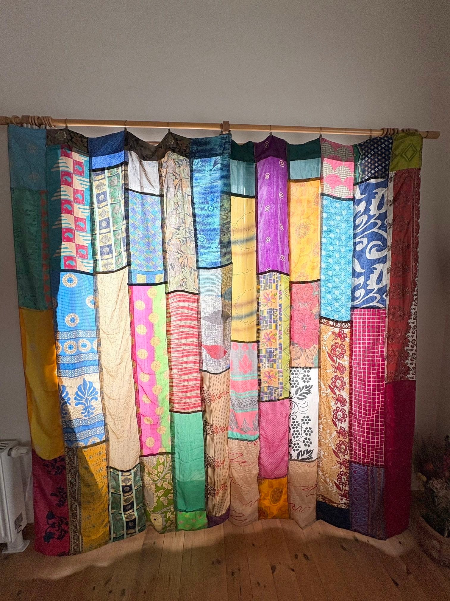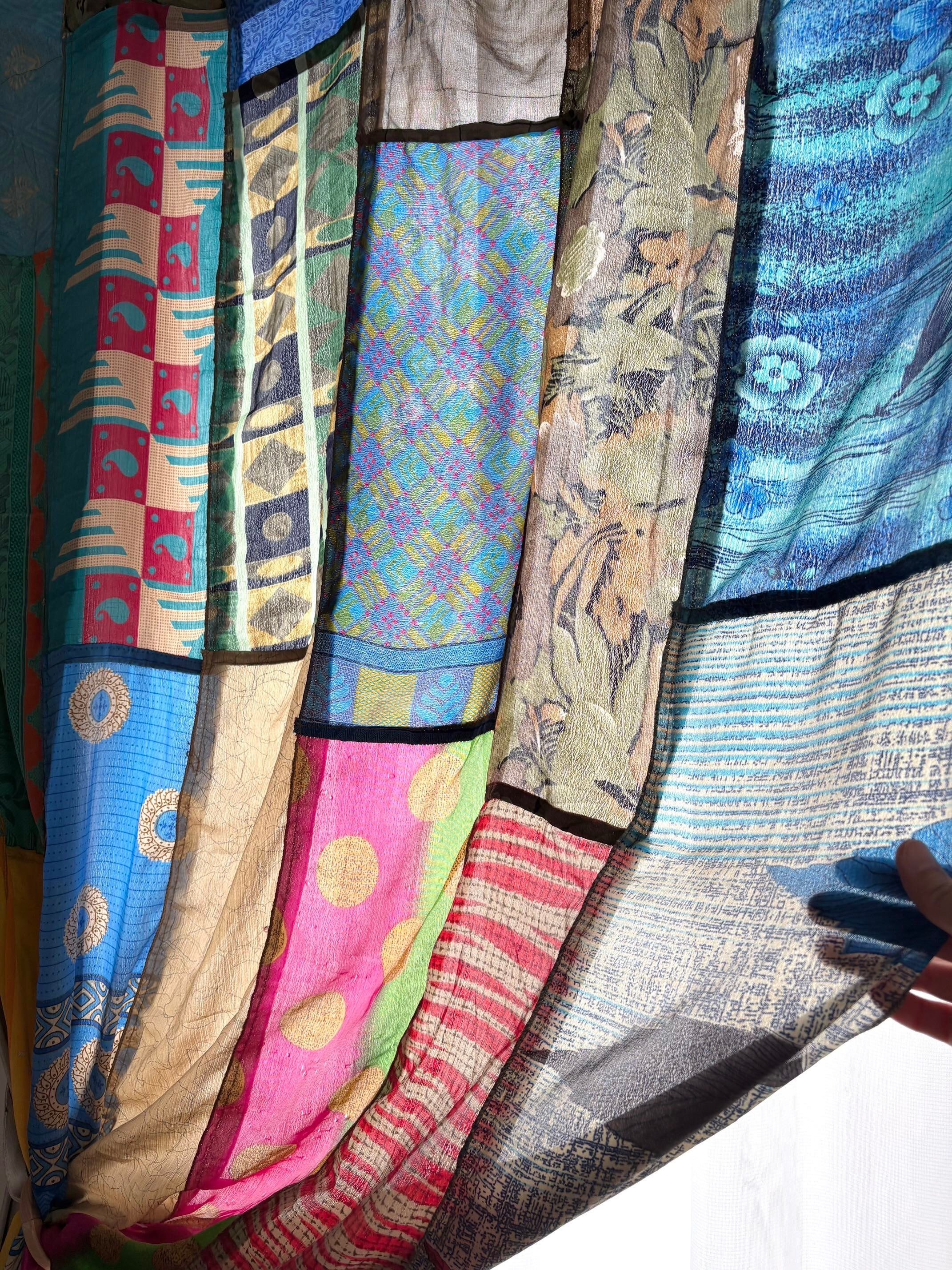 ヴィンテージサリーで出来たパッチワークシルクカーテン