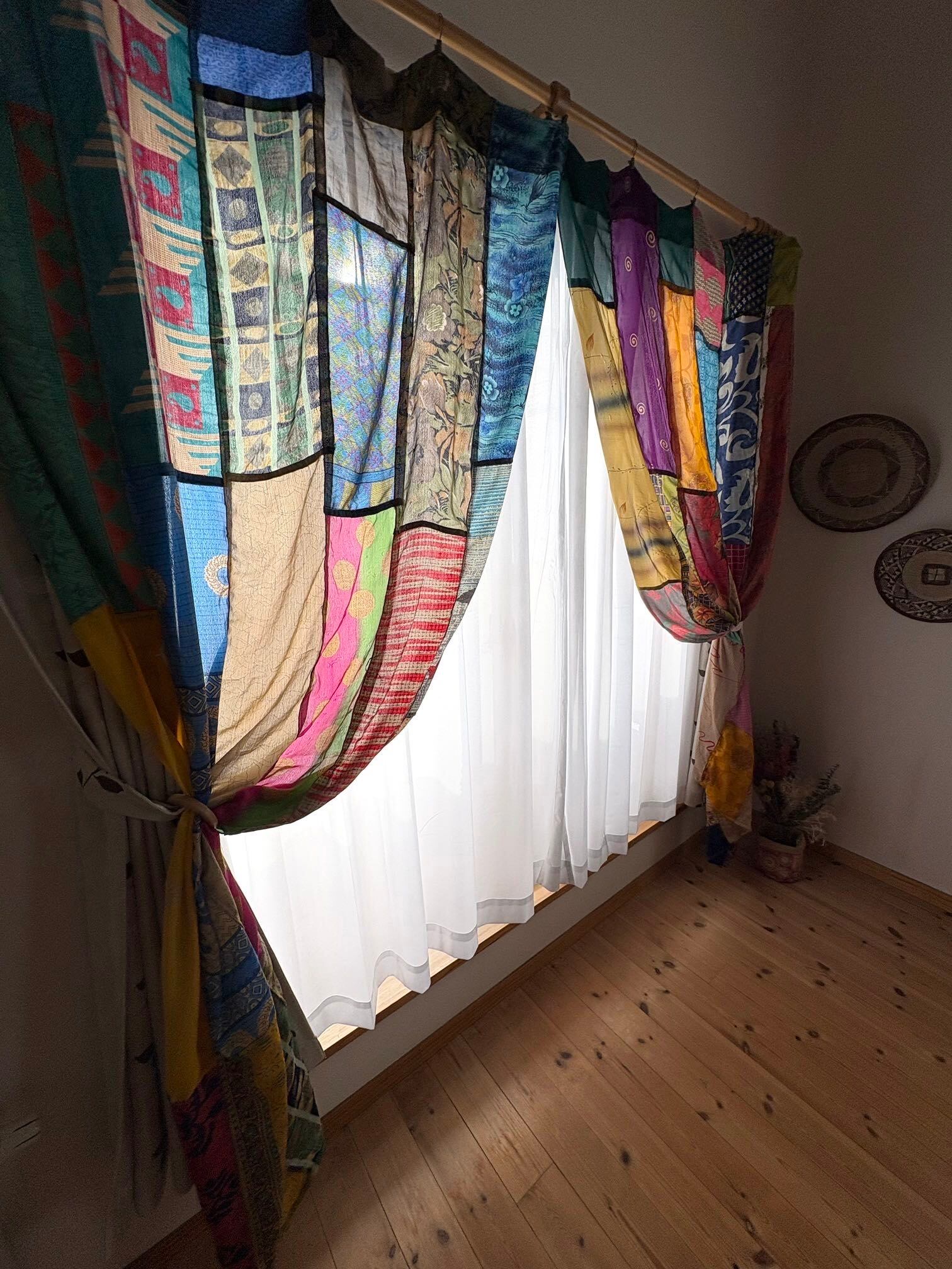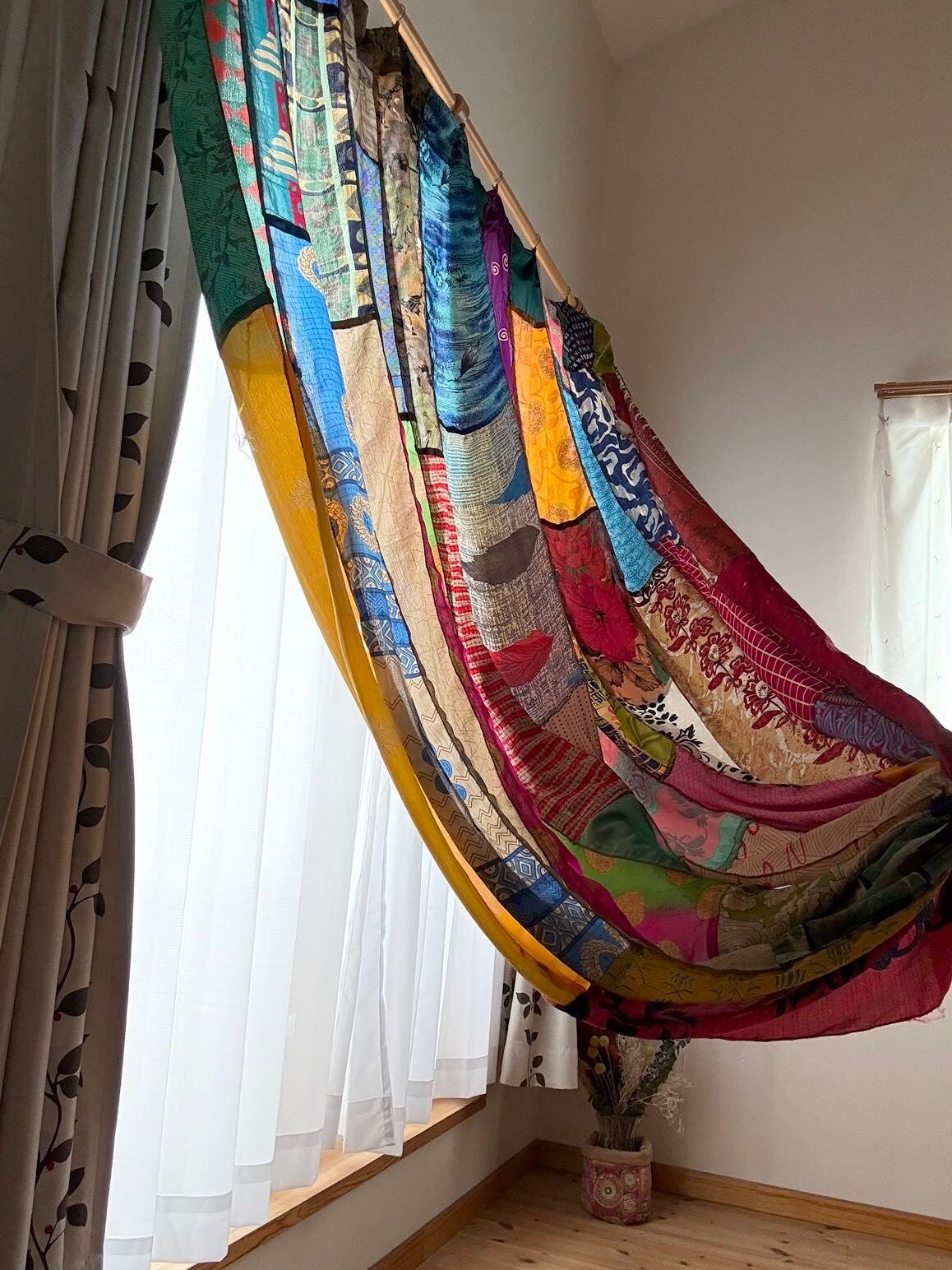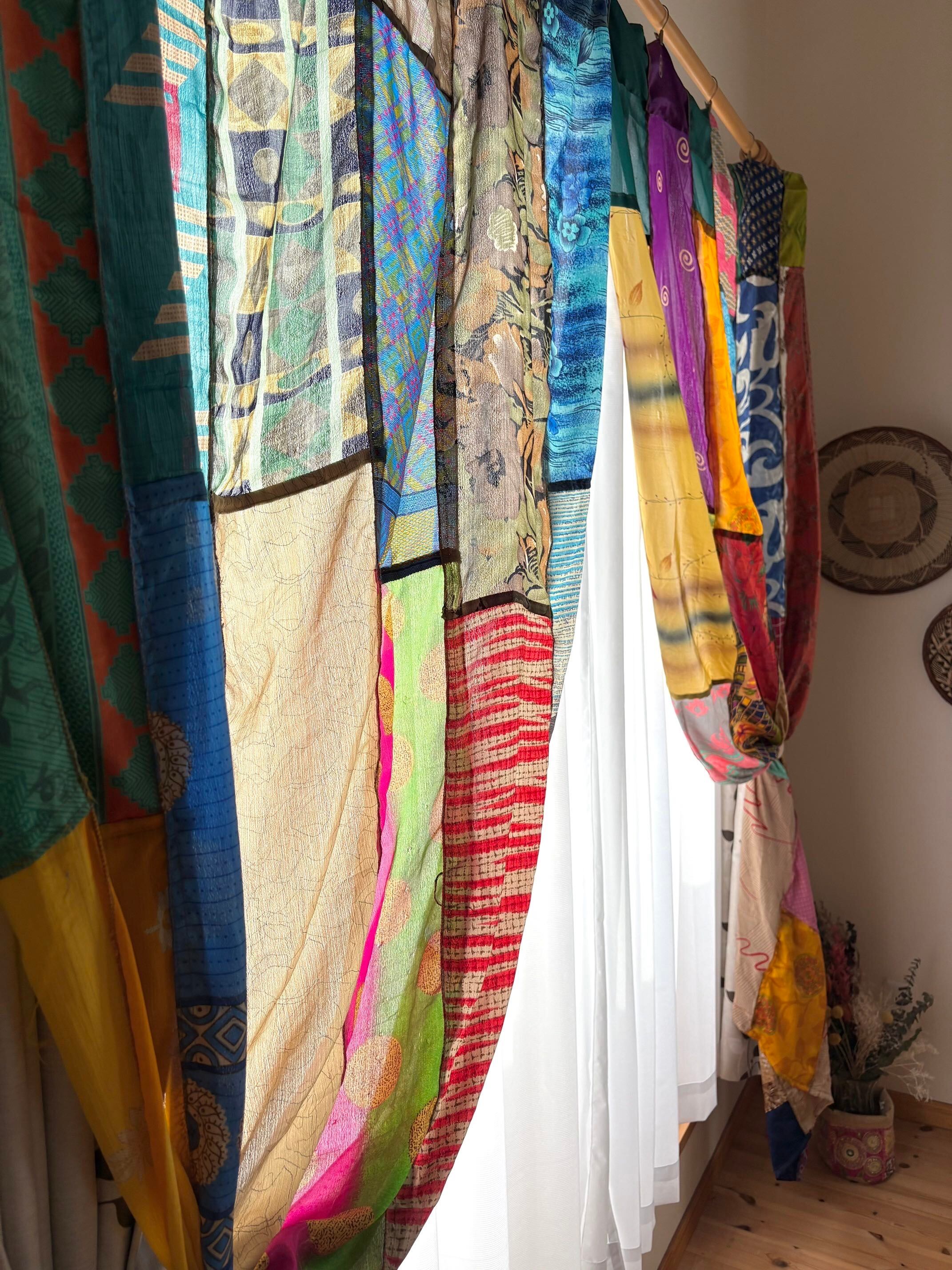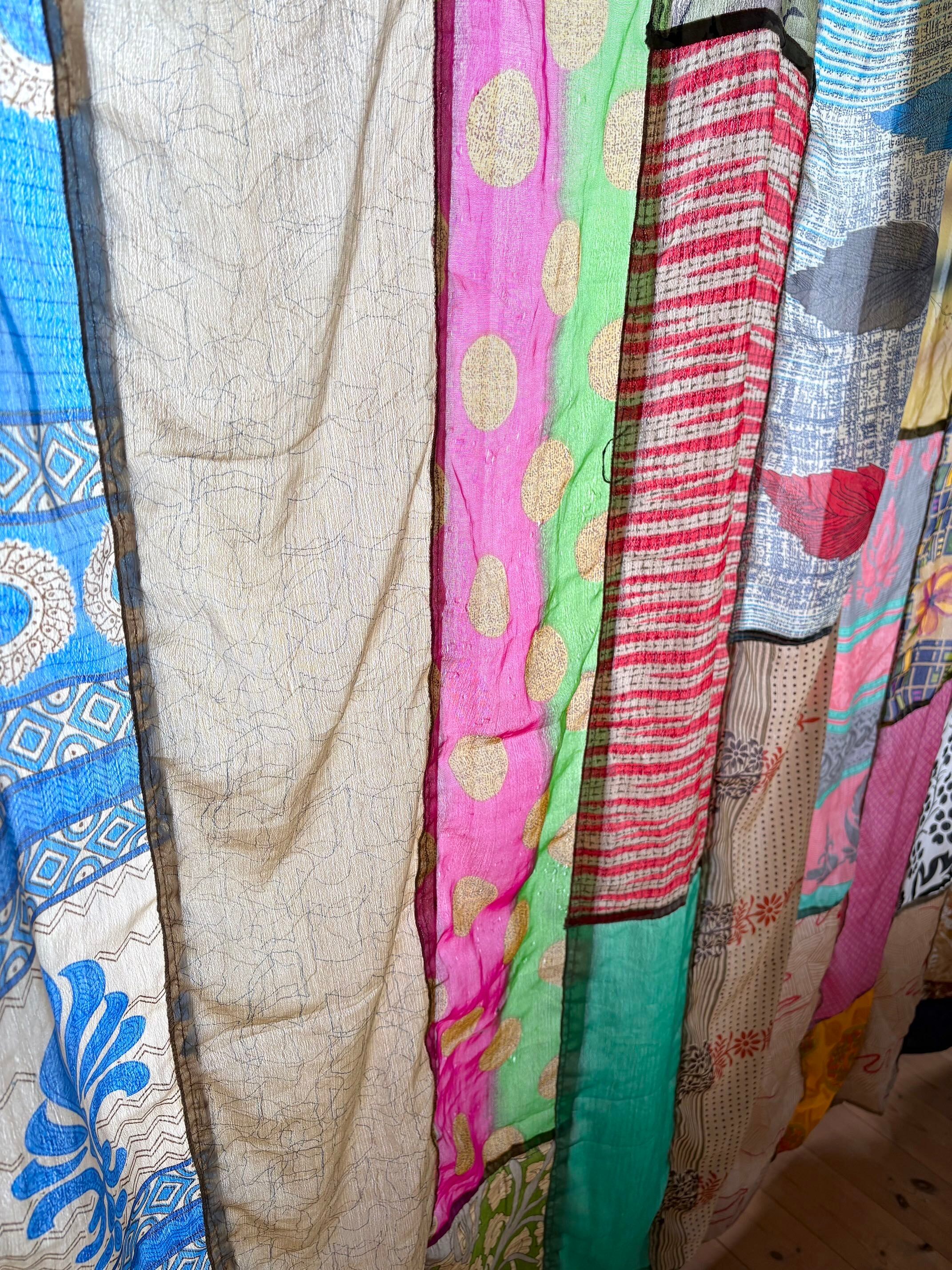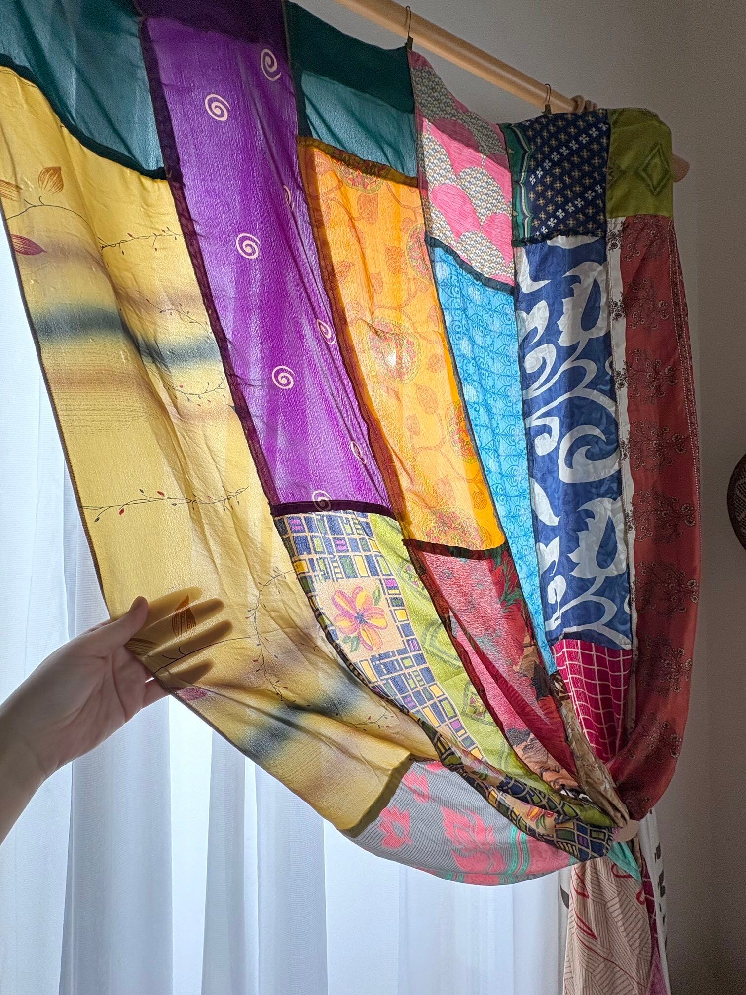 ヴィンテージサリーで出来たパッチワークシルクカーテン