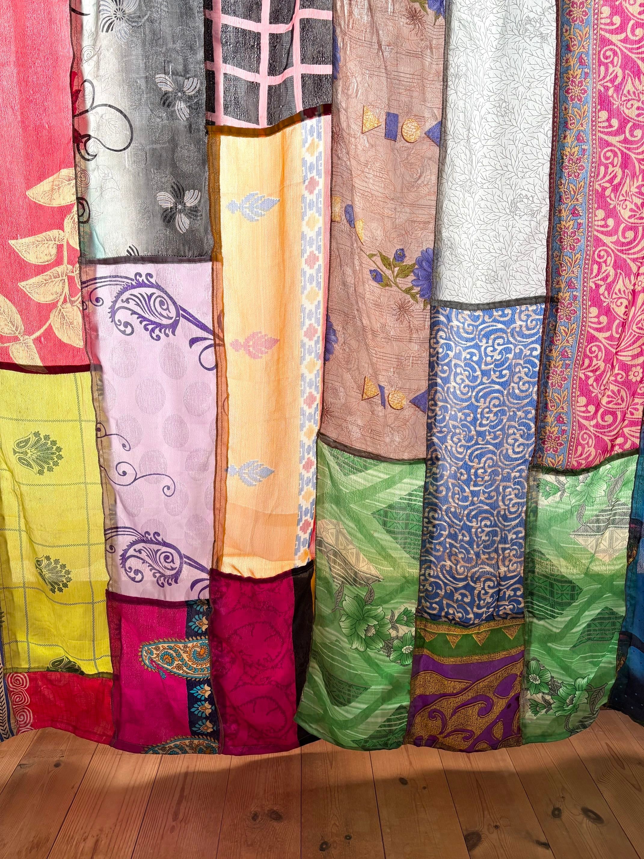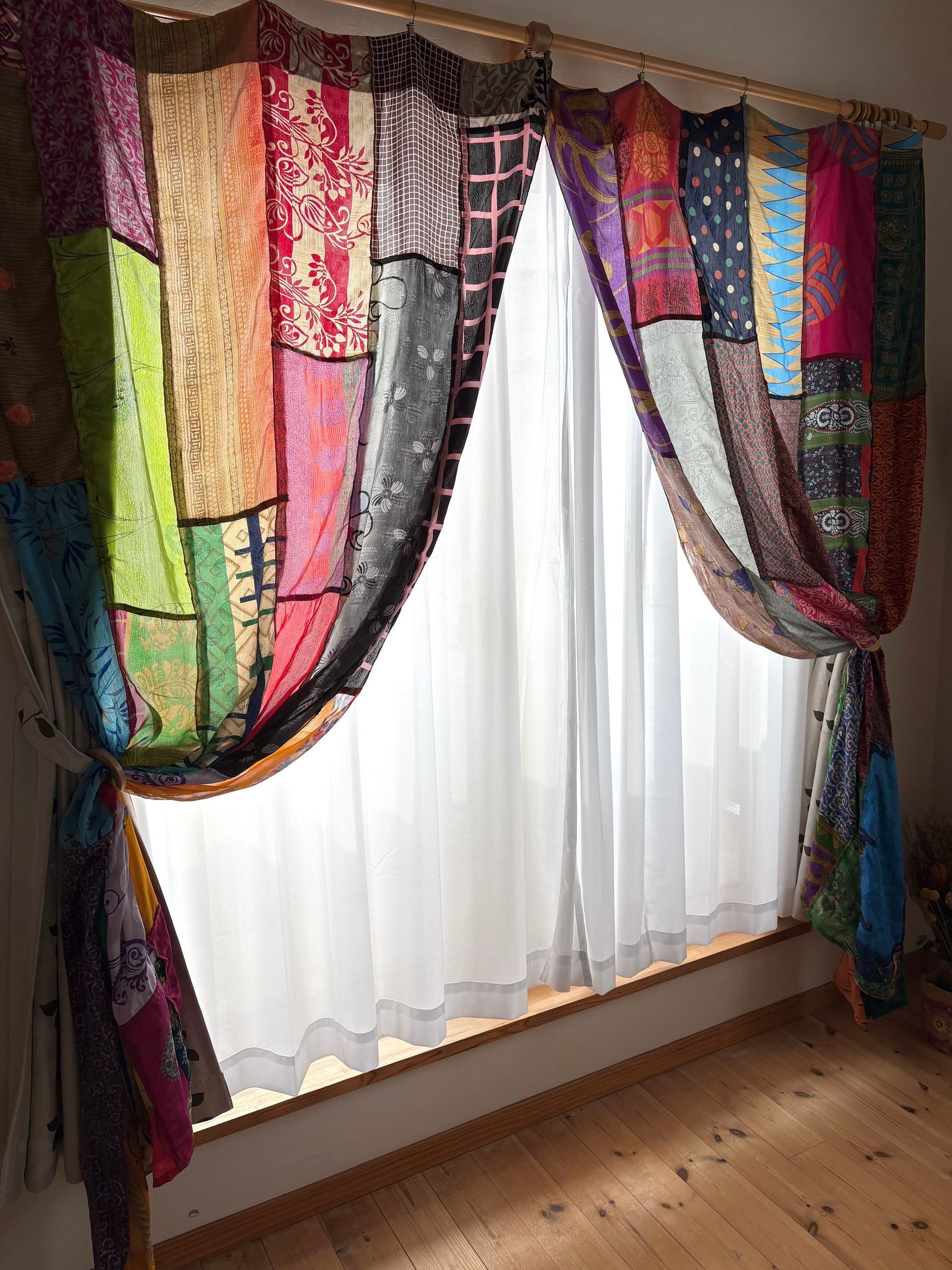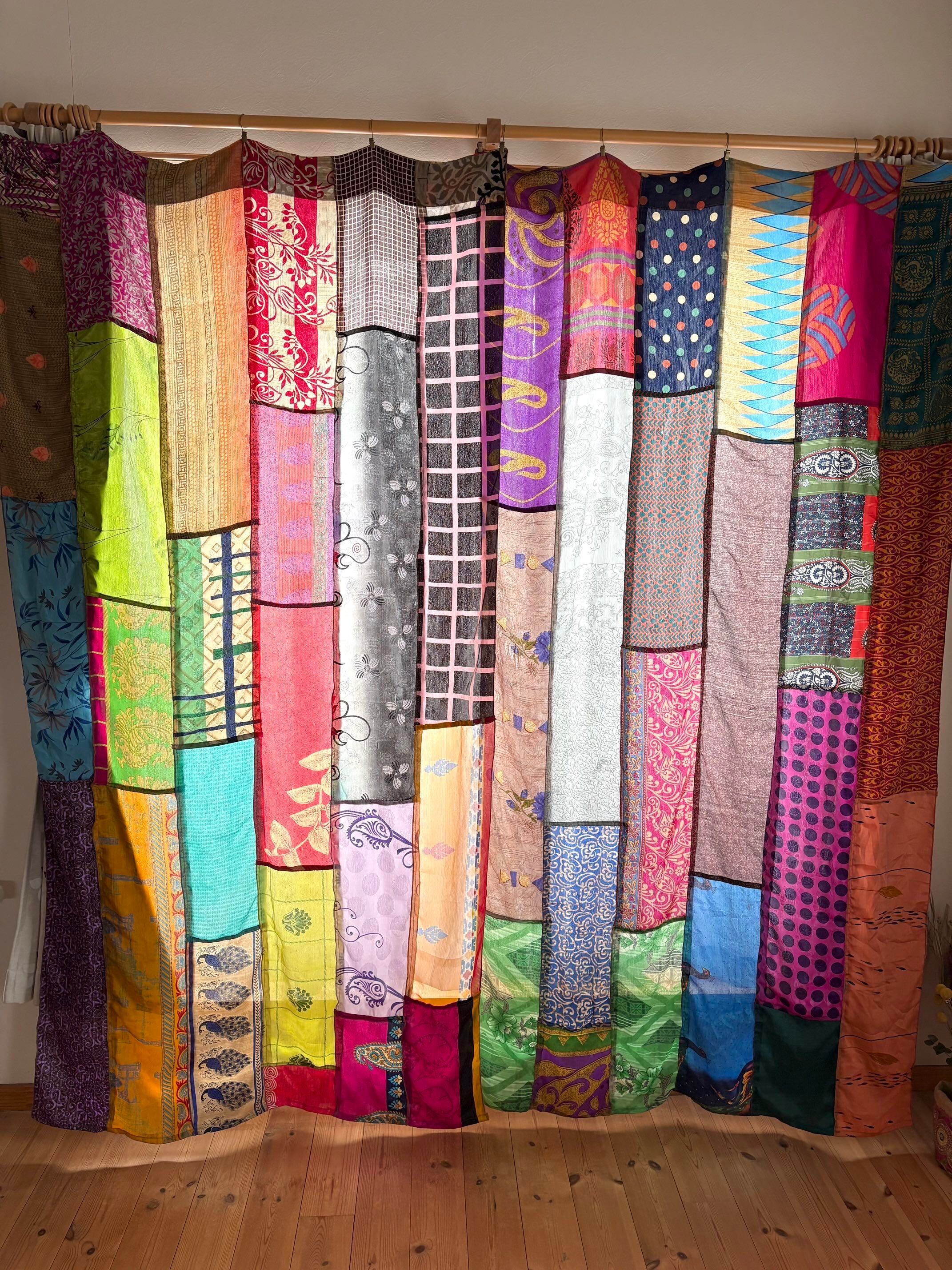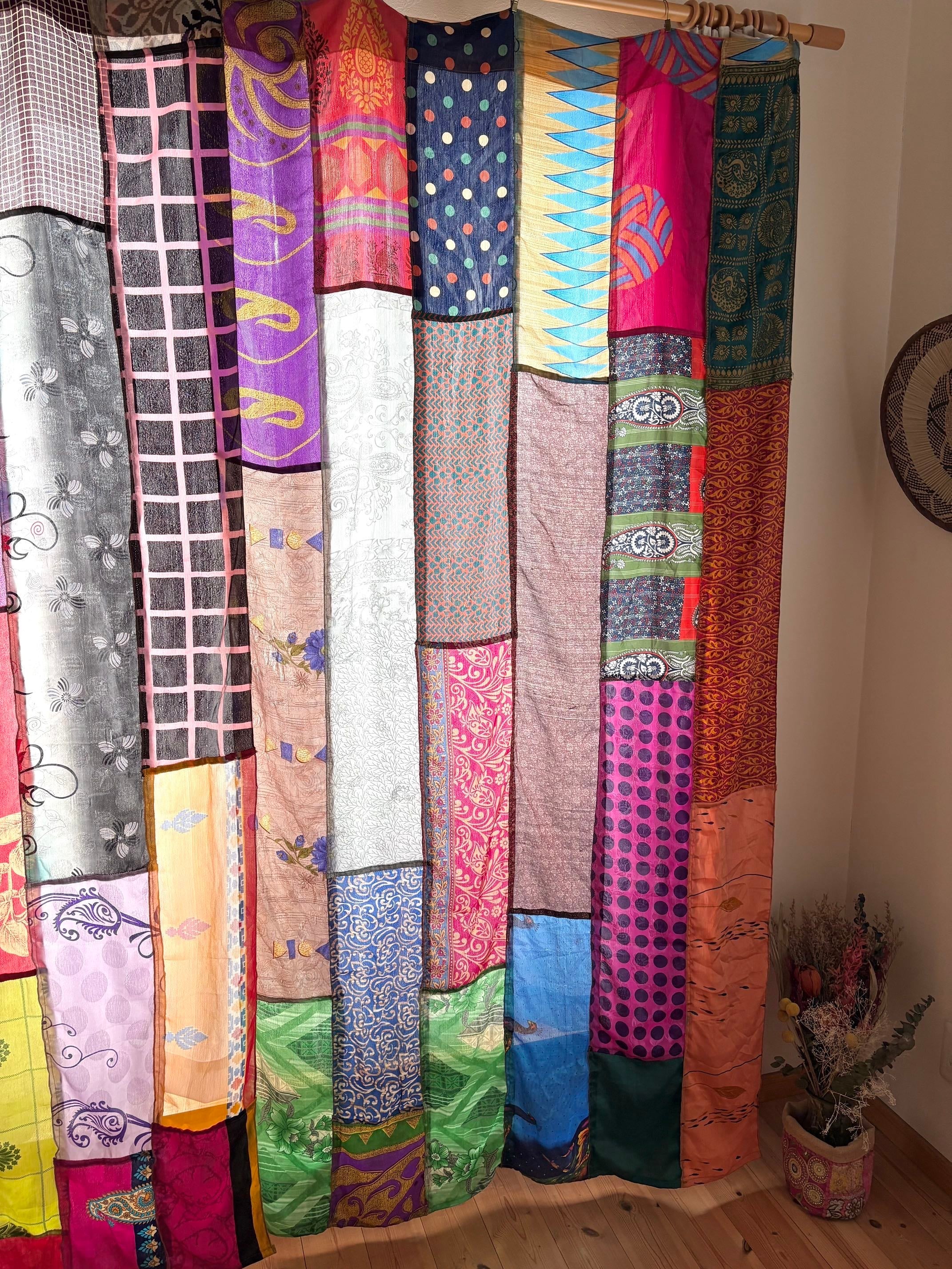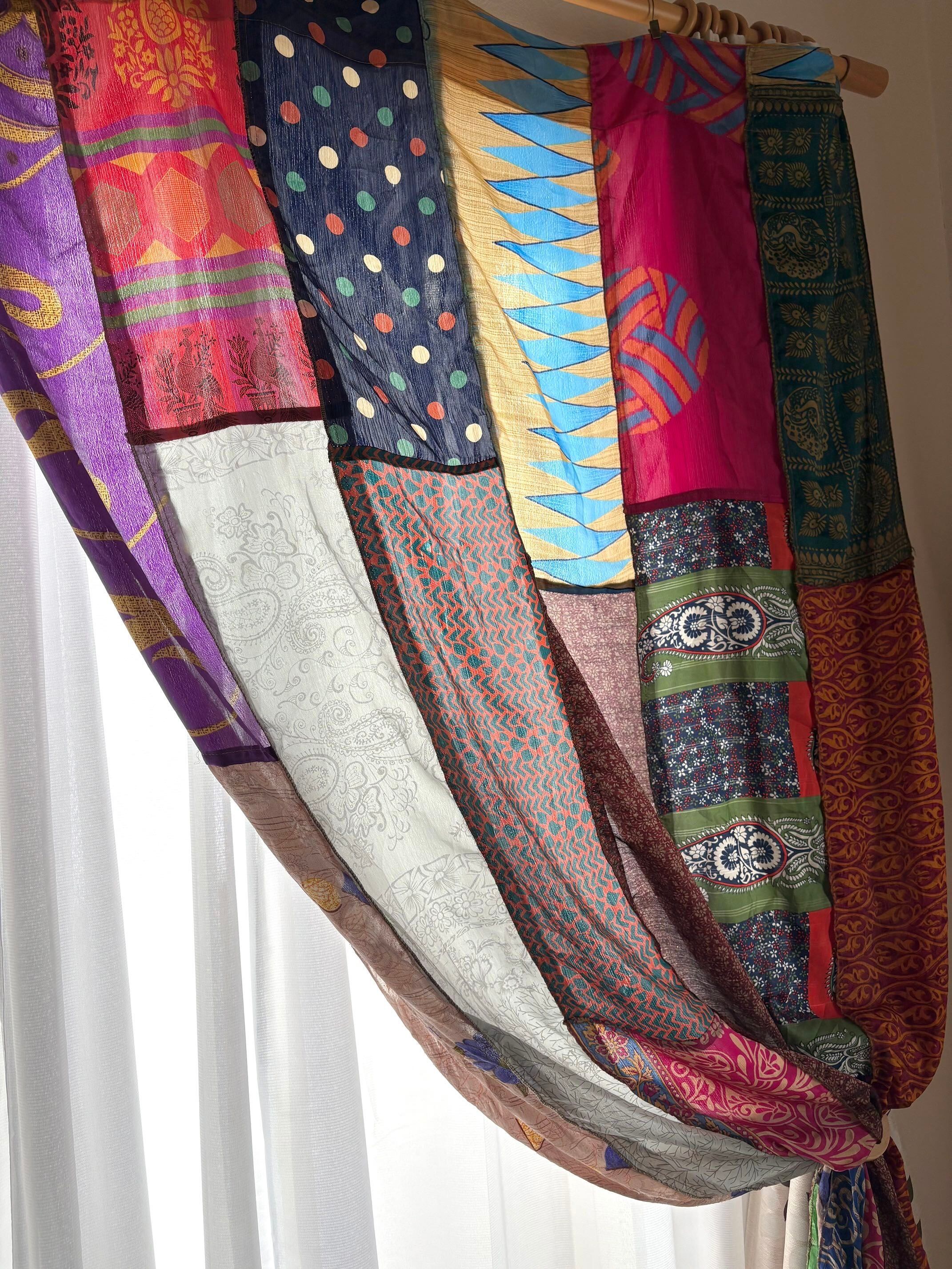 ヴィンテージサリーで出来たパッチワークシルクカーテン