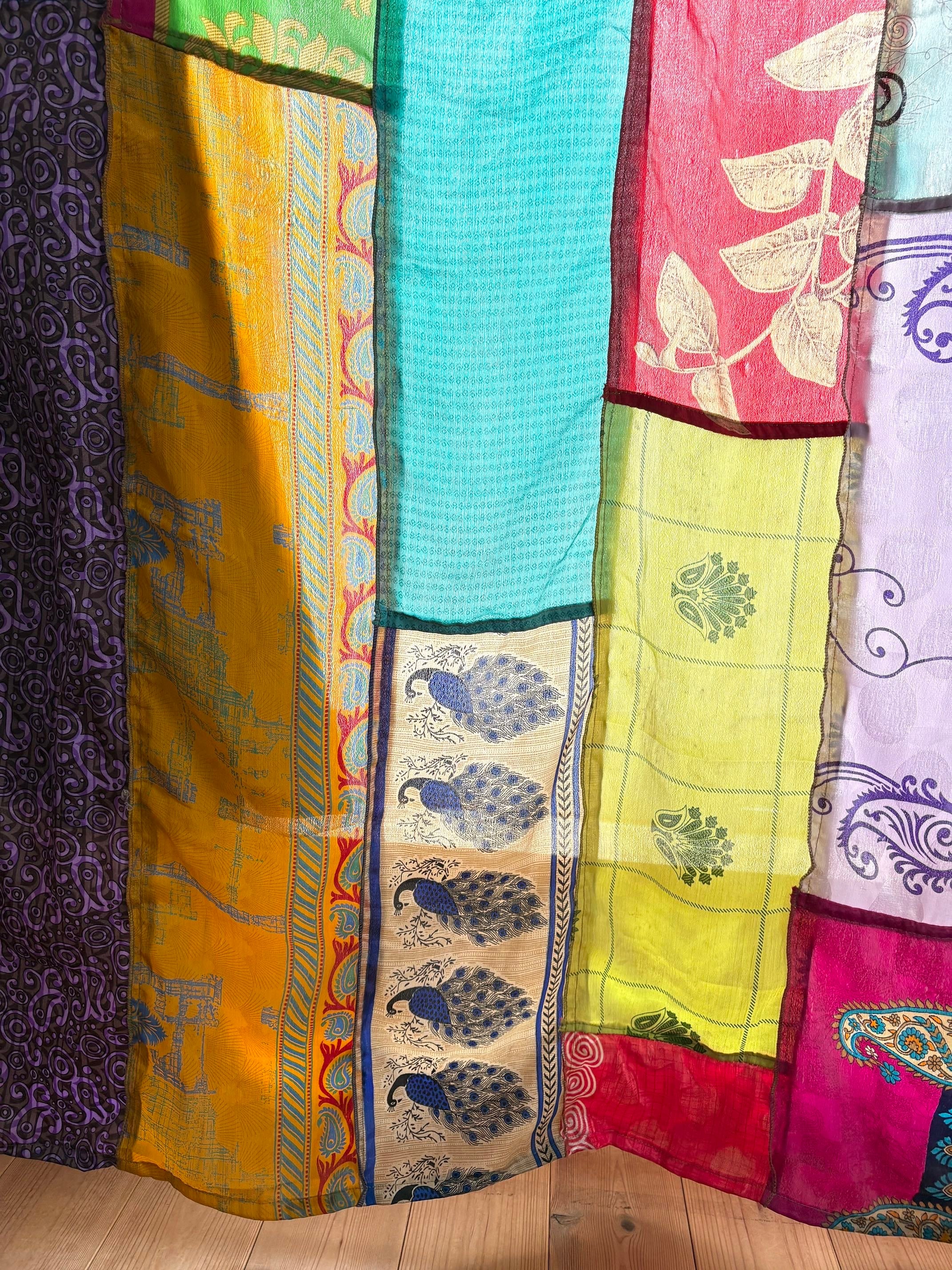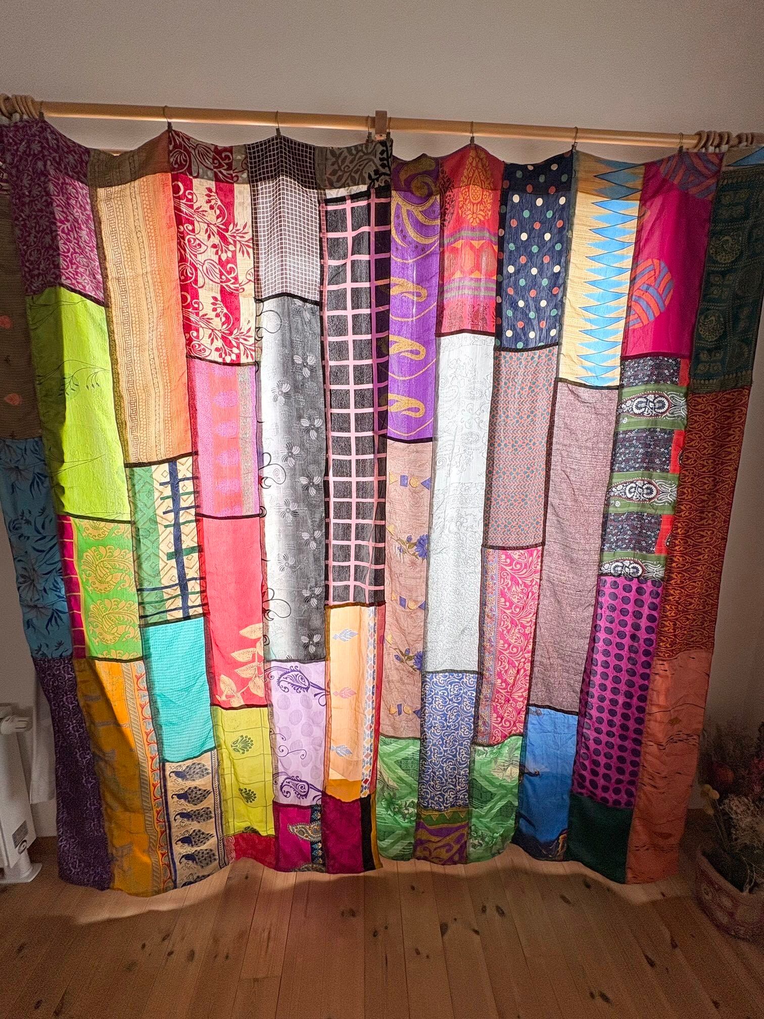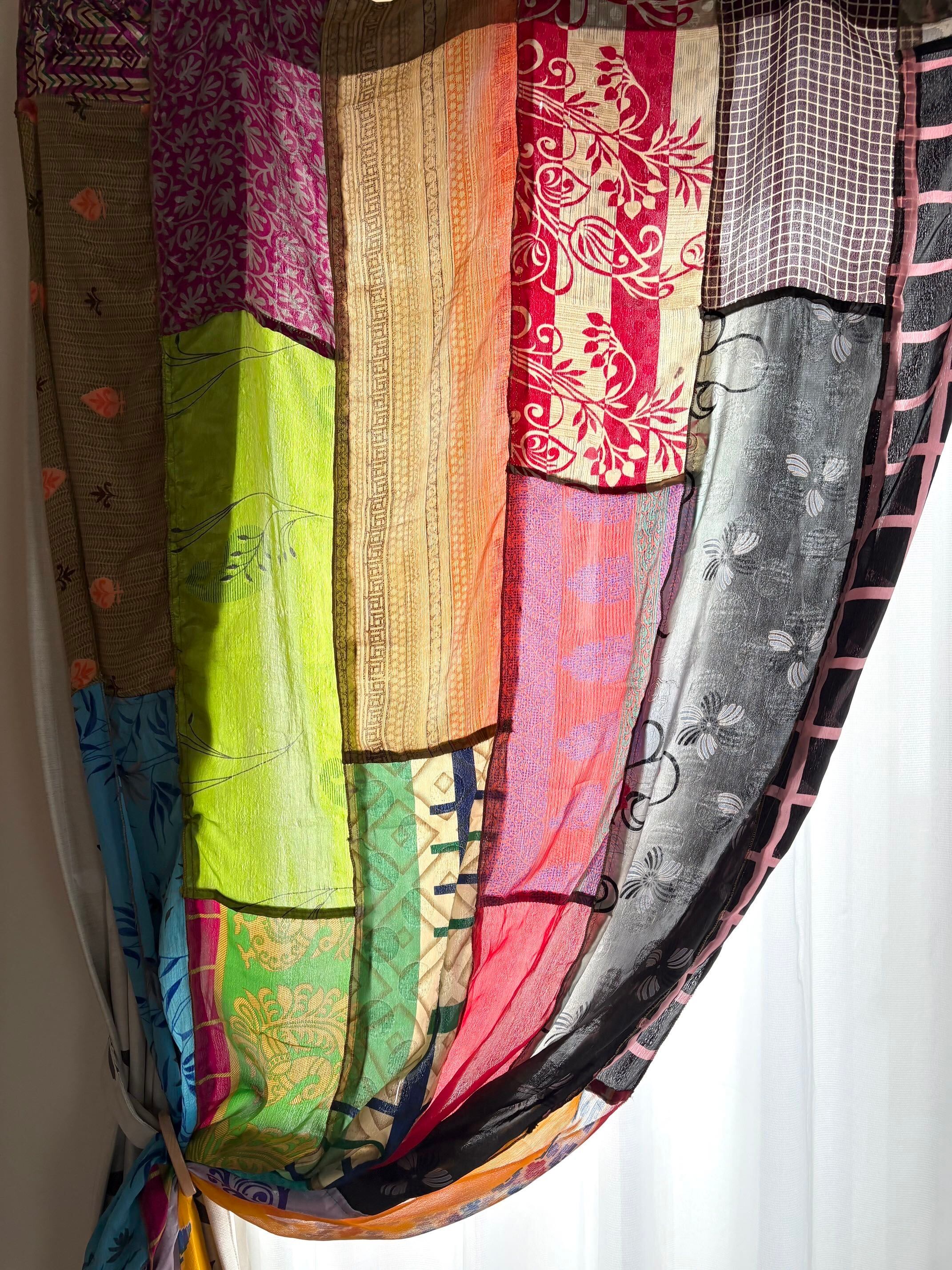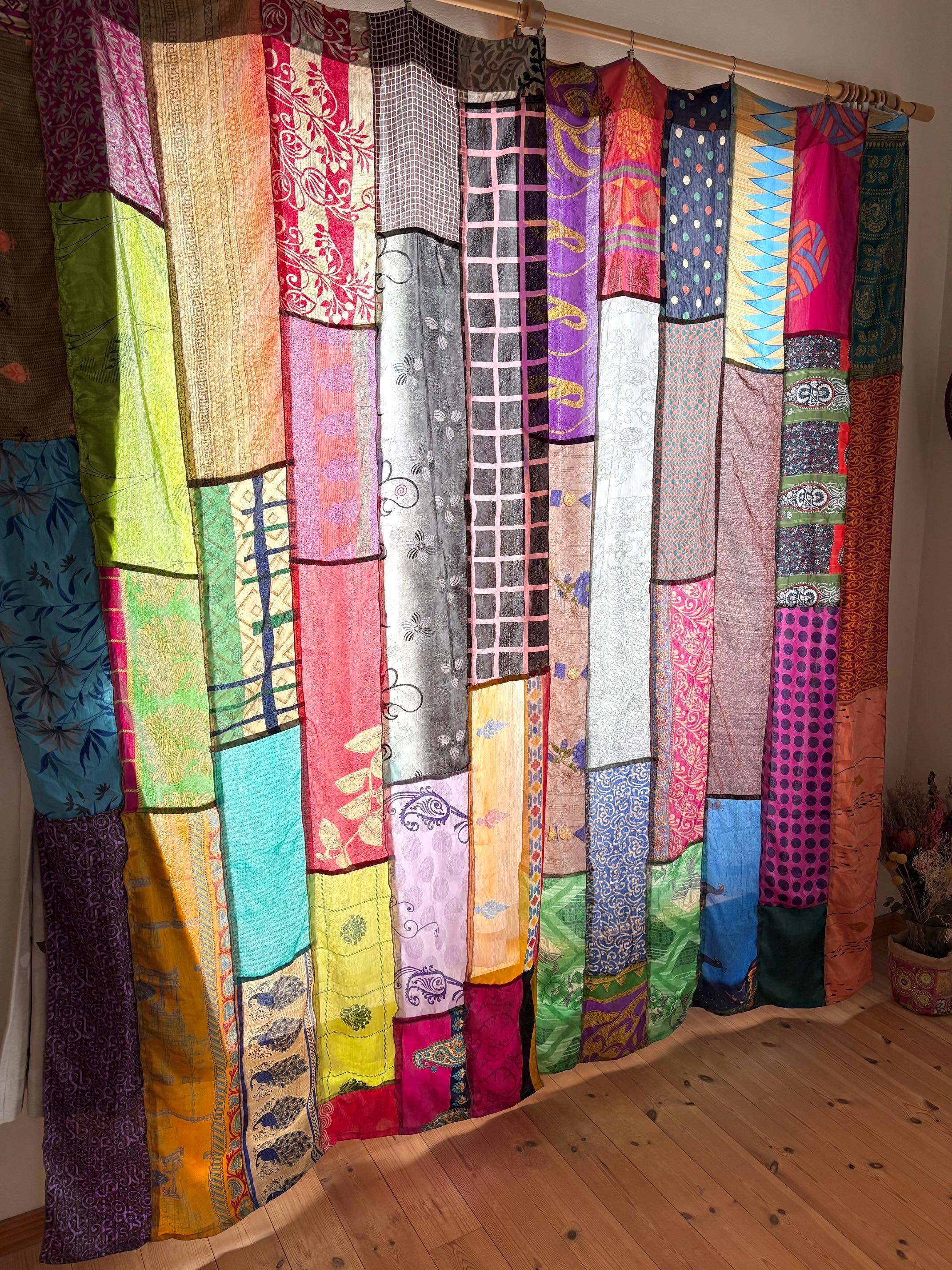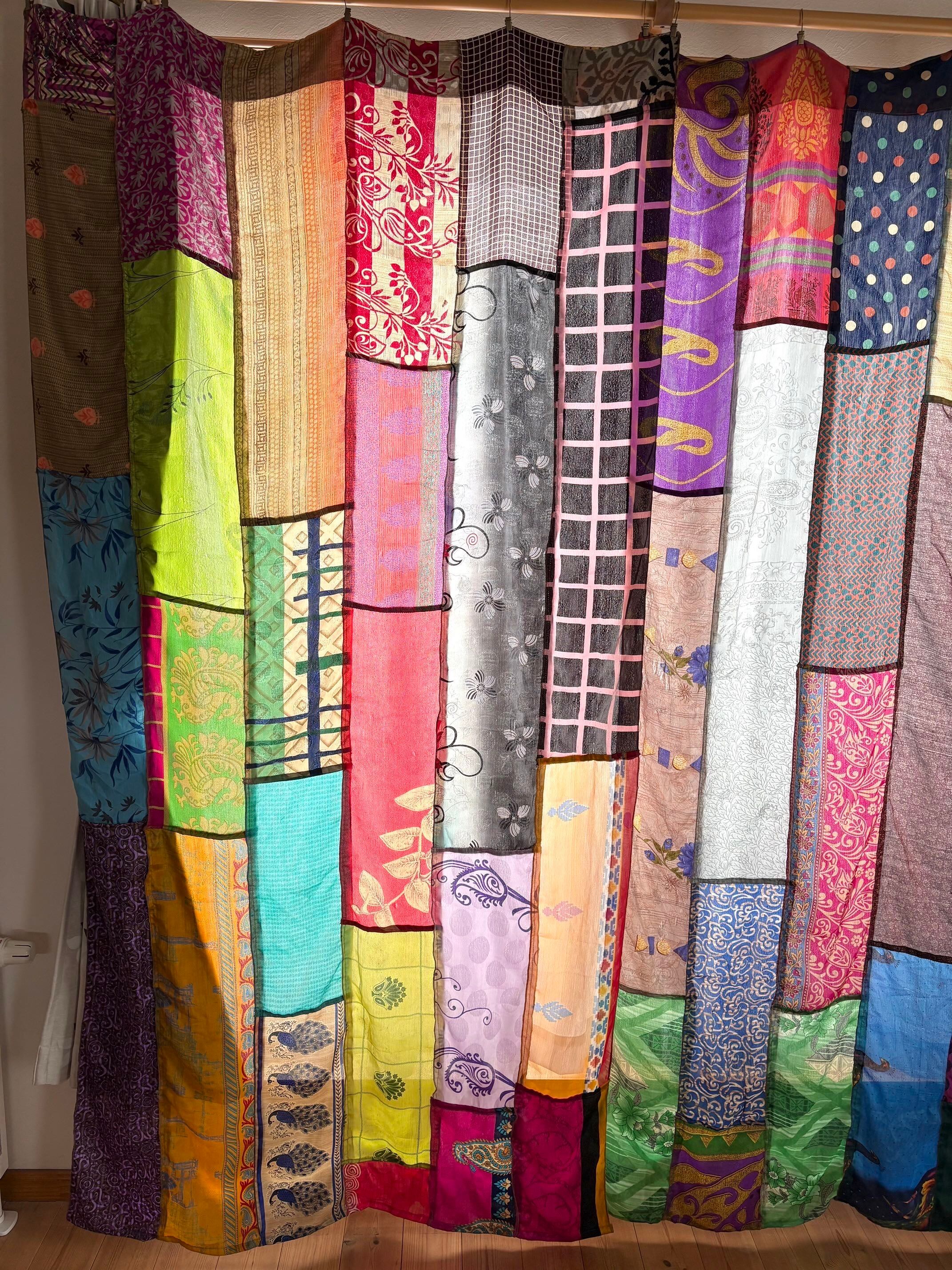 ヴィンテージサリーで出来たパッチワークシルクカーテン