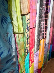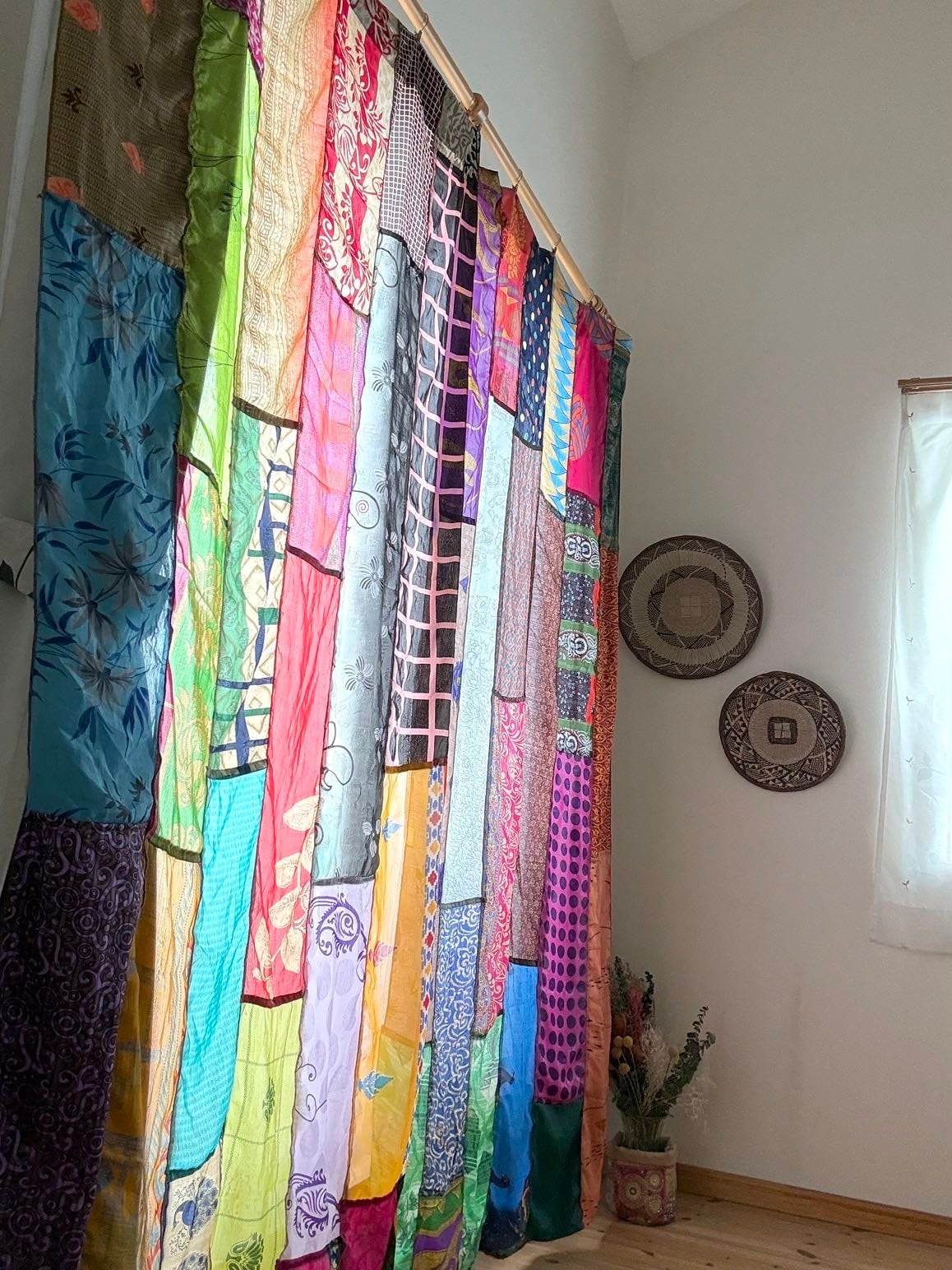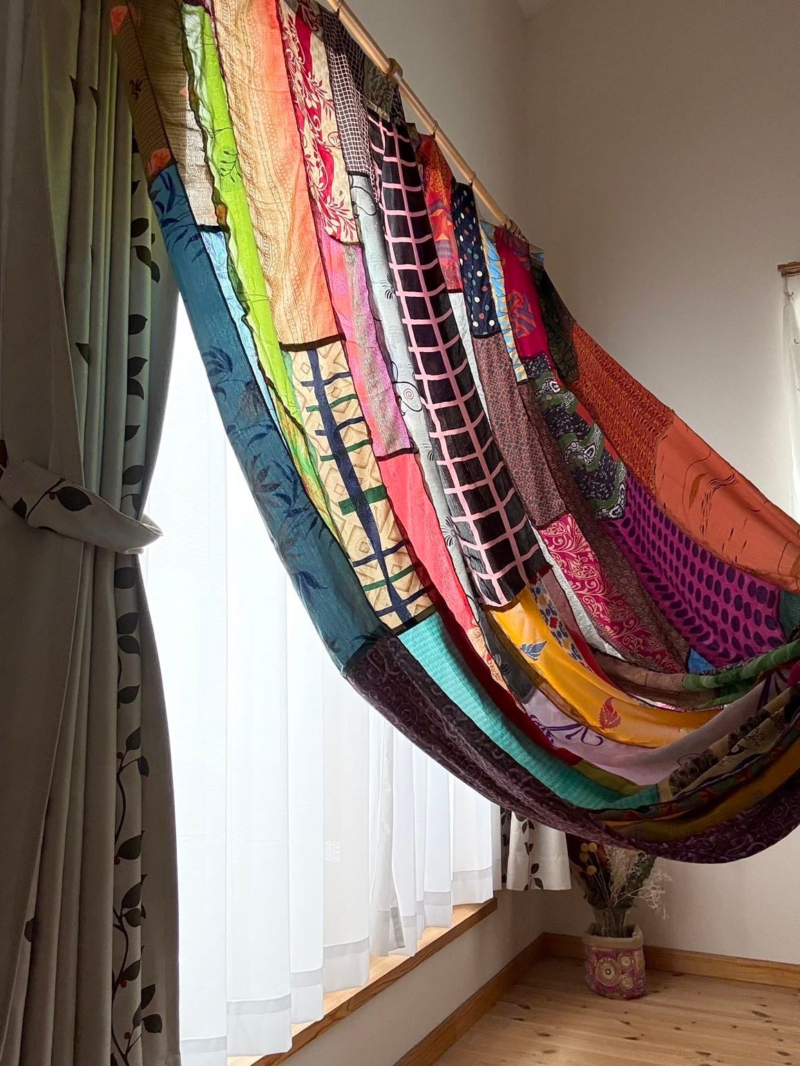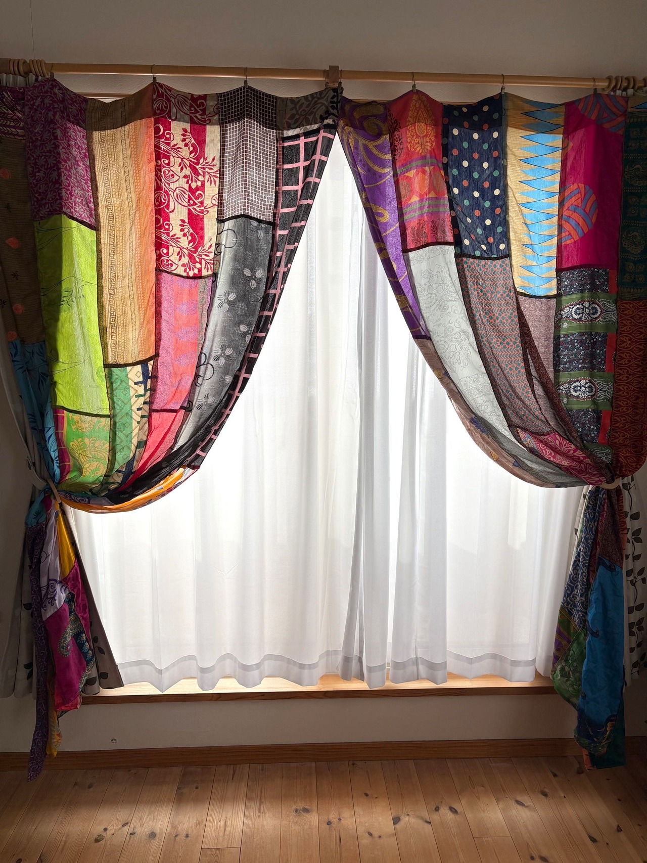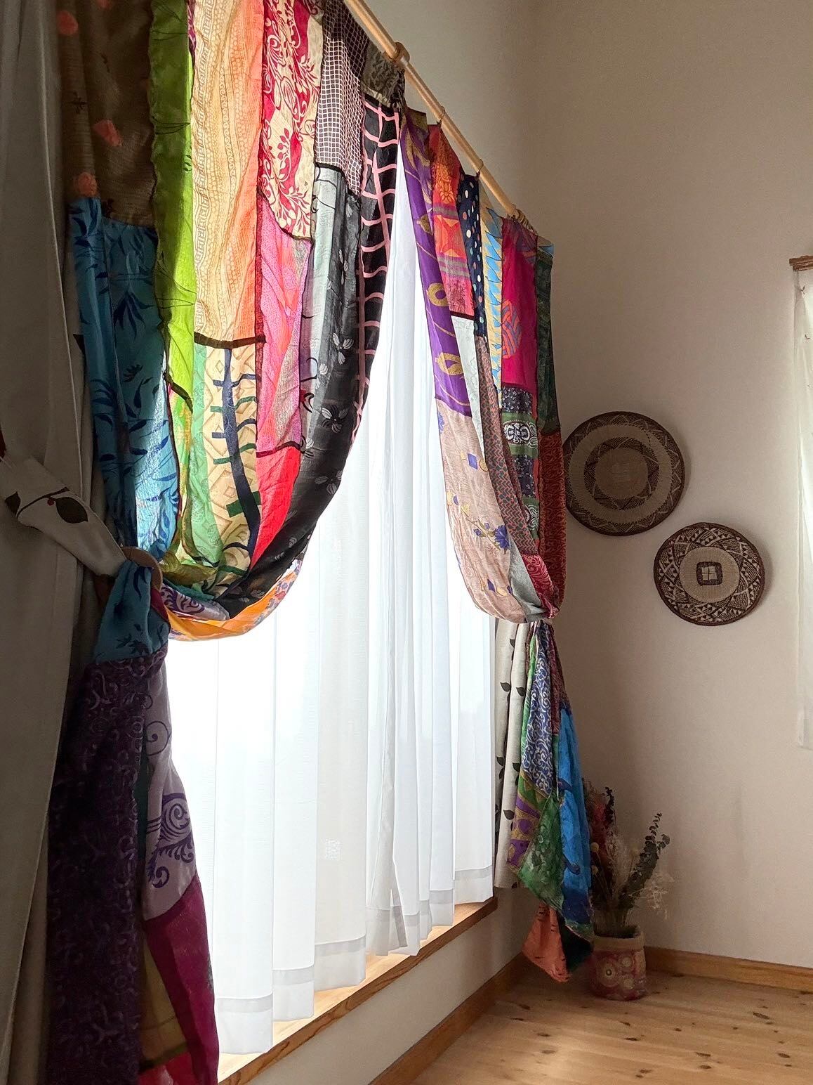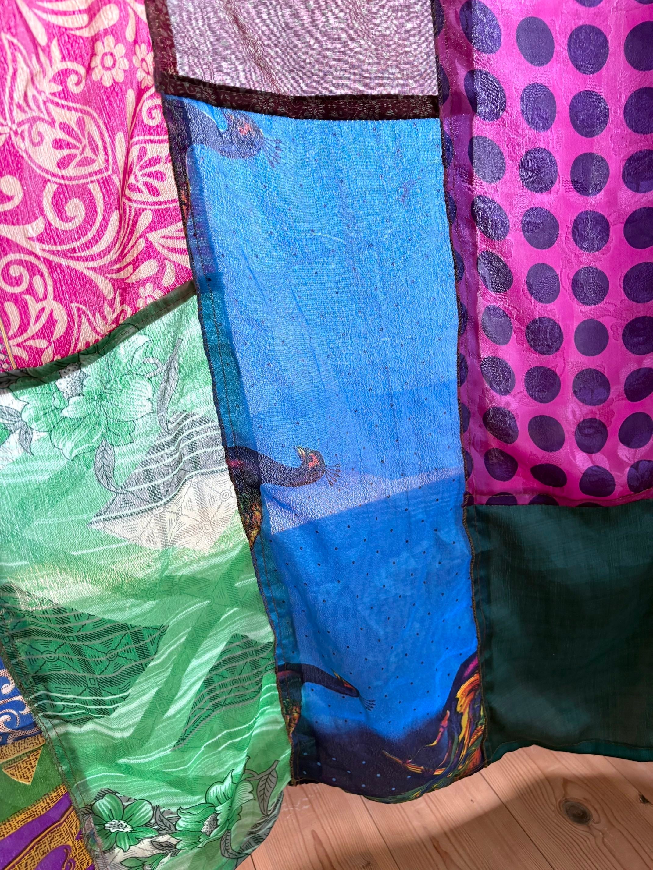 ヴィンテージサリーで出来たパッチワークシルクカーテン