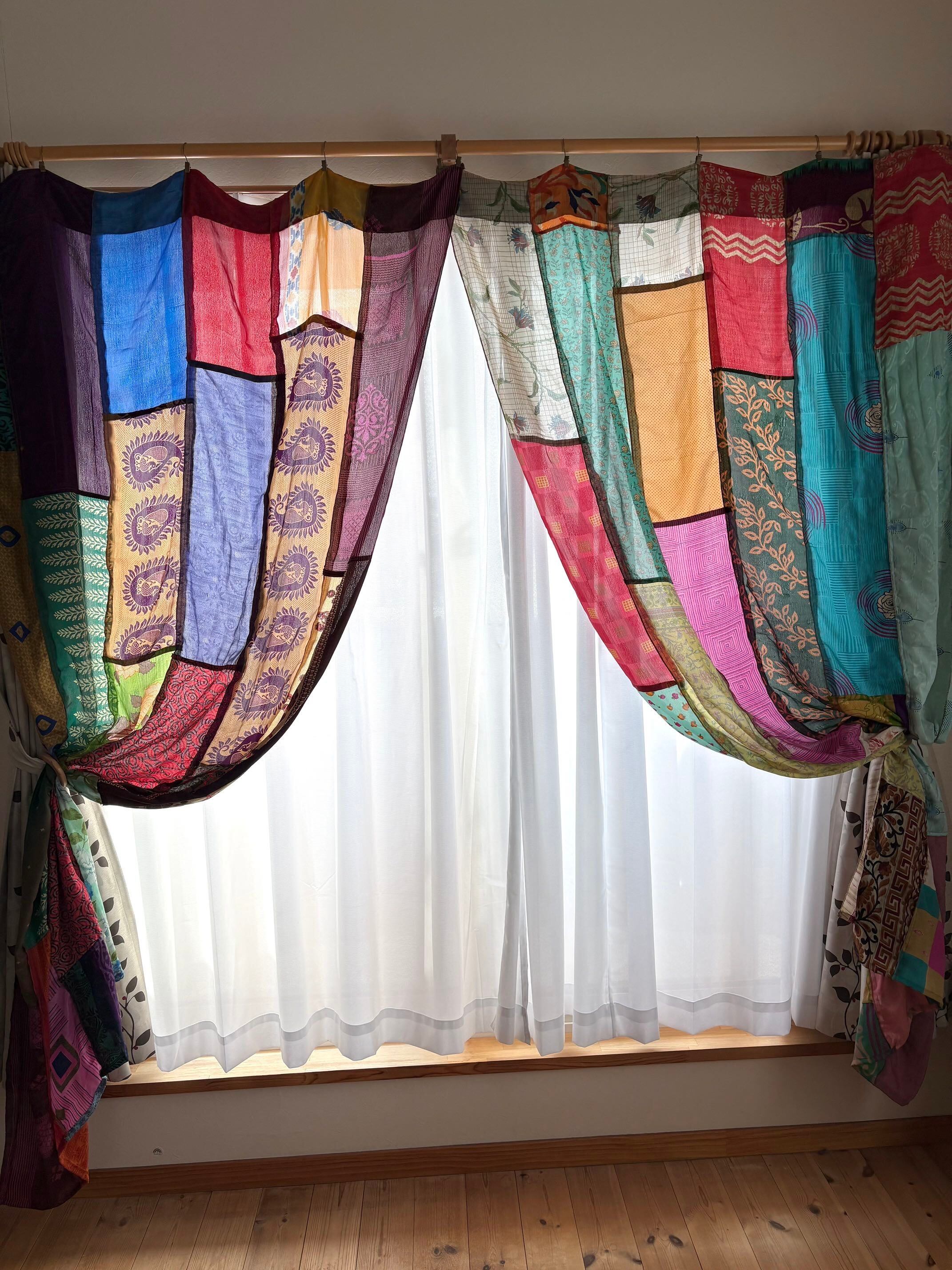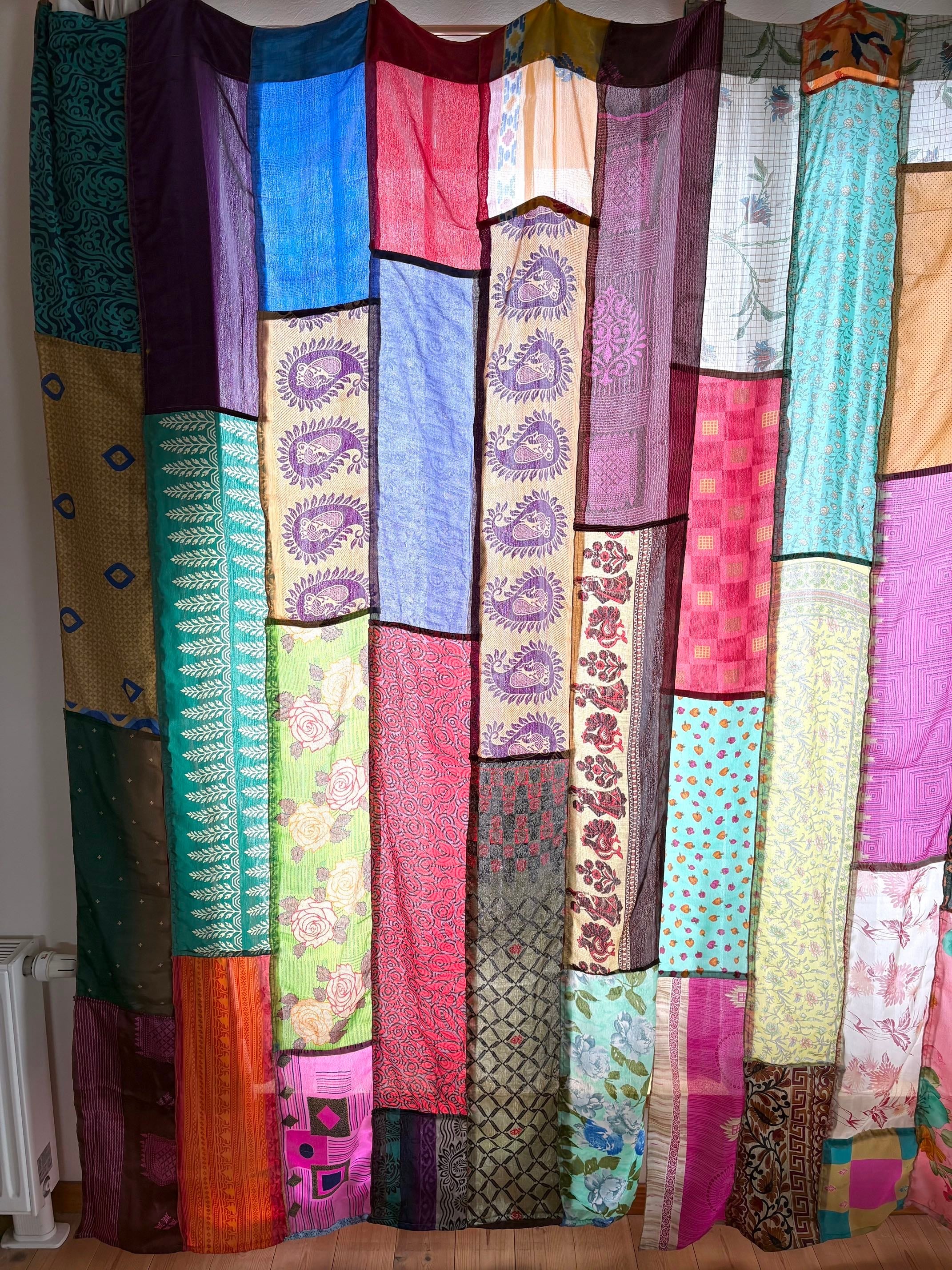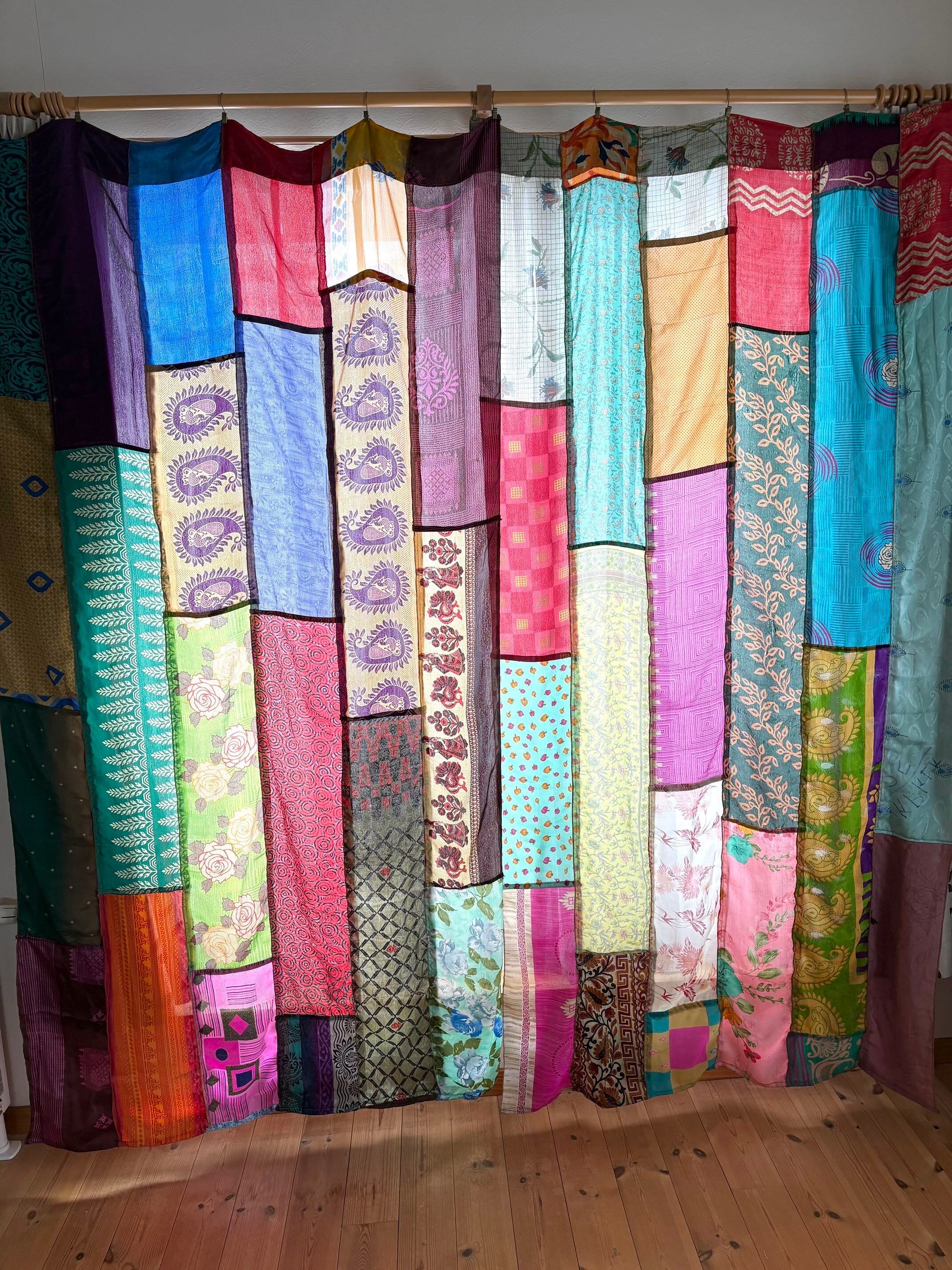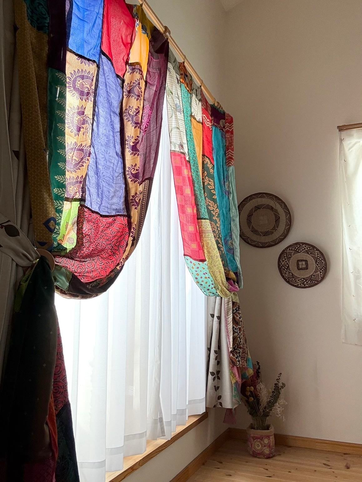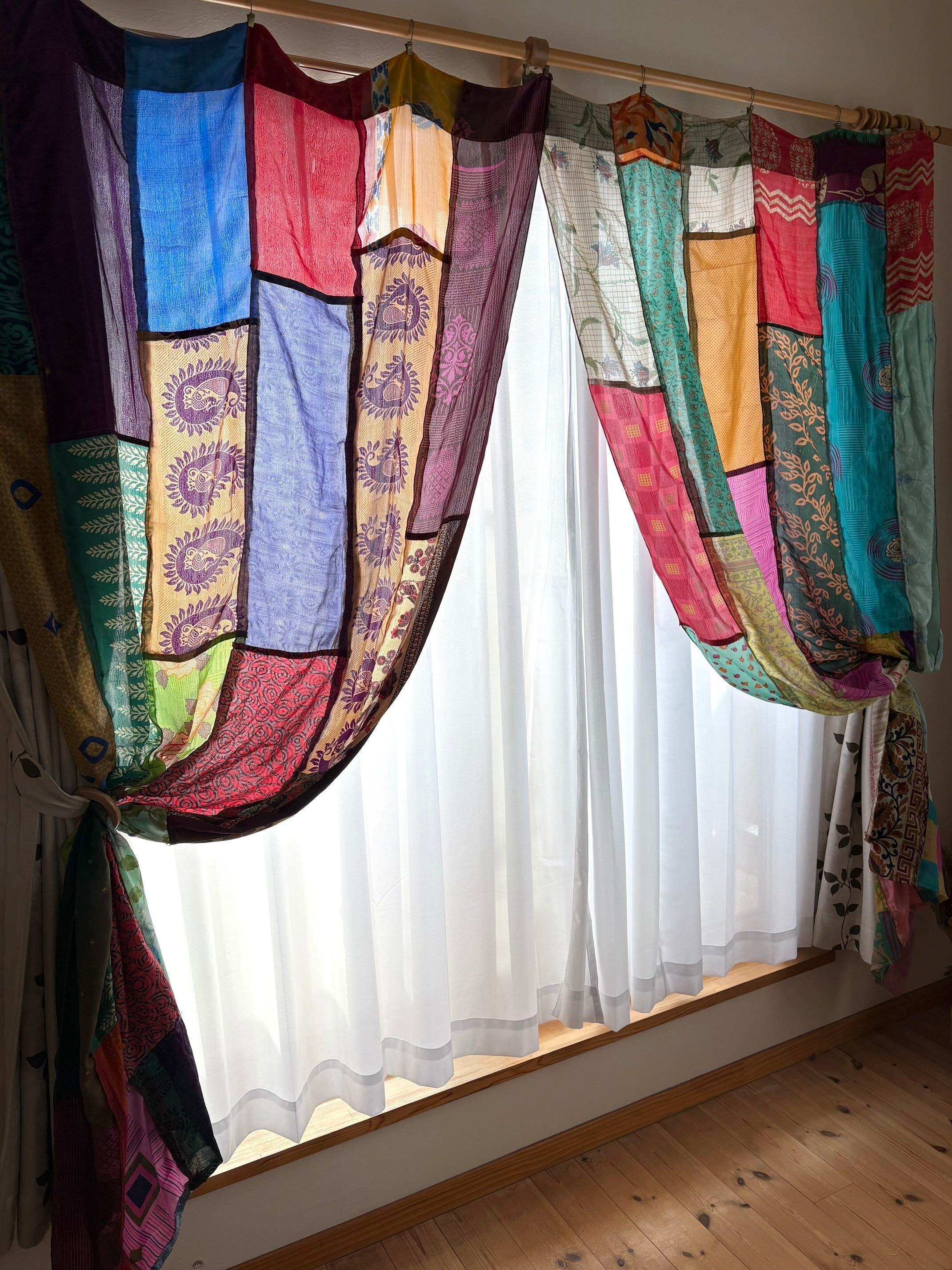 ヴィンテージサリーで出来たパッチワークシルクカーテン